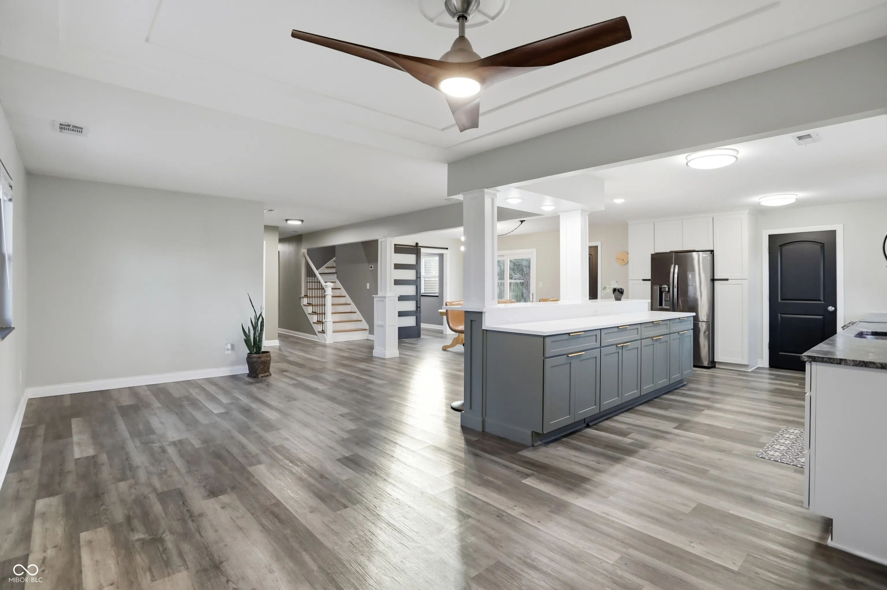 Updated 4bed/3bath home situated on over half an acre in the desirable Center Grove area. The home is part of an established neighborhood with mature trees and no HOA. Conveniently located close to schools, shopping, and dining with easy access to SR135 and I69. Completely renovated in 2021. The main level offers a bright, open concept layout with a family room, dining area, and an updated kitchen featuring new cabinetry, quartz countertops, breakfast bar, and walk-in pantry. A sliding door off the dining area leads outside to a concrete patio and large fully fenced backyard. Primary bedroom and second bedroom are located on the main floor. The en-suite primary bathroom has been remodeled with a tiled shower, tile flooring, and double vanity. The second level includes two additional bedrooms and a third full bathroom. All three bathrooms have been updated. Additional highlights include an oversized attached two car garage and concrete driveway with extra parking space. This move in ready home offers modern updates, generous space, and a peaceful setting. Excellent opportunity in Center Grove, schedule your showing today!