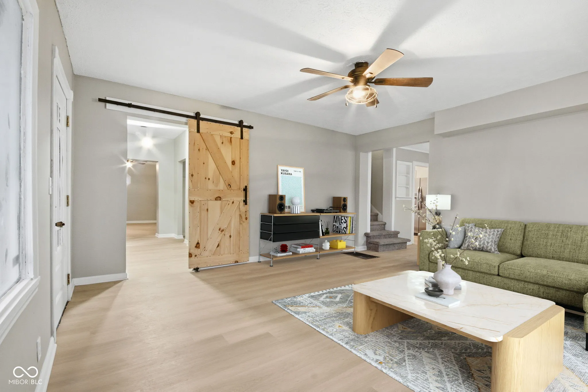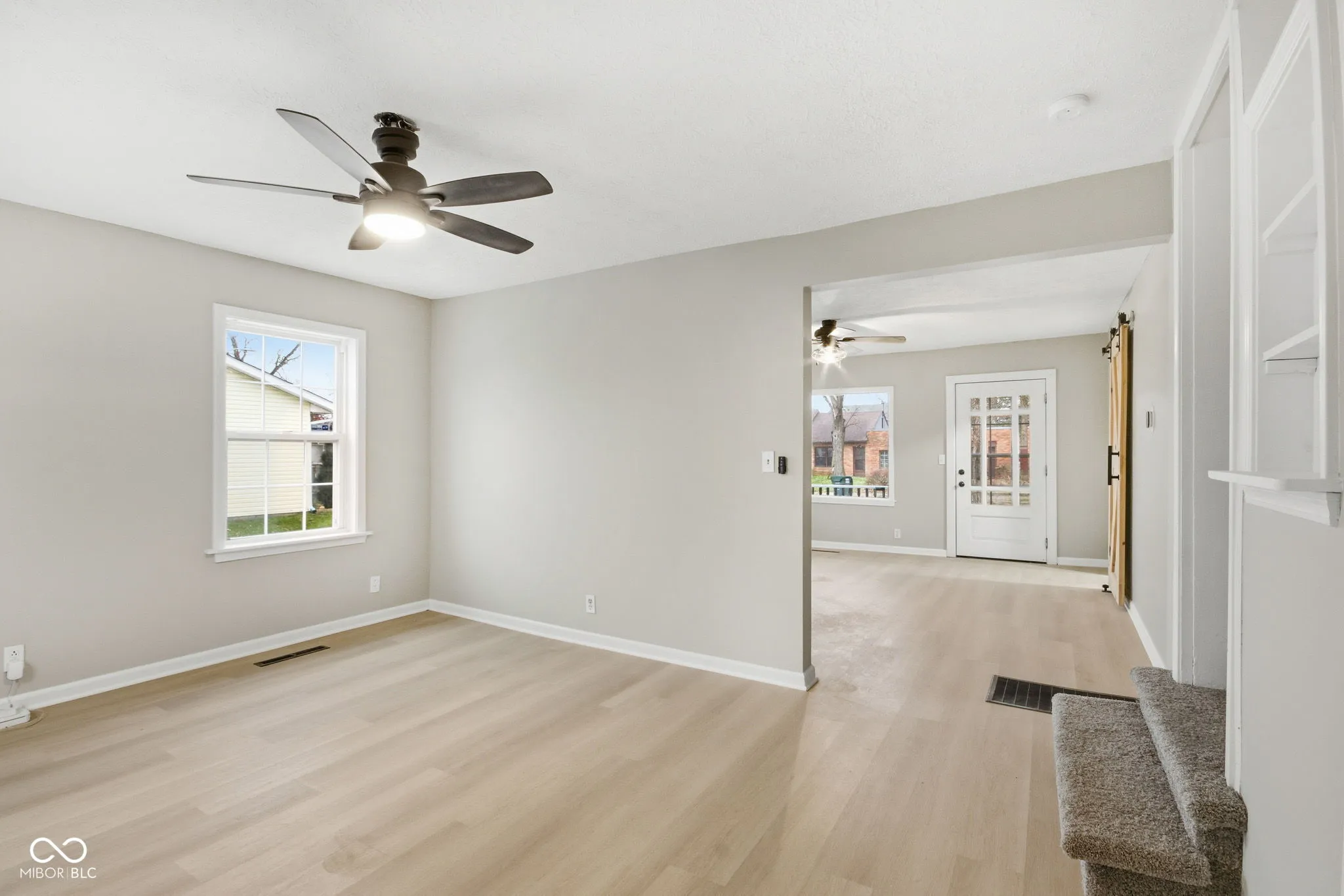 A MUST SEE home!. (Floor plan is not showing the second main floor bdrm) This home has been completely updated from wall to wall. Almost 2k square feet of living space with beautiful new light flooring to brighten and open your new home. Find an entire primary suite in it’s own private area of the home complete with multiple closets, a primary en suite with a fully tiled, walk-in shower and heated floor, high end double vanity and new flooring. Through the living space and formal dining, you’ll find a completely updated kitchen with new countertops, cabinet refacing, new hardware, a farmhouse sink, new faucets, new gas lines, gas stove and SS fridge. The backsplash adds the perfect touch to the modern and updated kitchen. Find another bedroom off the kitchen completely on the other side of the house and primary space. Great for an office, nursery, or guest room. Before heading downstairs, there’s an exit to the back yard with a deck and another full-sized bathroom that has been updated as well. Upstairs find two more bedrooms, or a bedroom with a bonus room/playroom. Plenty of space to enjoy and show-off your outdoor space. The outside is a real treat with space for gardening already set up for the new owner, paver sidewalk paths, and a fantastic outdoor entertainment area. Under the patio roof, enjoy outdoor eating and games by the above ground pool that comes equipped with steps, cleaning tools, and supplies. The oversized garage provides plenty of space for a workshop and vehicles with an upstairs waiting to become a beautifully finished living space for adult children, or guests. Lots of space for a carriage house or just an incredible storage space. The living space and opportunity in this home are endless! Extremely close proximity to the hospital, restaurants, shopping, banks, gas, and the ramps for I-70. Riley Park and splash pad is bike riding distance! Location is key! This house has the key to all!