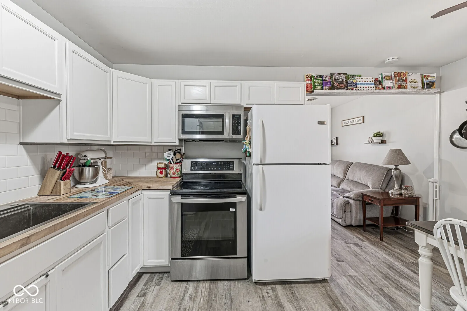 Welcome to 327 Grovewood Drive! Nicely Updated and Move-In Ready, this 3 Bedroom, Single-Family residence in Beech Grove presents an inviting home ready for its next chapter. The New HVAC system was installed in 2024. New Vinyl Plank Flooring in 2024 as well. The Kitchen, including All Appliances, offers a functional area featuring Shaker Cabinets, Butcher Block Countertops, Subway Tile Backsplash, and a Custom Built-in Banquette, providing extra Storage and Seating. The Kitchen Table shown is included as well. With 3 Bedrooms and a Full Bath with Full Tub and Shower, the layout provides comfortable accommodation within 936 square feet of living area. Washer and Dryer are also included. The property sits on a generous .23 acre lot, with a Mini Barn and Fully Fenced Rear Yard.