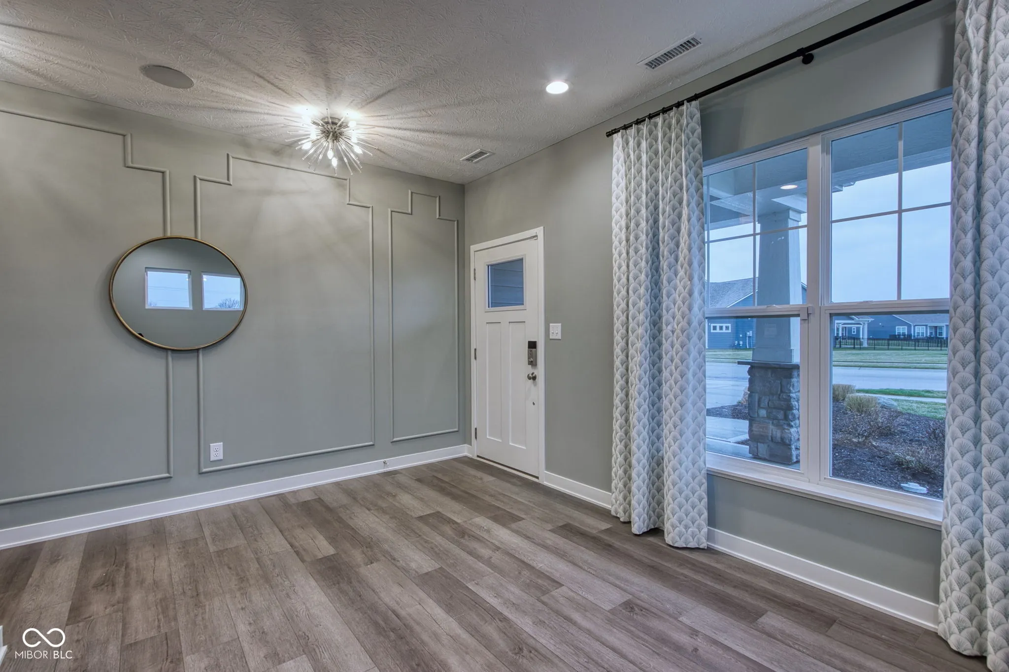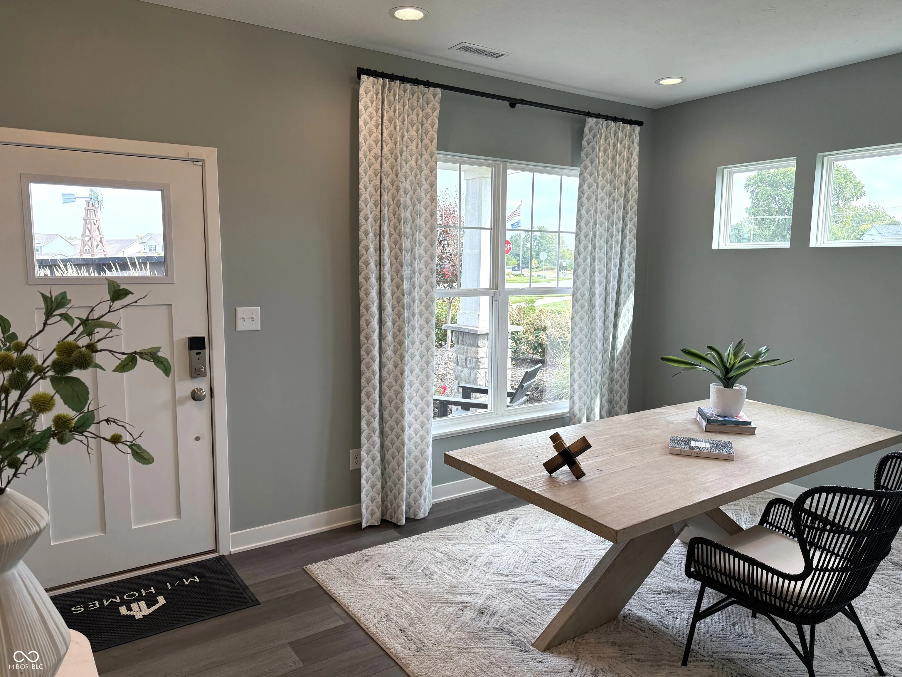 Be the first to live in this beautifully designed model home loaded with extras, backing up to a tree line situated on a .31 acre lot which is maintained by the HOA* Low maintenance living at its finest- HOA maintains the lawn, exterior of the home & snow removal (2 in. +) plus the community offers a pool, playground & sidewalks* Main level living offers a beautiful primary suite boasting tray ceiling w/wood decorative detail & crown molding, bath w/quartz double vanity, large tiled walk in shower, tile floor, linen closet & XL walk in closet conveniently attached to main floor laundry rm* 2nd bed on main w/private access to full hall bath* Flex/office rm on main plus spacious great rm that opens into the gourmet kitchen & dining* Numerous windows flood the living spaces with natural light overlooking the tree lined backyard & covered back patio* The kitchen pampers w/6 ft. island, quartz counters, dove tailed & soft close drawers, white cabinets, subway tiled backsplash, double convection oven, gas stove top & walk in pantry* All appliances stay incl. washer & dryer* LVP wood flooring in all main gathering areas* Upstairs you’ll find an ample sized bonus room, 3rd bedroom & full bath* All baths offer quartz counters, vanities w/soft close drawers, linen closets & tile floors* Recessed lighting thruout* Contemporary style doors & trim thruout* Custom wainscot/molding on walls & ceilings in many of the rooms + custom shelving in dining rm* All mechanicals & kitchen appliances installed in ’23* 2 car finished garage w/storage bump, garage door opener & key pad, alarm system w/cameras, surround sound built in speakers thruout & irrigation system* Two outdoor living areas incl. covered front porch & spacious covered back porch* You’ll fall in love with the layout & finishes in this home while enjoying low maintenance living* Fantastic location close to HTC mall, I-69 corridor, Ruoff music center, tons of shopping & restaurants* Just move in & enjoy!