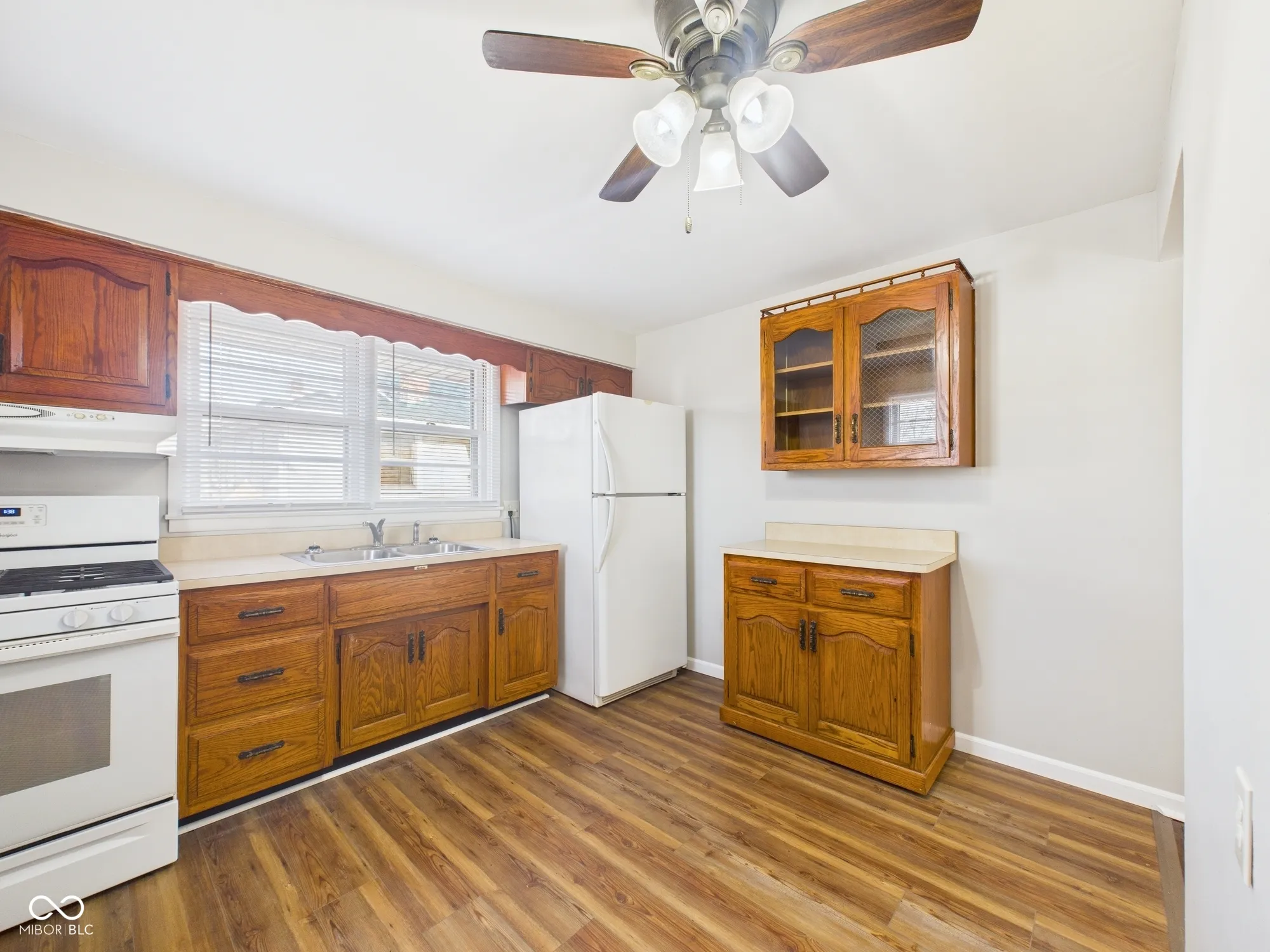 Welcome home to this adorable and affordable Bedford stone home. There is a 12×8 enclosed patio that welcomes visitors and provides a place to leave shoes at the door. You will love walking into a nicely sized living area featuring the charm of original hardwood floors. The kitchen boasts plenty of counter space and cabinets for storage, and all appliances stay. Both bedrooms are a modest size with original hardwood floors. Recent updates include a bathroom remodel, refinished hardwood floors, new kitchen flooring, and fresh paint throughout. Enjoy a nice-sized backyard with a one-car garage. This home is move-in ready with immediate possession. Located on the south side of Anderson, it offers easy access to I-69, shopping, and entertainment.