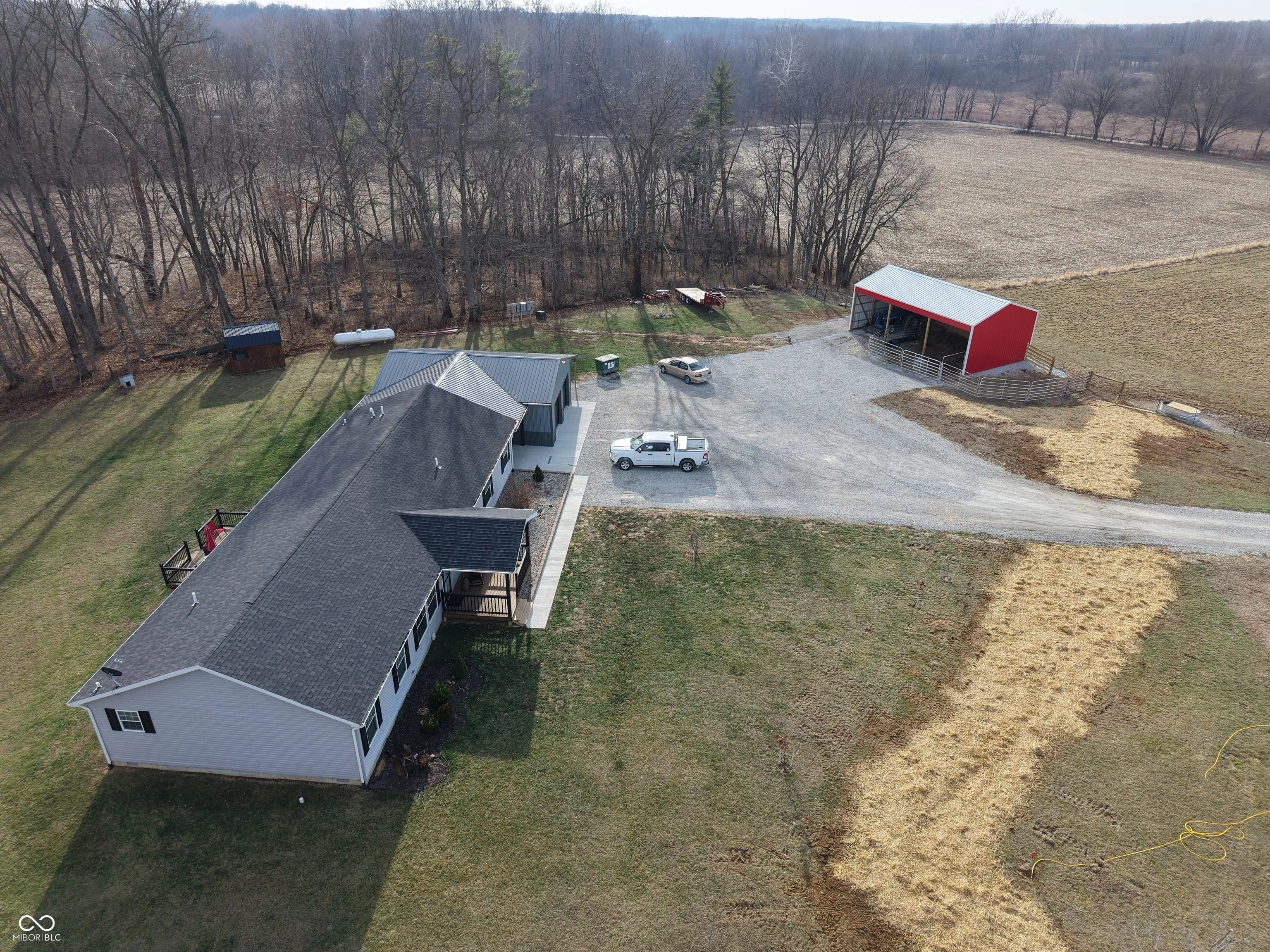 Newer 4 Bedroom, 2 Bath home on 13.94 acres mini-farm. 2 Car attached garage with climate controlled, enclosed breezeway. Nice 14×10 covered front porch and 16×12 rear deck to enjoy the outdoors. Newly constructed pole barn structure with electric and water. Lean-to structure and mini barn. Mature trees and creek at the back of property. 3 separately fenced, mixed grass pastures with water to each. Huge open concept living area inside home. Home is in near perfect condition. 14×8 Master bathroom with individual sinks and separate shower & garden tub. Oversized master walk-in closet. Home provides privacy, but also easy access to Greencastle via a recently paved County Road.