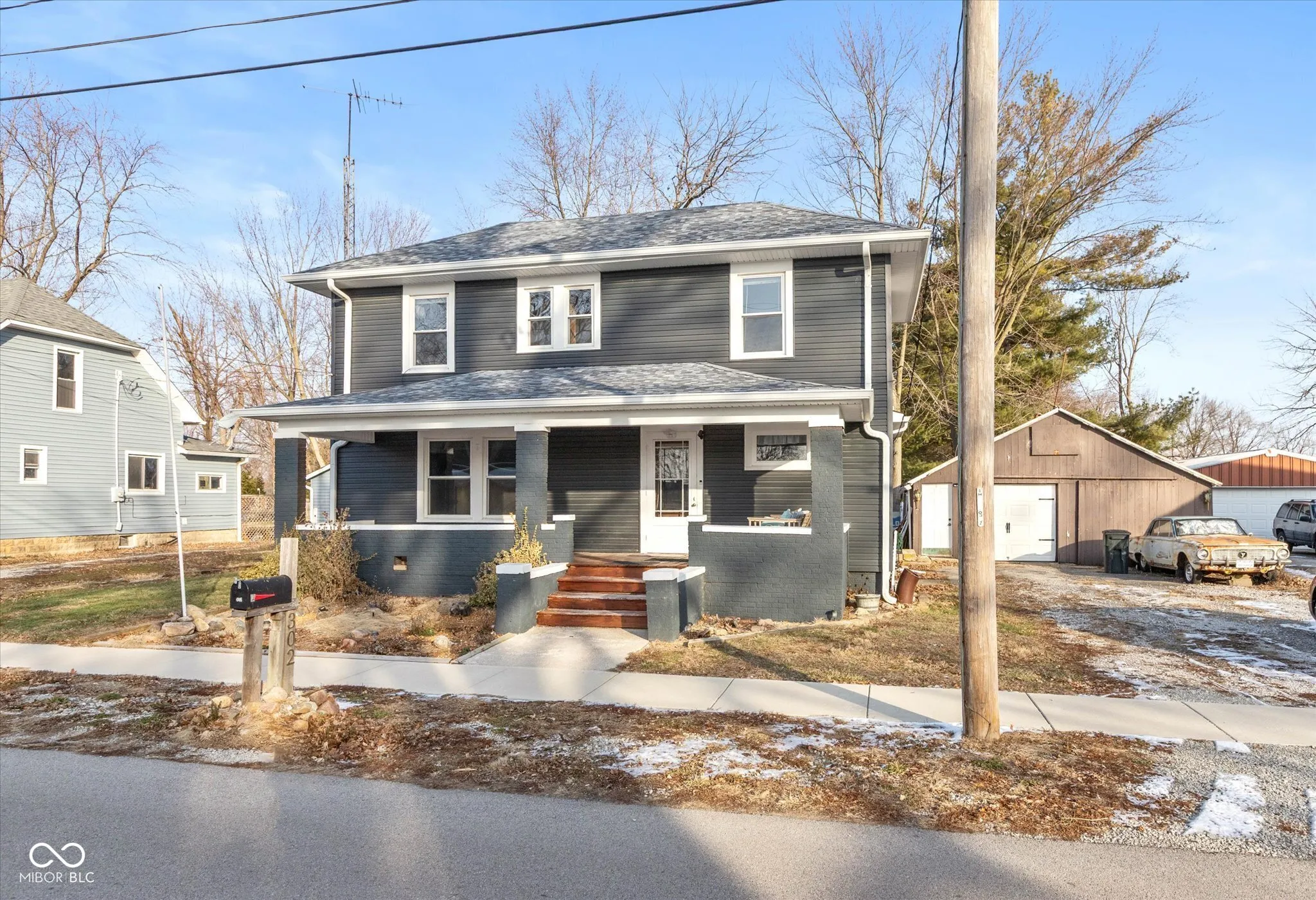 Welcome to your stunning classic home on just under an acre in the heart of Advance! This traditional charmer will wow you with its newer exterior and full covered front porch that is perfect for relaxing! Once inside, the original large trim moldings, pocket & french doors and casings are sure to impress! The original recently refinished hardwood floors in the front living room guide you through your dining room and into your spacious kitchen! Upstairs you will find 2 large bedrooms with an incredible newly updated full bath. The upstairs bath boasts all new marble top vanity, tub/shower surround, toilet and fixtures. Don’t miss the large full basement with tons of room for storage. Out back your tree lined property goes on and on showcasing a large 2 car garage with lean-to shed, and fire pit for entertaining. You will not find another property this rich in character and acreage in town! Come see it today! Seller prefers to sell as is.
