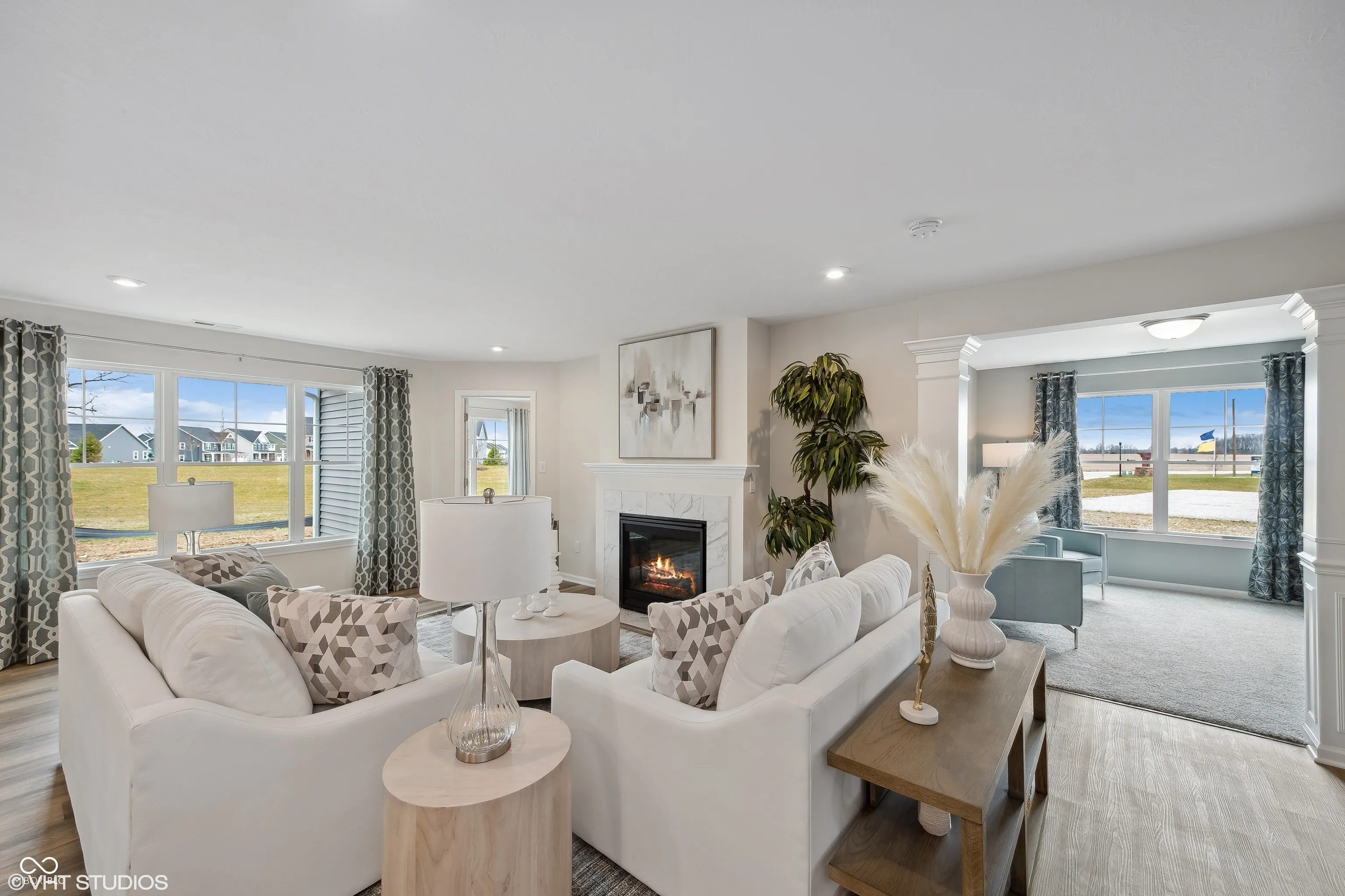 Olthof Homes presents the Brighton. Step into comfort and style with this beautifully designed 1532 sf paired villa featuring an open-concept layout perfect for entertaining and everyday living. This spacious 2-bedroom, 2-bathroom and flex room with architectural columns, home offers a seamless flow from the living room to the kitchen and dining areas, enhanced by abundant natural light. Enjoy peaceful evenings under your covered porch in your private backyard. Spacious layout combines comfort and style in a low-maintenance setting. Upgrades in the home: Maple Fallow Cabinets, Located on Private lot, Attached 2 Car Garage, Covered Porch, Gas Fireplace, Spacious Primary Bathroom with walk-in closet.