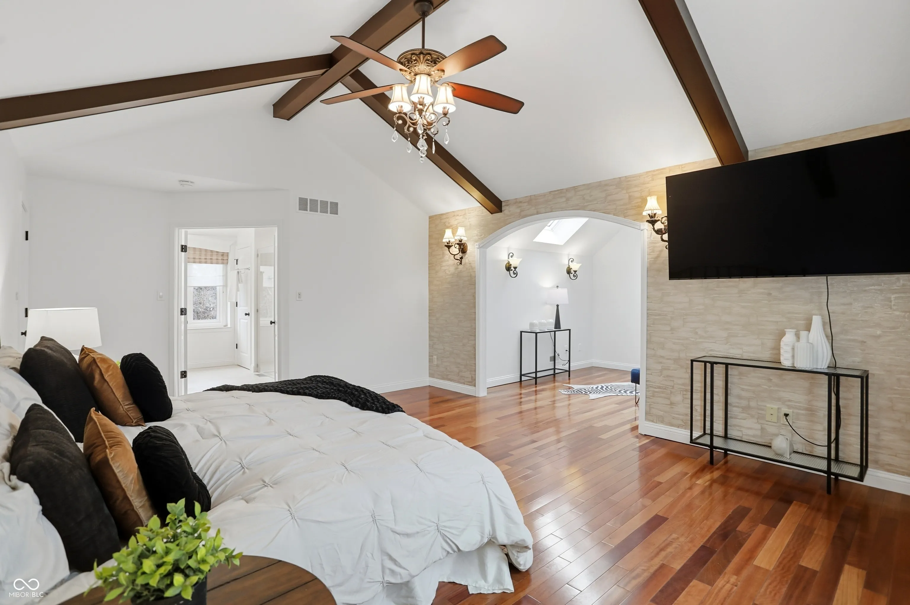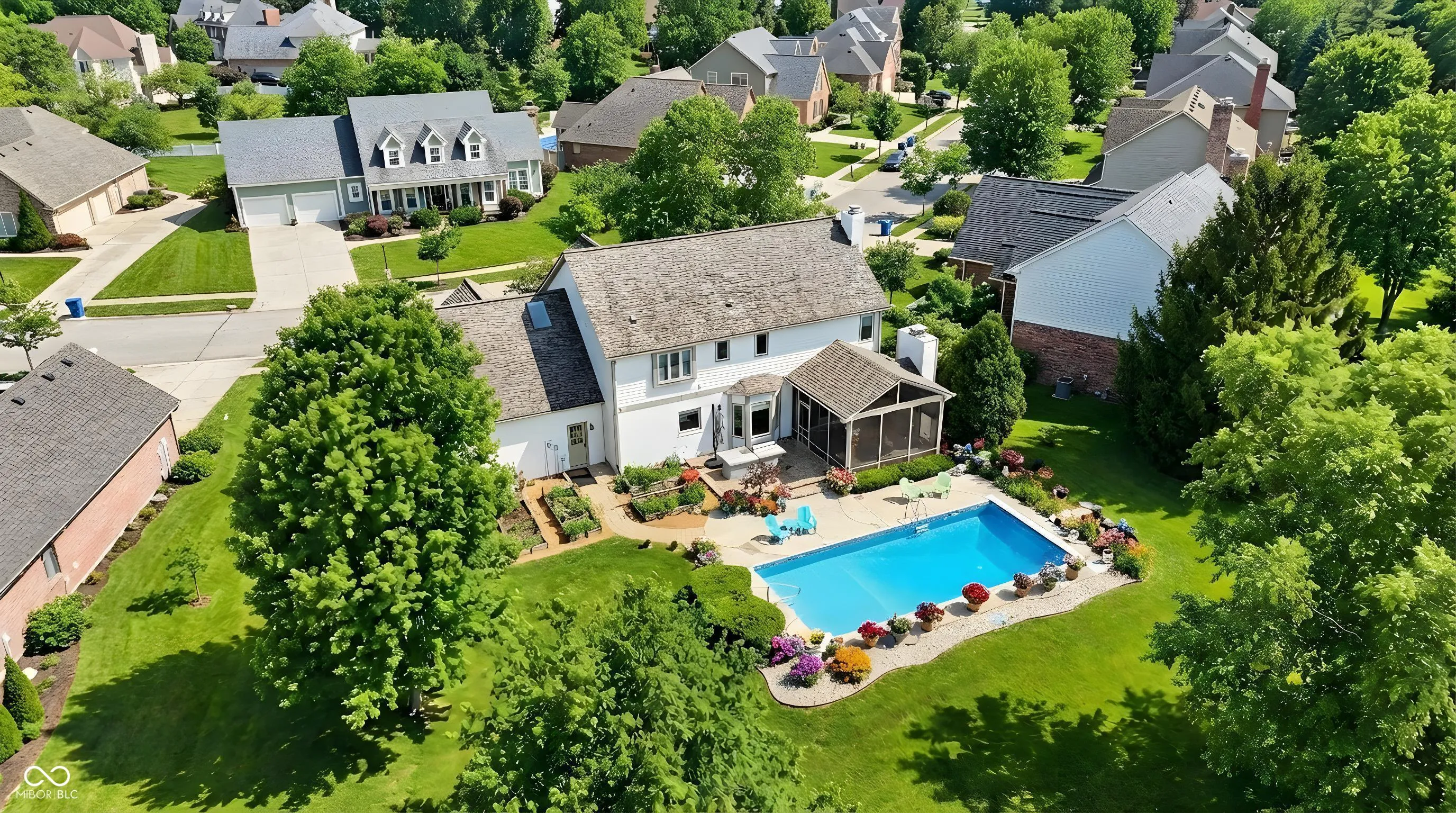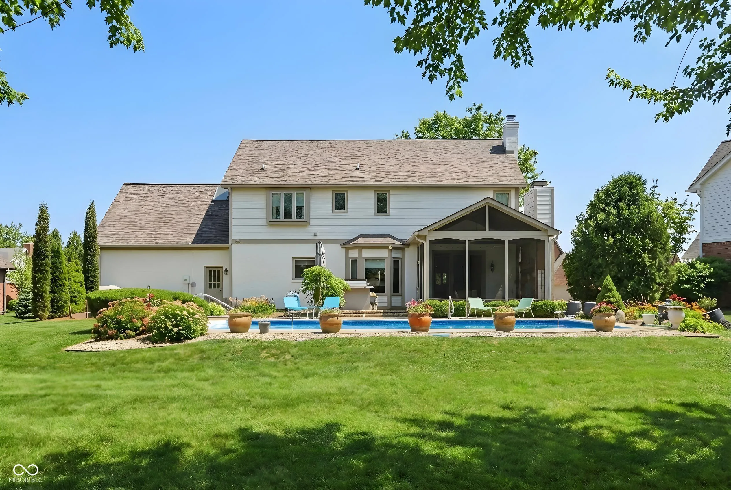 Coming just in time for your family to enjoy spring, summer, and fall, this rare opportunity in Windermere’s Woods Edge offers exceptional updates, space, and outdoor living. Homes in this section rarely come to market-and sell quickly. Situated on a nearly 1/2-acre lot, the backyard is a private retreat featuring mature trees, elevated paver patio, electric fence, raised garden beds, Japanese banana plants, exterior accent lighting, new gas line & meter, and in-ground pool with new automatic cover, heater, and liner (2025). A Rain Bird irrigation system keeps the grounds pristine. This lovingly maintained home offers 4 bedrooms, 3.5 baths, and a finished basement, with major updates including New Roof (2022), HVAC (2023), Tankless WH (2022), remodeled basement (2023), Sump pump (2023) and a spotless interior. The main level features a large living room with custom coffered ceilings, elegant dining room, high-end light fixtures, and a spacious great room with built-ins and gas fireplace, open to the gourmet chef’s kitchen, planning desk, and screened-in patio. Freshly painted interior. The finished garage includes new epoxy flooring, fresh paint, service door, heavy duty shelving, and abundant storage. Upstairs are 4 spacious bedrooms, 2 full baths, and laundry room. The primary suite offers cathedral ceilings, sitting area, automatic shaded skylight, large walk-in closet, and an updated spa bath with quartz dual vanities, garden tub, oversized walk-in shower, and heated tile floors. The refinished basement includes new flooring, recessed lighting, bar area, utility room with new mechanicals, and a brand-new half bath-ideal for entertaining. Windermere is one of Fishers’ most desirable neighborhoods, known for winding streets, mature trees, pool, tennis and basketball courts, playground, and proximity to shopping, dining, parks, interstates, downtown Indy, and the airport. Everything is done-just move in. Ask for more updates & highlights!