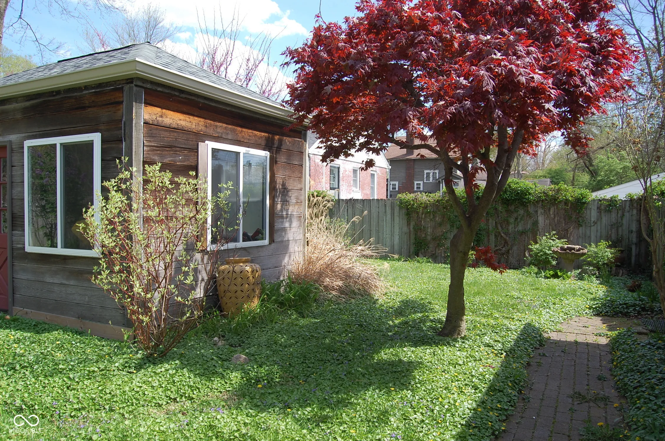 This 1925 ranch-style residence is located within the prestigious Golden Hill Historic District in Indianapolis, and includes a 2nd attached side lot overlooking popular Berth Ross Park . Wonderfully updated with many features and even more updates during the past five years. This one-level, 3 bedroom, 2 full baths, has original architectural features and tasteful new ones. It has parquet flooring,a gorgeous fireplace surrounded by built-in bookshelves, beautiful woodwork, coffered ceilings, and lots of natural light. Take advantage of the wonderful private yard with a separate spa with storage and transform it into a she shed, potting shed, studio or retreat. Recent updates include both bathrooms, remodeled kitchen, windows, lighting, rear sliding and door into family room from the garage, main sewer line replacement, rebuilt chimney, 2-year old roof and gutters. The heated garage is perfect for a workshop (and is currently used as one), and the side yard extends to the street. Truly a gem in this convenient location, adjoining Woodstock CC, and just north of Newfields Art Museum and more. Noted for its early “fireproof” design, the home was constructed using an innovative method of brick-covered concrete masonry. The property is part of a neighborhood originally designed in 1908 by Scottish landscape architect George MacDougall, which gained a spot on the National Register of Historic Places in 1991 for its unique stone structures and winding estate roads.