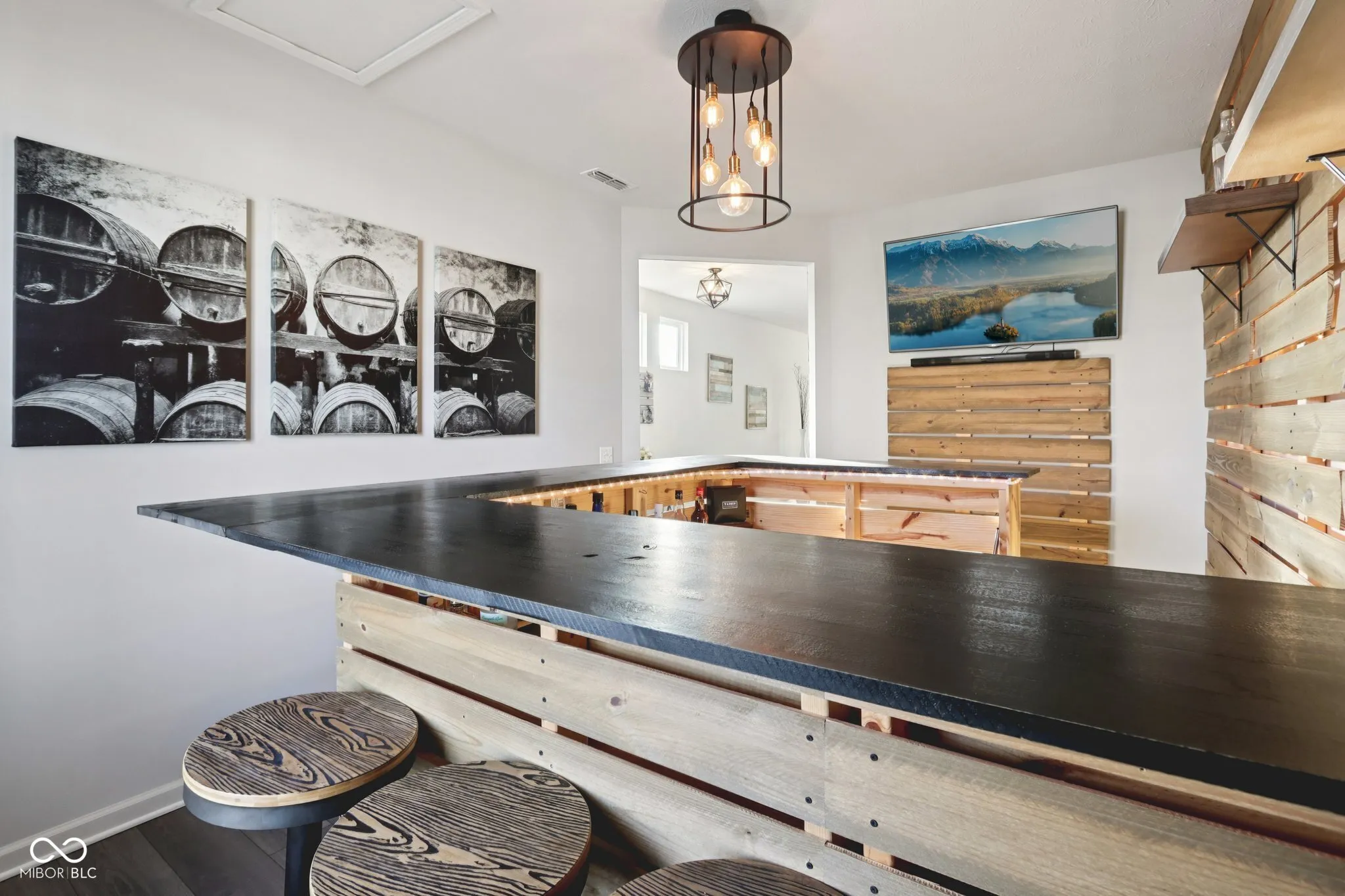 Welcome home to this beautifully updated 4-bedroom, 2.5-bath residence in the desirable Hunters Run neighborhood. Designed for modern living, the home features durable LVP flooring throughout and soaring 9-foot ceilings that enhance the spacious, open-concept layout-ideal for both everyday living and entertaining. The great room showcases a striking accent pallet wall with an electric moveable fireplace while a custom bar with 10 bar stools adds a unique touch for entertaining in the front room. For buyers who prefer a different layout, the bar can easily be removed or repurposed to suit your lifestyle. The well-appointed kitchen offers modern SS appliances, ample cabinetry(42 in), and a large center island for effortless meal preparation. Stay organized in the home secretary space/office and a large drop zone area off the garage. All bedroom have with walk in closets. Don’t miss the flex space upstairs w/ a large loft. Step outside to a beautifully landscaped backyard featuring low-maintenance Trex composite decking-perfect for outdoor gatherings or relaxing in privacy. A fully finished two-car garage provides convenient parking and additional storage. Hunters Run amenities including a pool, tennis court, basketball court, and over one mile of scenic walking trails. Situated within the highly acclaimed Hamilton Southeastern School District and just minutes from Hamilton Town Center for shopping, dining, and entertainment, this home combines comfort, style, and an exceptional location in a welcoming community.
