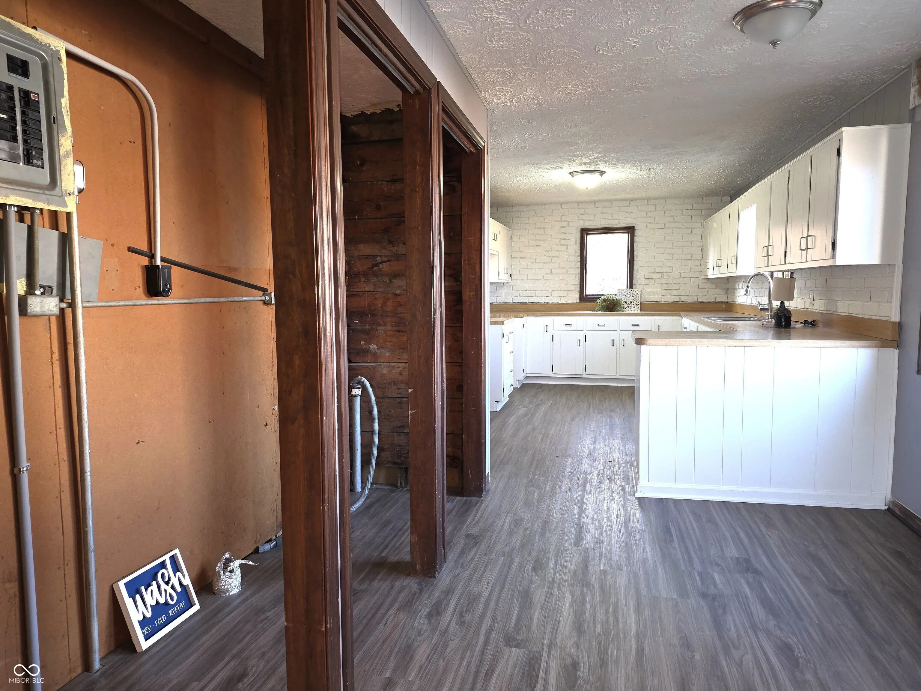 Affordable 3 bedroom 2 bath home available in Fairland. New flooring, light fixtures, and much more have been updated on this house. Enjoy a sun filled enclosed porch that is heated! Step into the spacious living room that’s casual and cozy. Just steps from the living room is the primary bedroom with a wall flanked in closet space! The smaller 2 bedrooms are steps from the living room and dining room and host 2 full baths in between. There’s plenty of room in the 15×15 formal dining room for a large table, china hutch and buffet, and exits into the kitchen. This kitchen has an envious quantity of cabinets! Set up like the country style kitchen you’d expect in a 1900’s kitchen, with painted brick-like walls and sturdy storage. The laundry is in a closet that hosts lots more storage, along with a pantry closet and coat closet, before exiting the home by either of 2 other doors or into the basement. In the fenced back yard is a small deck and shed. There used to be a garage years ago, and the concrete is still there, providing a spot for a new garage, carport or use as off-street parking. This home is in town, close to a handful of conveniences, such as the Dollar General, and within a few miles of I-74 and the casino.