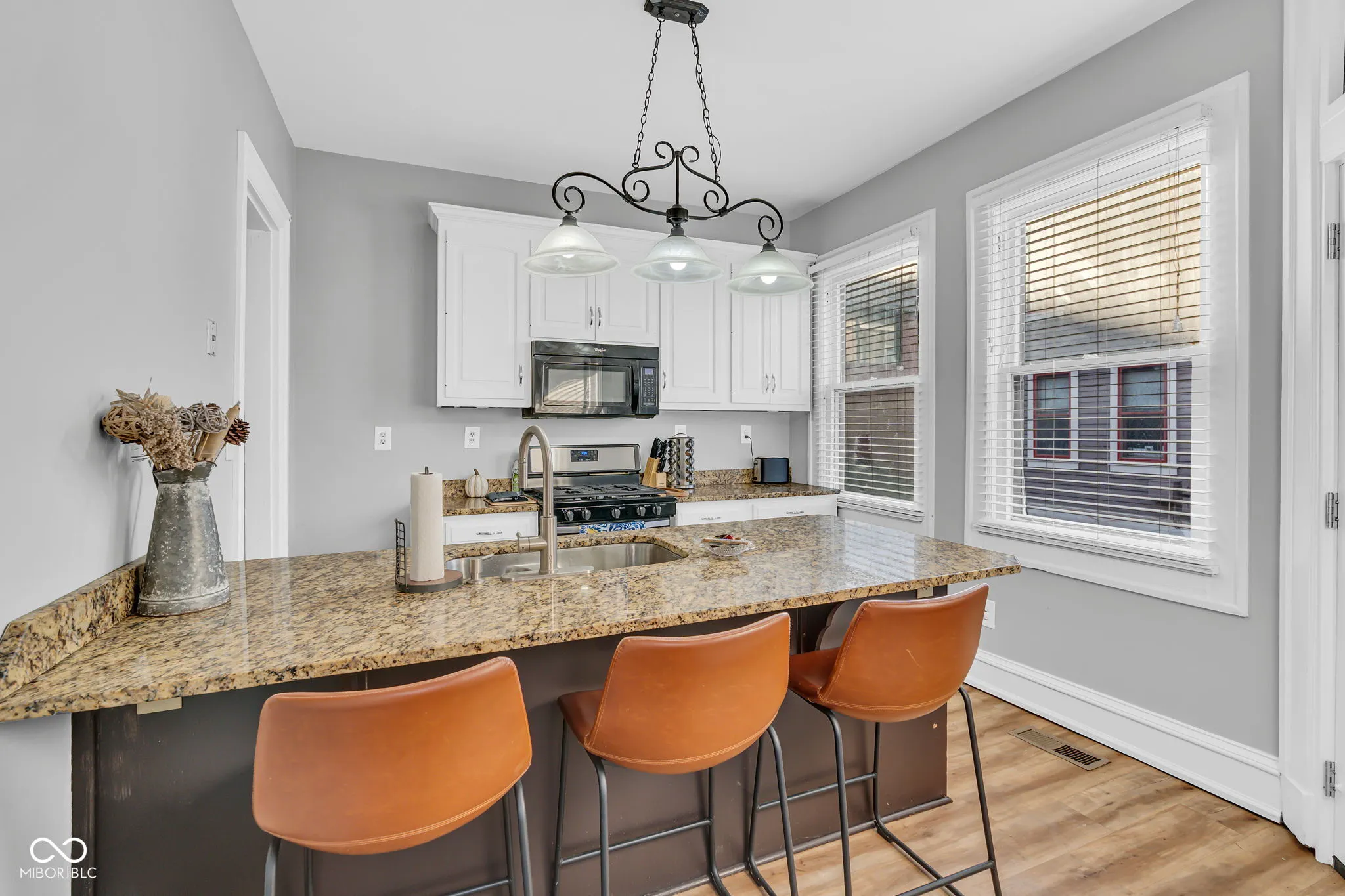 NEW ROOF! This historic Old Northside home is brimming with opportunity- continue to run it as an AirBnB, rent it out or make it your personal home! This expansive 2,400 SF property (plus basement) will delight you as you discover the many original elements which have been preserved- from the beautiful hardwood floors throughout to the solid wood front door to the many built-ins. 1440 N Park Ave is the right side of this former duplex being converted into townhomes. The old-fashioned covered porch invites you to enjoy coffee and soak in the ambience of the stunning homes and mature trees lining this wide street. As you step inside, you are greeted by high ceilings and oversized windows letting in an abundance of light. The main level features distinct living spaces that flow nicely and are open to each other. There is plenty of space to spread out across the family room, living room and dining room, and guests will appreciate the half bath w/ an edgy, exposed brick wall on the main level. The cozy kitchen features granite counters with bar seating, modern stainless steel appliances, and a large butler’s pantry with built-in storage. The second level features a full bath with a double sink vanity along with three large bedrooms, all with blinds & lighted ceiling fans (and gorgeous hardwood floors and painted original trim). The third level features another full bathroom and two additional bedrooms (one is being used as an office/gym) and walk-in attic storage. The exterior has been freshly scraped/repainted, and the water heater and sewer line are new. You will love being within walking distance of the vibrant Bottleworks District, the scenic Monon Trail, and the eclectic Mass Ave. This unique home is a must-see for those in search of a distinctive living experience and an appreciation for the grandeur of the past.