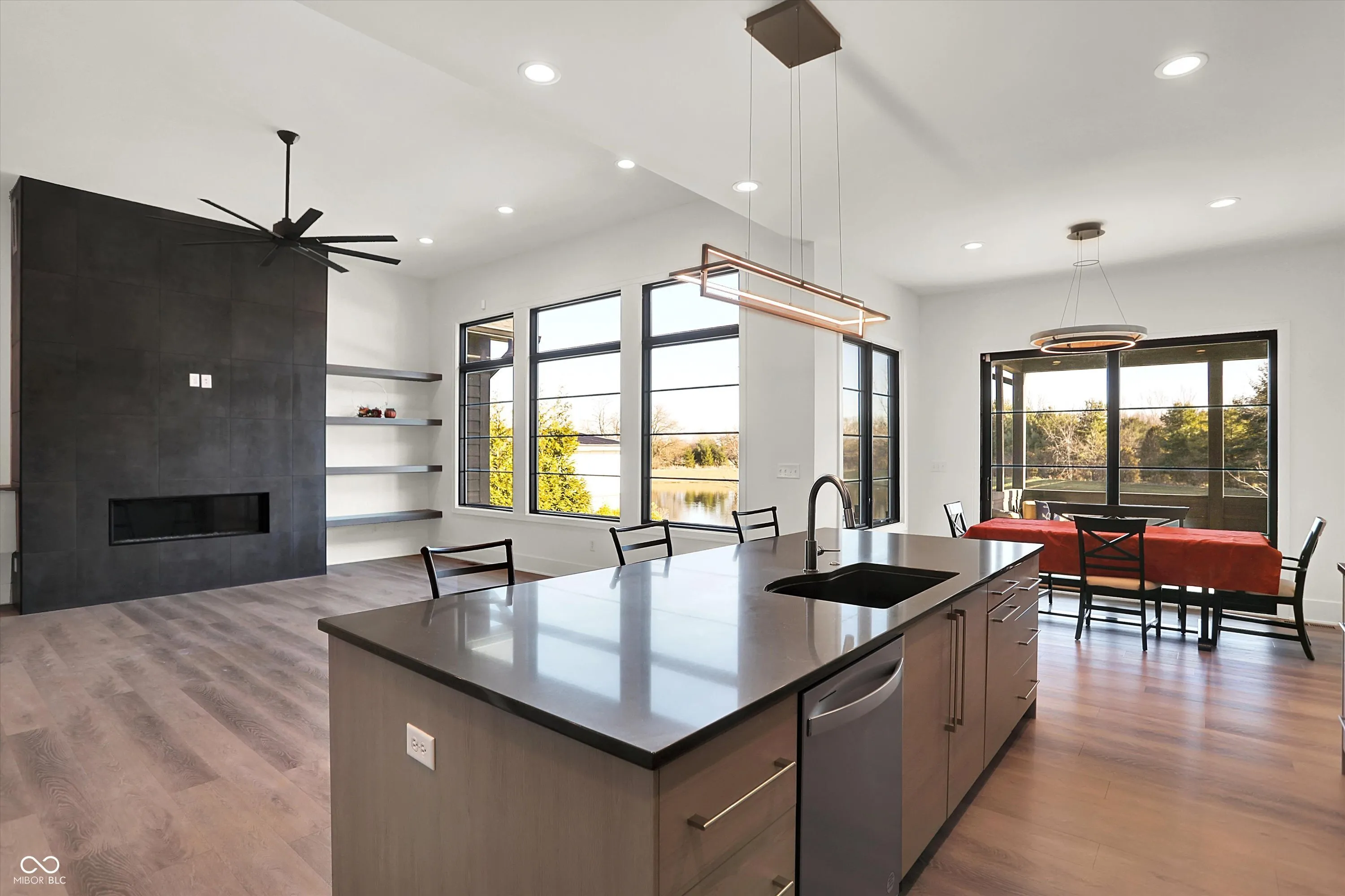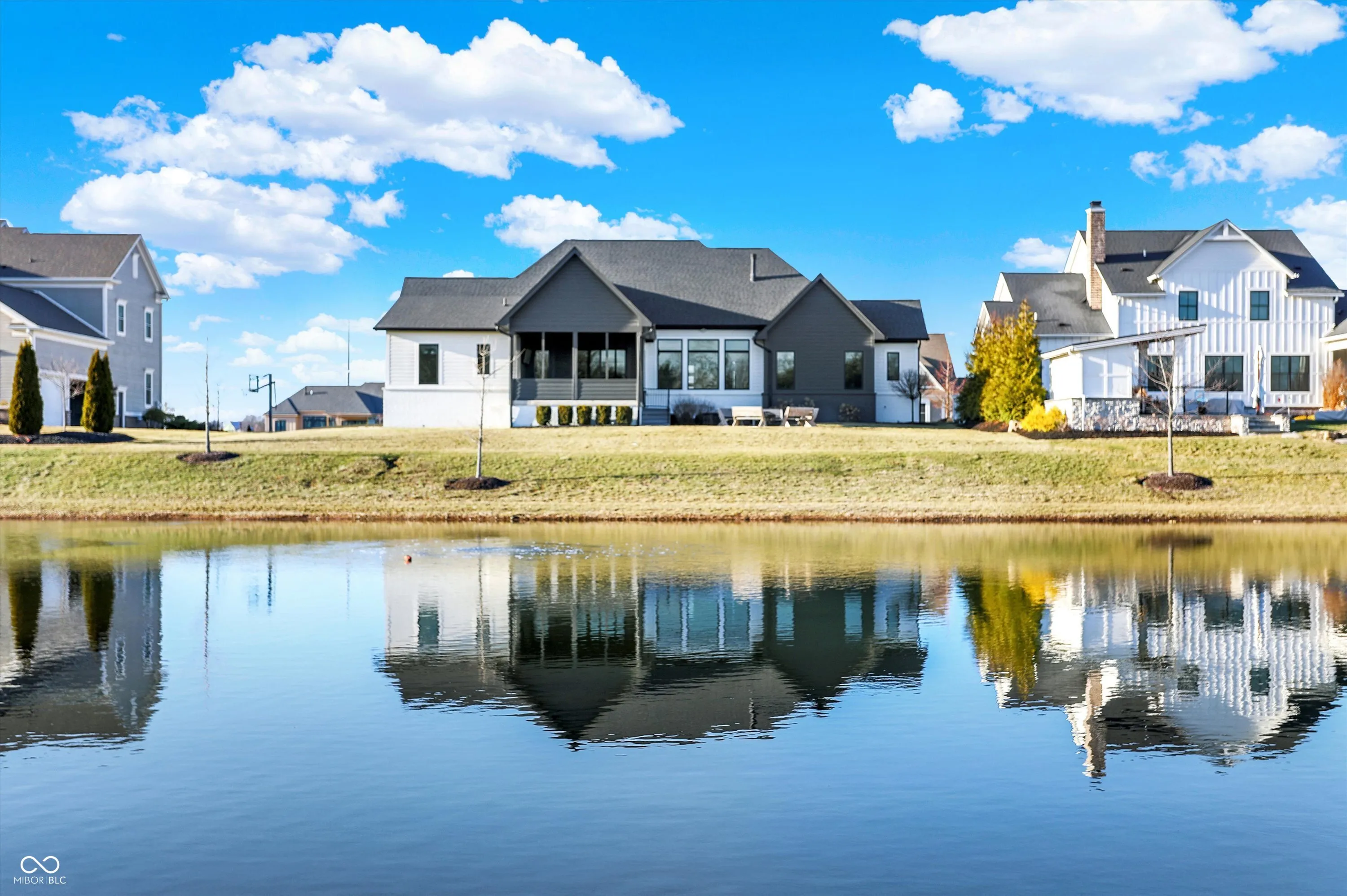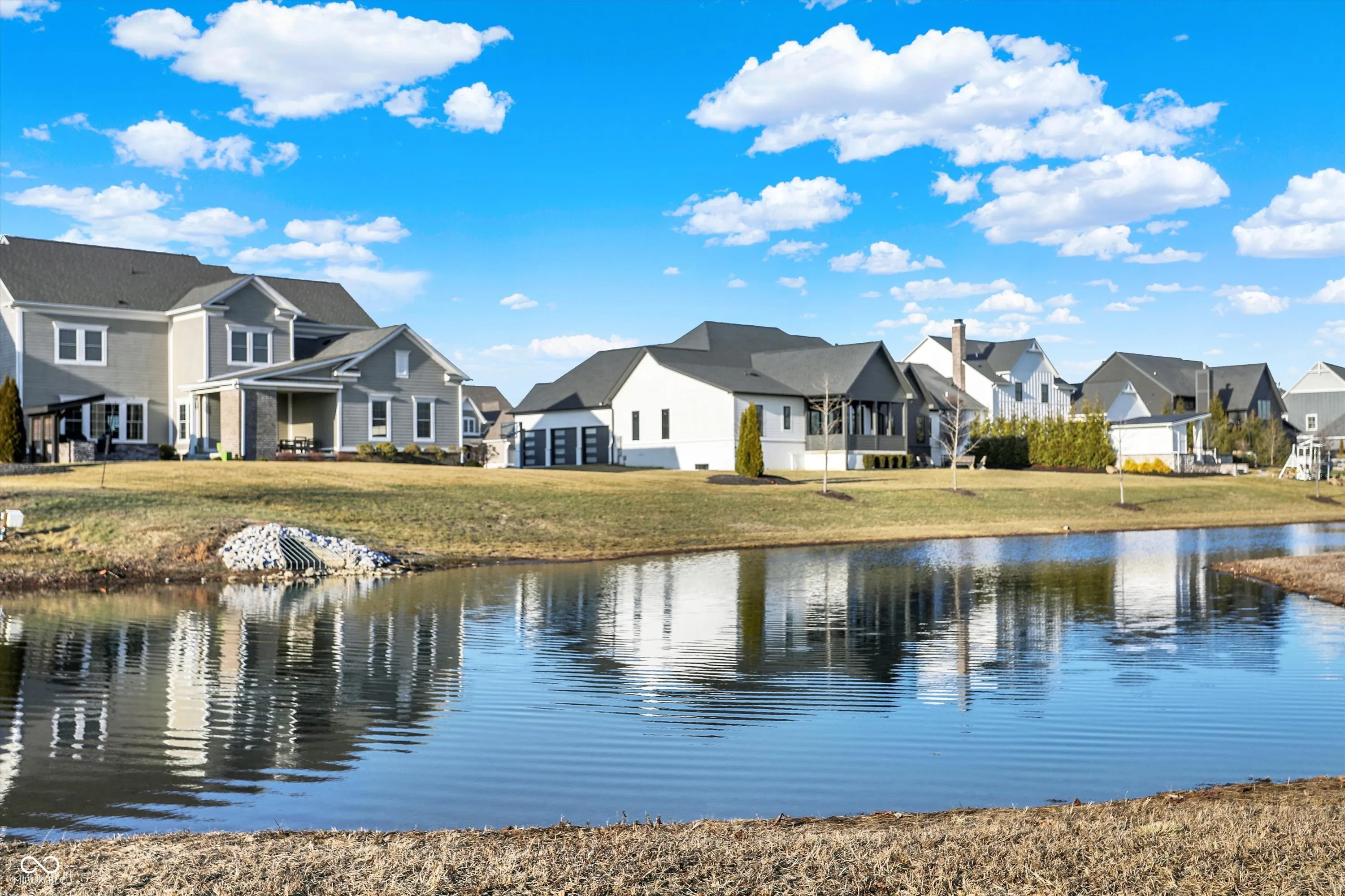 Nestled in the charming ZIONSVILLE, IN, discover the allure of 8115 Hanley Ln. This custom ranch built by Executive Homes , showcases a modern build with a contemporary flair sitting on a private lot overlooking a beautiful pond with large trees beyond !!! With four bedrooms, this home offers ample space for rest and rejuvenation, along with four full bathrooms, thoughtfully placed to provide convenience and privacy. Picture each room as a personal sanctuary, a place to unwind and recharge after a fulfilling day. The generous great room overlooks the water and also has a cozy fireplace and is open to the beautiful kitchen . This single-story home offers 2794 square feet of living area on the main floor and another 2300 sq ft in the lower level giving you over 5000 sq ft of finished space. The lower level has a huge recreation room with a wet bar along with an exercise area , full bedroom , full bathroom, and another bonus room that’s perfect for a theater room. The large lot opens doors to outdoor possibilities, inviting you to create your own private retreat, in addition to the covered porch and patio ( don’t miss the gas lines are already run for a pool heater, gas grill, and or fire pit )HOA has access to Hampshire which includes pool, pickleball, playground & basketball!! This single-family residence offers a blend of modern comfort and ample space, making it a perfect place to call home!! Interior