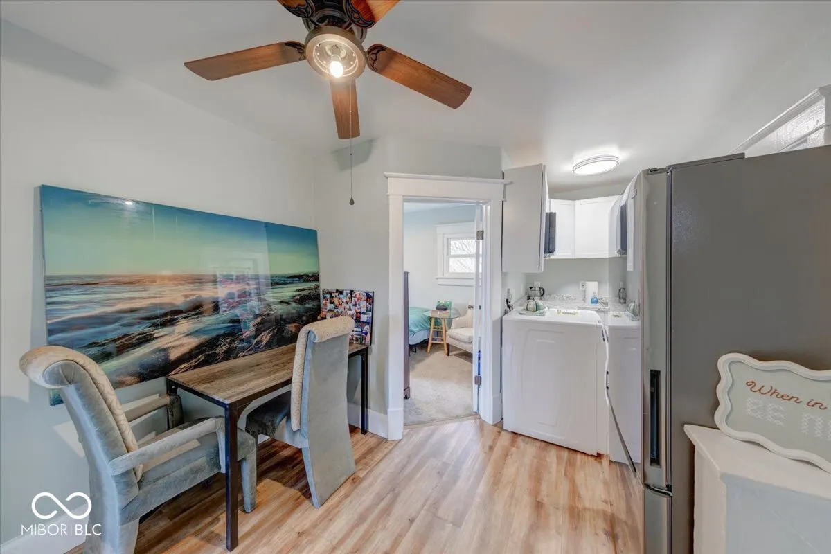 Freshly updated 3-bedroom, 2-bath two-story home situated on two lots with a detached garage. This move-in-ready property features a functional layout with updated finishes throughout and a bright, welcoming interior. The kitchen is equipped with stainless steel appliances with plenty of cabinet space. Both bathrooms have been refreshed, and the home offers comfortable living space across two levels. The washer and dryer in the basement as well as the combo washer/dryer and the refrigerator on the 2nd floor is included for added convenience. The expansive yard provides extra outdoor space with endless possibilities for entertaining, gardening, or future expansion. Conveniently located and easy access to Mass Ave, Bottleworks District, I-70, Downtown and much more. This is a great opportunity you don’t want to miss. For more information, please reach out to the listing agent directly if you are not currently represented by an agent.
