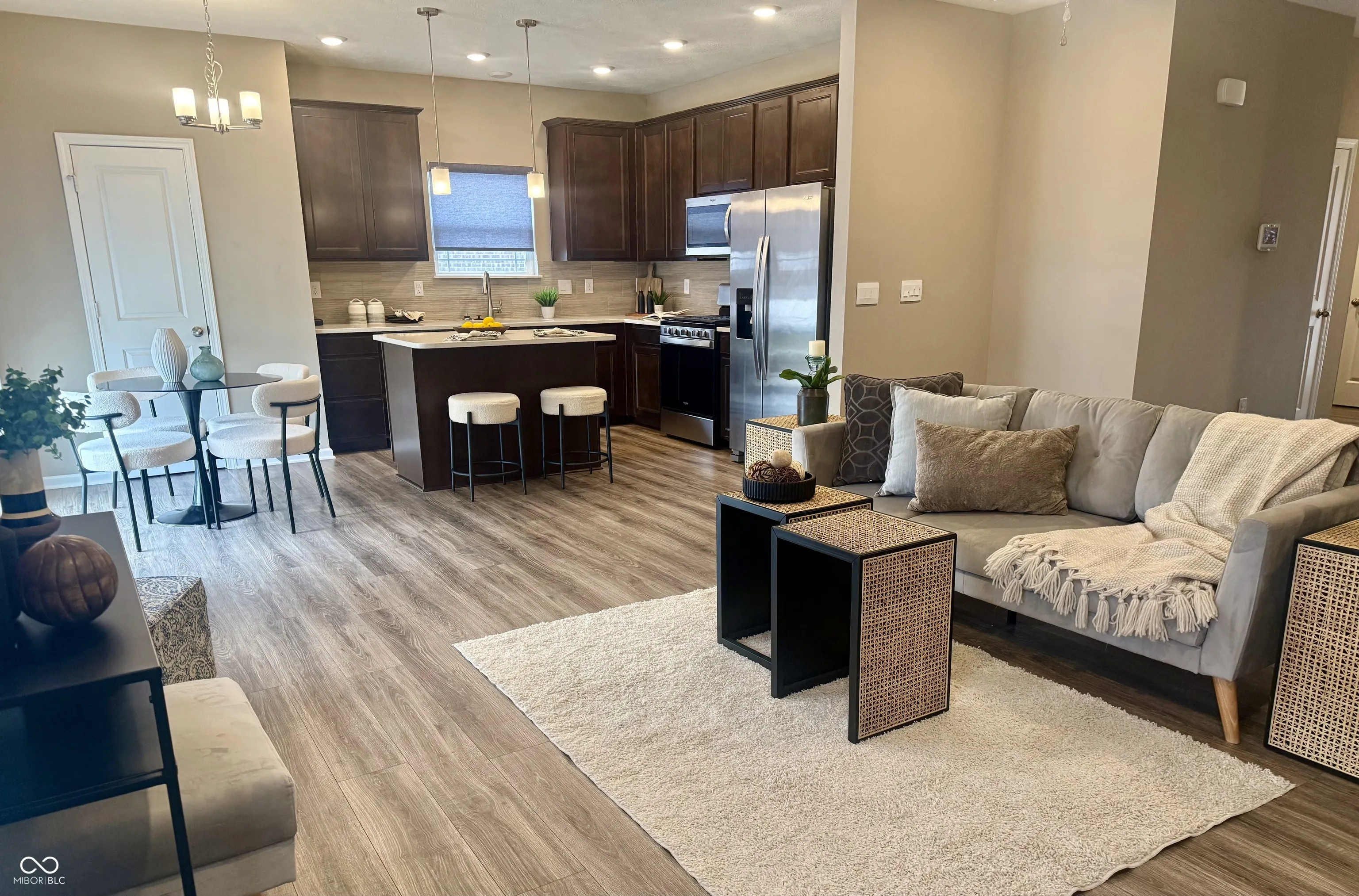 Welcome to the Hollister, 3 Bed/ 2 bath all brick ranch in Twin Lakes. This popular floor plan features an appealing split bedroom plan & open concept living area perfect for entertaining. The kitchen offers beautiful cabinetry with crown moulding, quartz countertops, tile backsplash, large pantry and island. Primary bedroom offers double vanity sinks, tiled shower w bench & walk-in closet. Added bonuses include the linen storage near the hall bath & spacious utility room off the garage. New all concrete rear patio & paver front porch is perfect for enjoying time outdoors. Includes D.R. Horton Indianapolis America’s Smart Home Technology package. Many upgrades including landscaping surrounding entire home, flag pole, all new ceiling fans, soft close hinges on cabinet doors, new window blinds. Seller to provide 3-year home warranty paid.