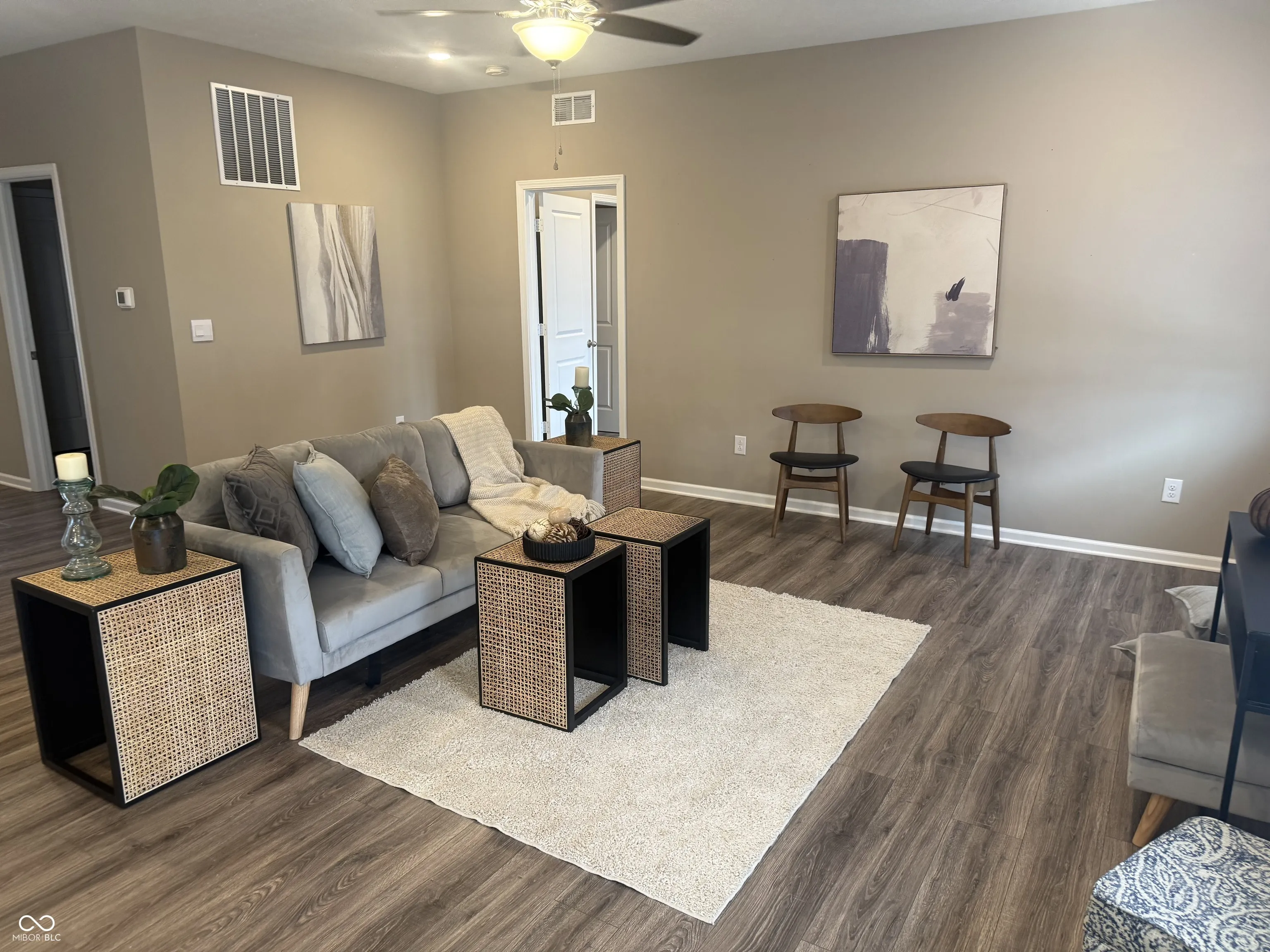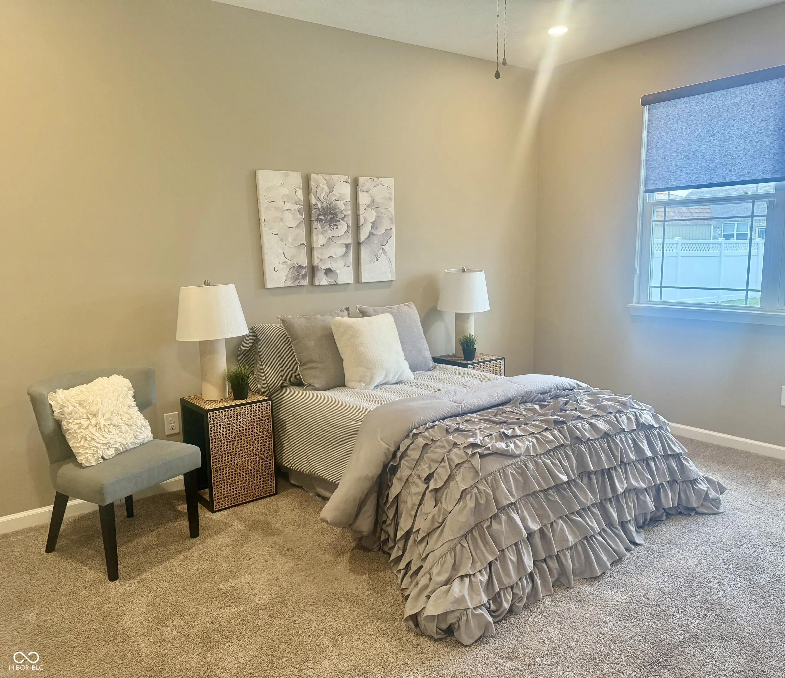 Assumable Mortgage! Welcome to the Hollister, 3 Bed/ 2 bath all brick ranch in Twin Lakes. This popular floor plan features an appealing split bedroom plan & open concept living area perfect for entertaining. The kitchen offers beautiful cabinetry with crown molding, quartz countertops, tile backsplash, large pantry and island. Primary bedroom offers double vanity sinks, tiled shower w bench & walk-in closet. Added bonuses include the linen storage near the hall bath & spacious utility room off the garage. New all concrete rear patio & paver front porch is perfect for enjoying time outdoors. Includes D.R. Horton Indianapolis America’s Smart Home Technology package. Many upgrades including landscaping surrounding entire home, flag pole, all new ceiling fans, soft close hinges on cabinet doors, new window blinds. Seller to provide 3-year home warranty paid.