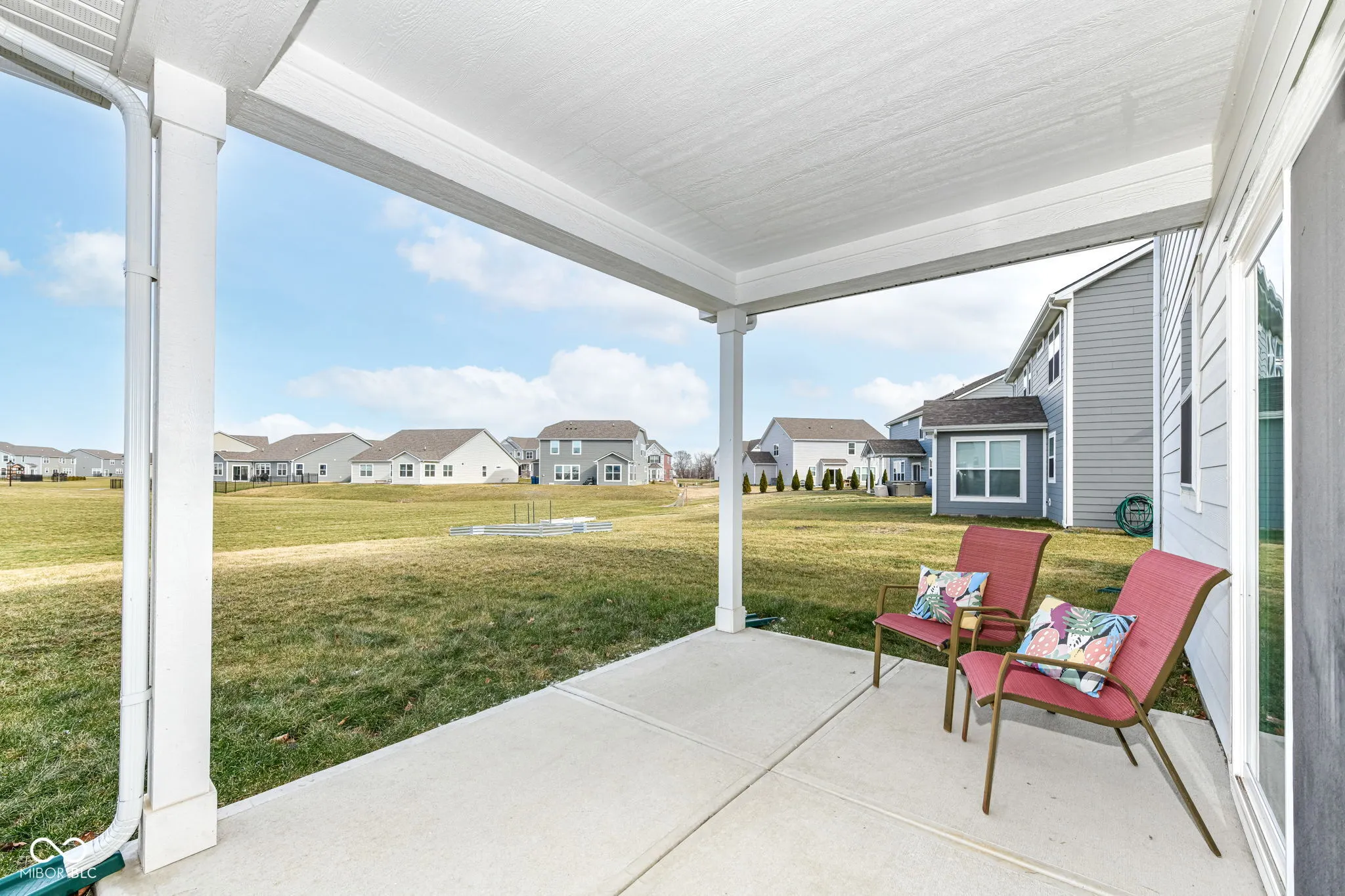 This well-designed home offers over 2,100 square feet of comfortable space, ideal for busy family life, and is located in the highly rated HSE School District. Built with ZIP System sheathing which is backed with a 30-year warranty, it delivers lasting quality and energy efficiency. The layout includes 4 bedrooms, 2.5 bathrooms, and a 3-car garage with plenty of room for bikes, storage, and weekend projects. A private study works perfectly as a home office, playroom, or homework space. Outside, the attached veranda and spacious backyard that opens to a large common area provide room to play, relax, and entertain. The neighborhood features a community pool, walking paths throughout, and is conveniently located just 5 minutes from major shopping and dining with easy access to I-69-offering the perfect balance of comfort, convenience, and community.