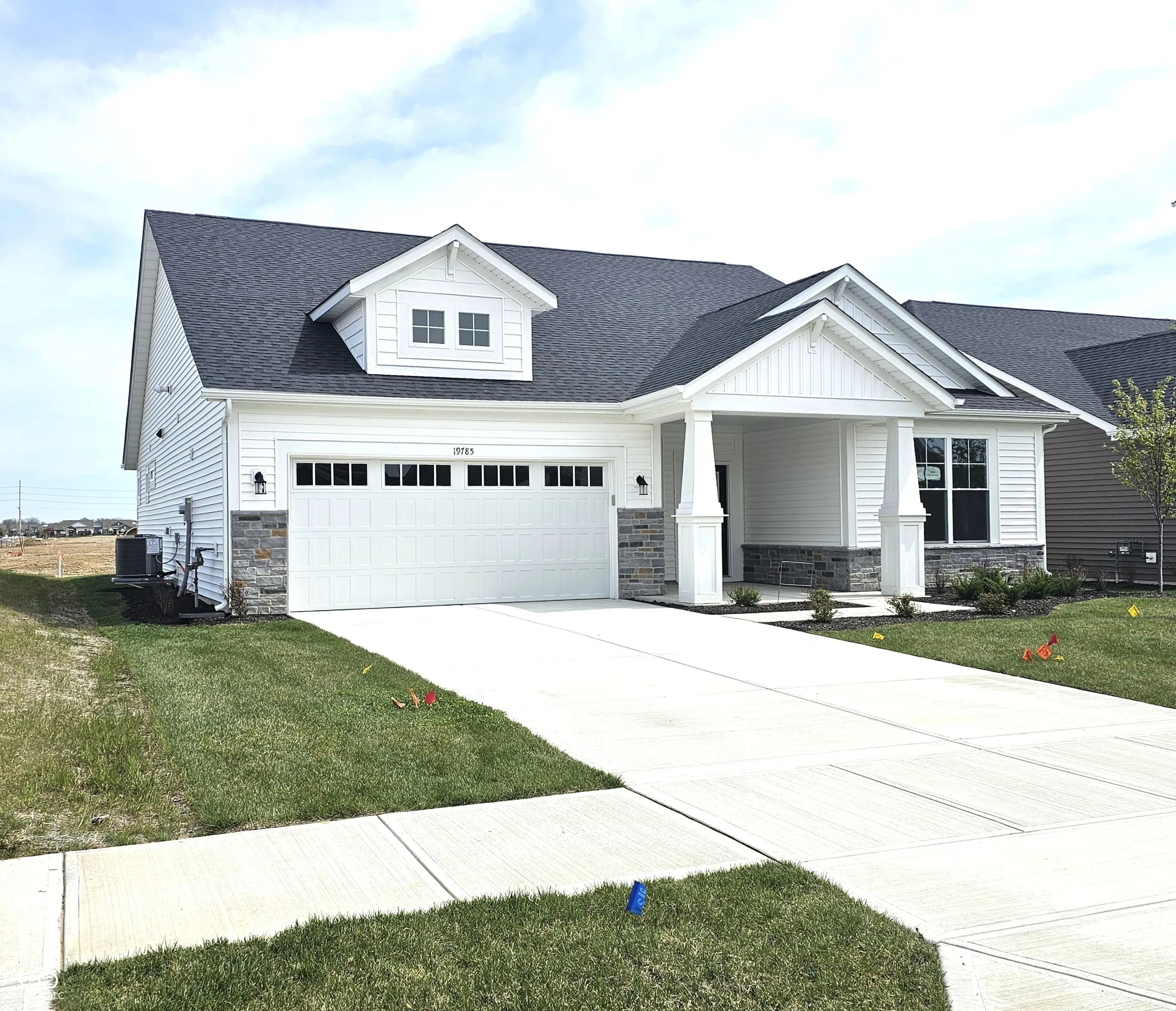 Olthof Homes presents the Harmony. Discover easy living in this low-maintenance 2-bedroom, 2-bathroom ranch home offering 1776 square feet of thoughtfully designed space. The open concept layout features a bright kitchen overlooking the dining and great room – perfect for everyday living and effortless entertaining. A versatile flex room with elegant French doors provides the ideal spot for a home office, den or hobby space. The spacious primary suite includes a well-appointed bath and generous walk-in closet, while the second bedroom and bath offer comfort and private for guests. With its single level design and minimal upkeep, this home delivers the convenience and comfort buyers are looking for. Upgrades in the home: Maple Painted White with Quartz Countertops, Tiled Backsplash in Kitchen, All 4 GE Stainless Steel Kitchen Appliances, Tiled Shower and Double Sinks in Primary Bathroom, Low Maintenance Living, Covered Porch.