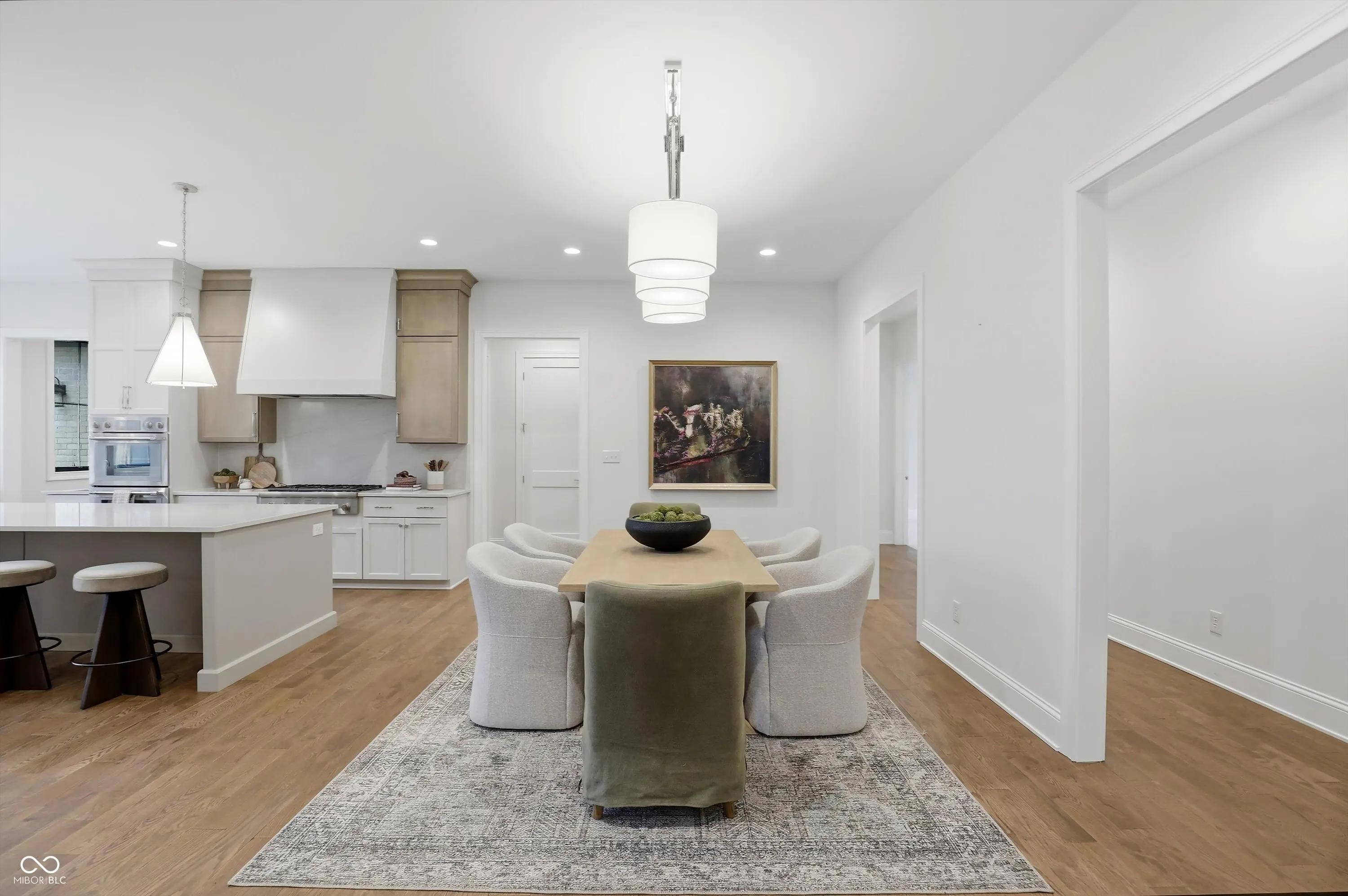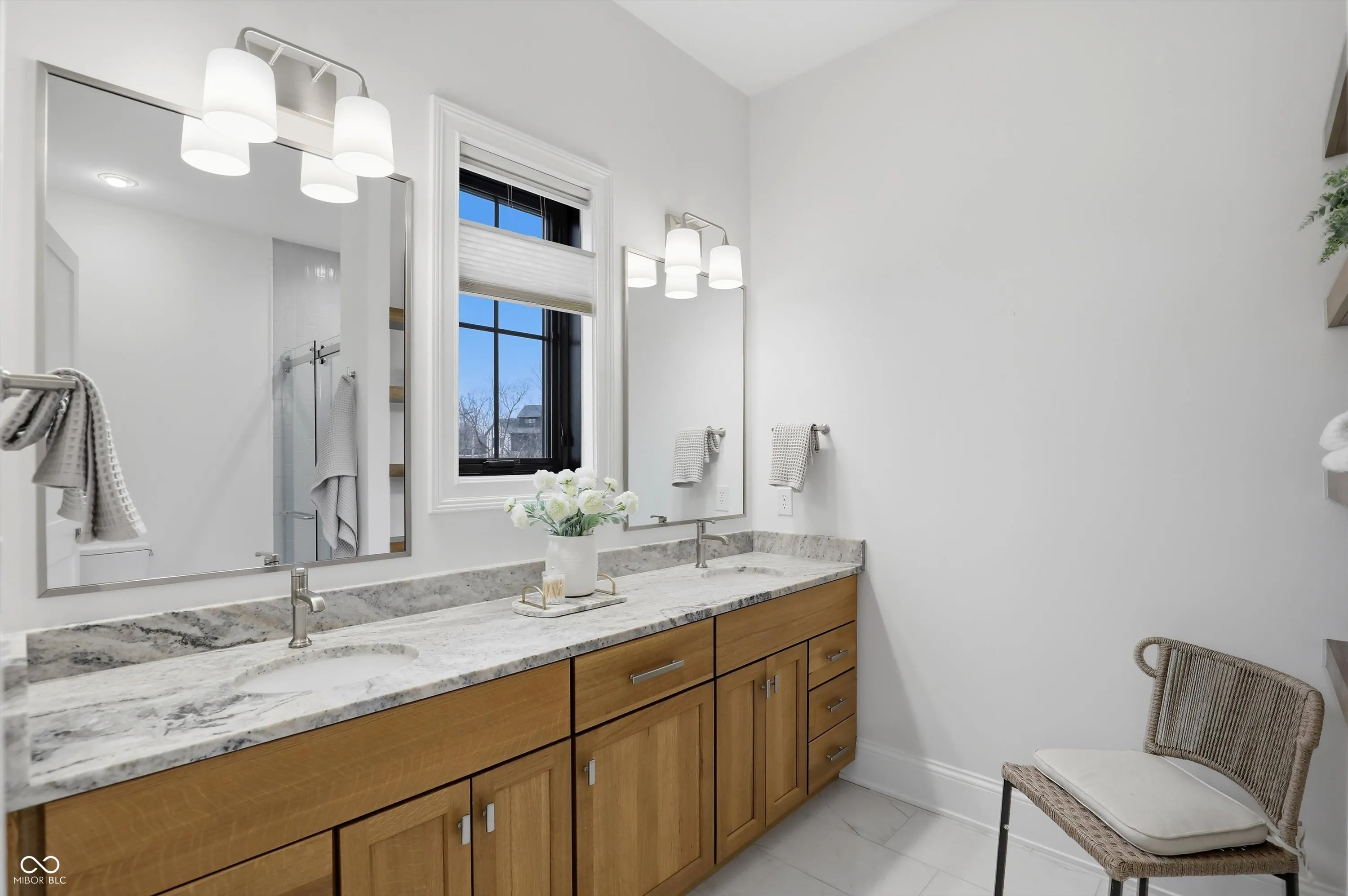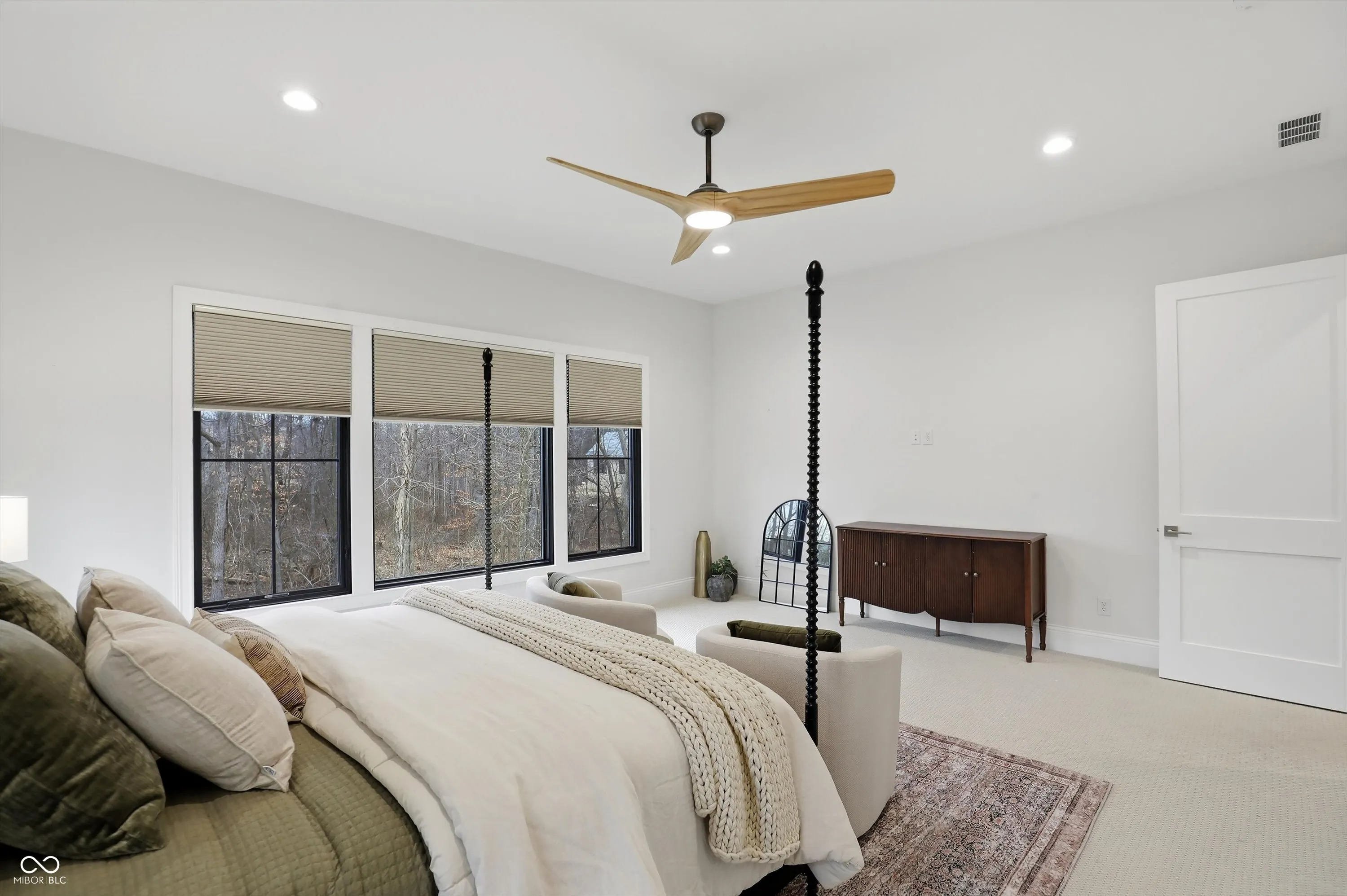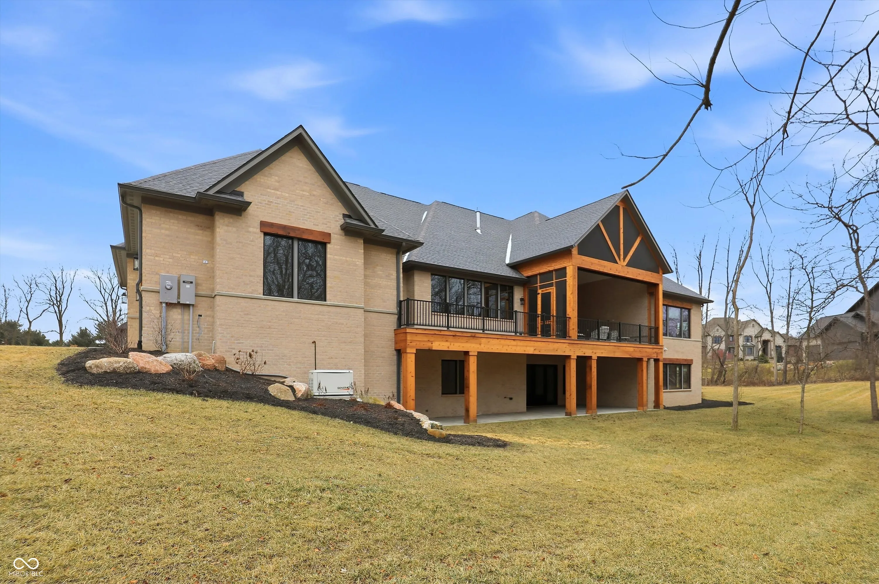 Discover this EXCEPTIONAL single-story RANCH-style home nestled in the highly sought-after OLDFIELDS neighborhood. Built in 2024, this nearly new residence offers the convenience of immediate move-in. (Imagine NEW without going through the building process!) The home features a spacious, contemporary open floor plan designed for comfort and effortless living. With five bedrooms, including TWO primary suites and two additional ensuites on the main level, this residence provides ample space for family and guests. The main level boasts high ceilings, a chef-quality kitchen with 12 ft island & signature appliances. PLUS there is a secondary prep pantry. A double-sided fireplace is shared with an inviting casual-to-entertainment dining area and a comfortable great room with warm atmosphere. Open the glass wall to a rustic-beamed outdoor-indoor living area, complete with phantom screening and exceptional views. Additional main-level features include a den with floor-to-ceiling built-ins, a fun dumb waiter, and a four-car garage with custom finishes. The home’s expansive windows offer breathtaking views of the private 1.42-acre lot, which backs to wooded privacy. Along with the quiet cul de sac location, this an exceptional lot. The lower level is designed for entertainment, featuring full-view daylight windows, a walk-out patio with plumbed gas for future grill area, a wet bar, lounge, game area, reading nook, exercise room, guest bedroom, full bath, bonus/craft room, and ample storage space. This property combines luxury, functionality, and a prime location, making it a RARE OPPORTUNITY for those seeking a move-in-ready ranch home with the added benefit of one of Zionsville’s most desirable neighborhoods.
