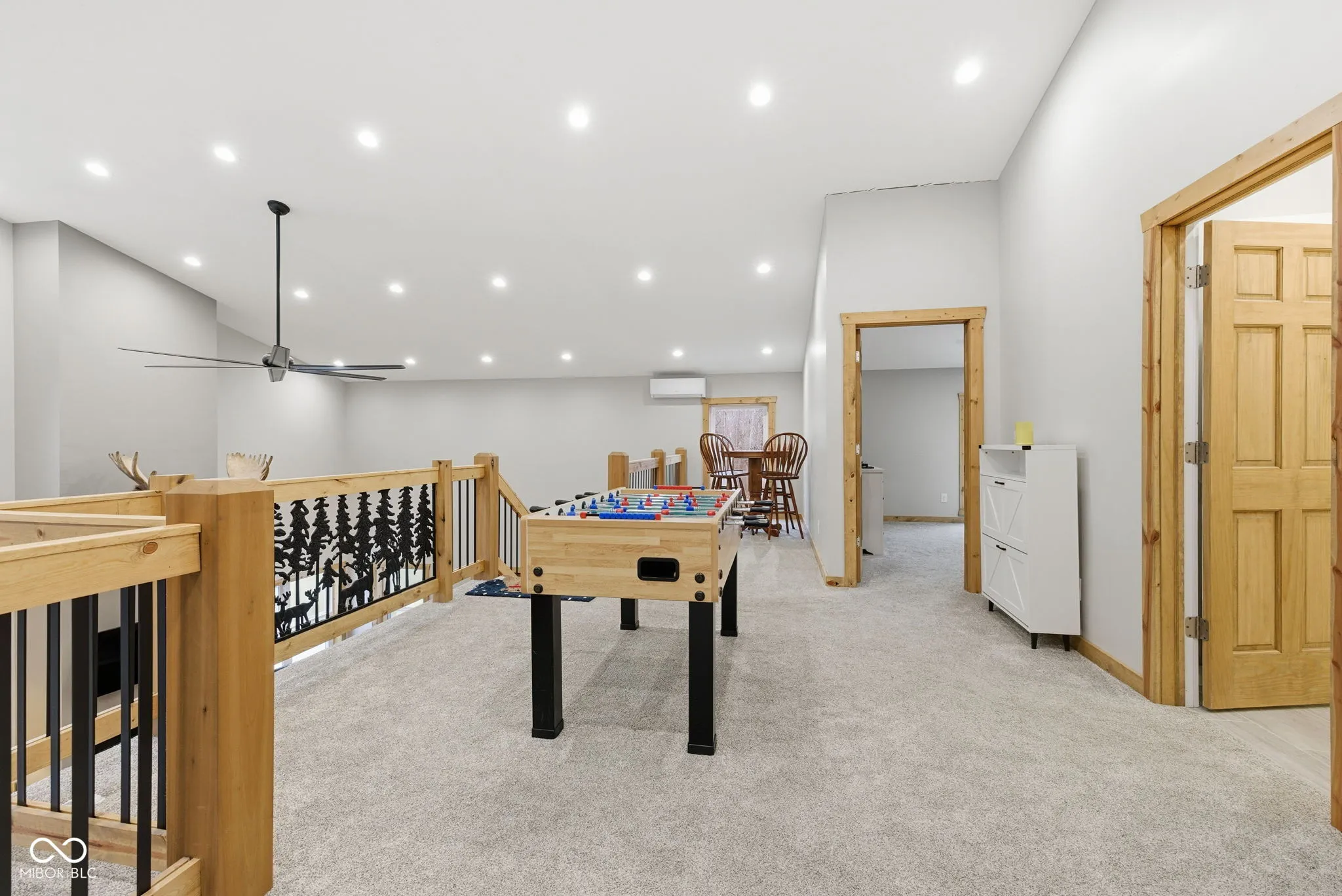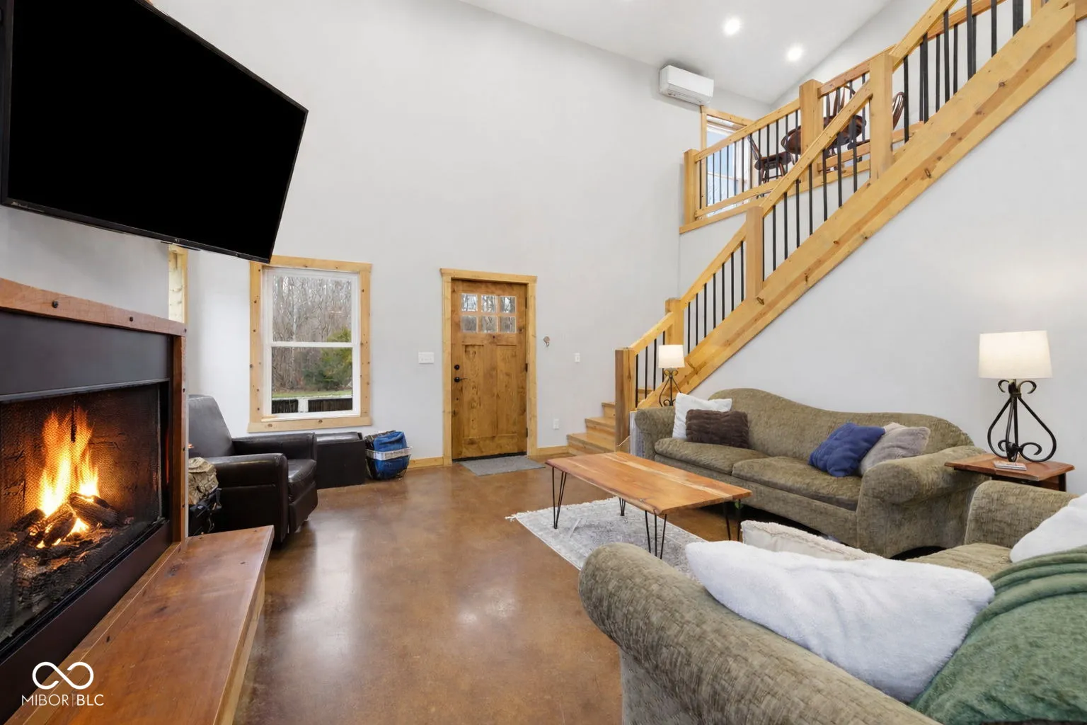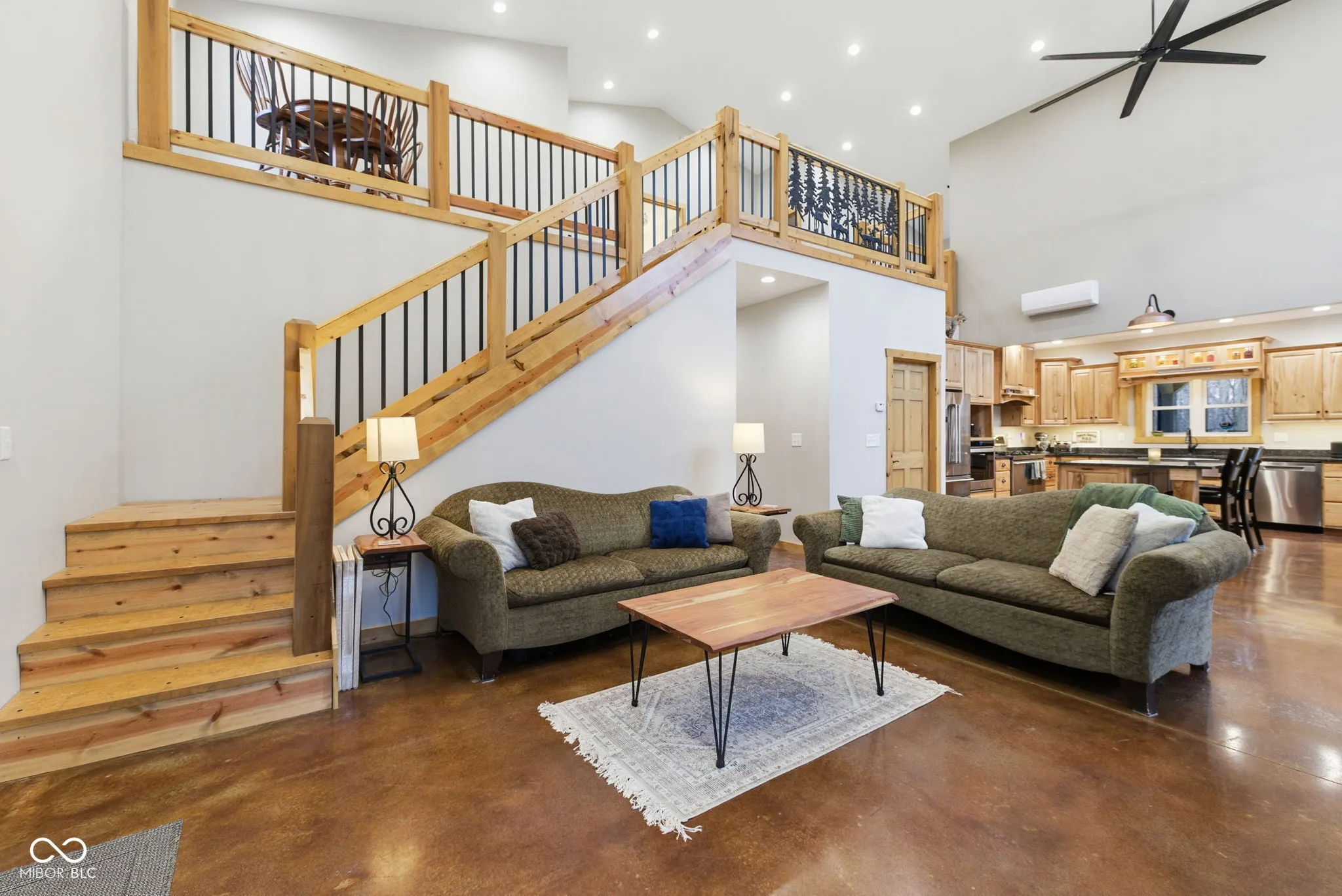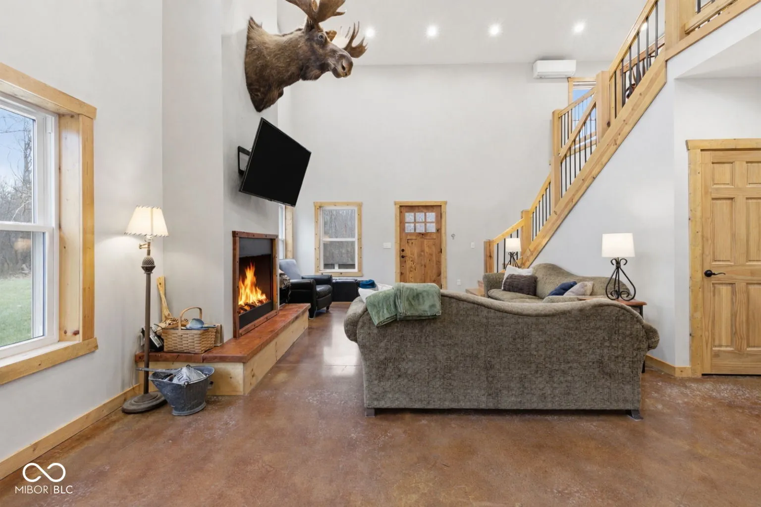 Tucked away at the end of a long private drive, this stunning 2023 barndominium welcomes you with a perfect blend of countryside charm and modern design. From the moment you arrive, the craftsmanship and attention to detail are impossible to miss. Inside, the home opens to a breathtaking two-story great room featuring soaring ceilings, rich wood accents, and an abundance of natural light. Heated polished concrete floors run throughout the main level, adding both style and comfort. The kitchen is thoughtfully designed with custom Amish-built cabinetry, offering distinctive character along with everyday functionality. Upstairs, a spacious loft overlooks the main living area and provides a unique perspective of the home’s open layout and cozy wood-burning fireplace. With five generously sized bedrooms-including two conveniently located on the main floor-this home offers flexibility for families, guests, or work-from-home needs. Car enthusiasts and hobbyists will appreciate the impressive 1,600 sq. ft. attached garage, large enough to store a camper, boat, or multiple vehicles, complete with an upper-level loft for additional storage or a private retreat. A separate detached two-car garage adds even more space for equipment, tools, or recreational use. Set on 7.29 acres, the property offers privacy, scenic views, and frequent wildlife sightings, making it ideal for those who enjoy the outdoors or are looking to create their own hunting or recreational space. Designed for both comfort and versatility, this one-of-a-kind property offers the space, features, and setting to truly make it your own.