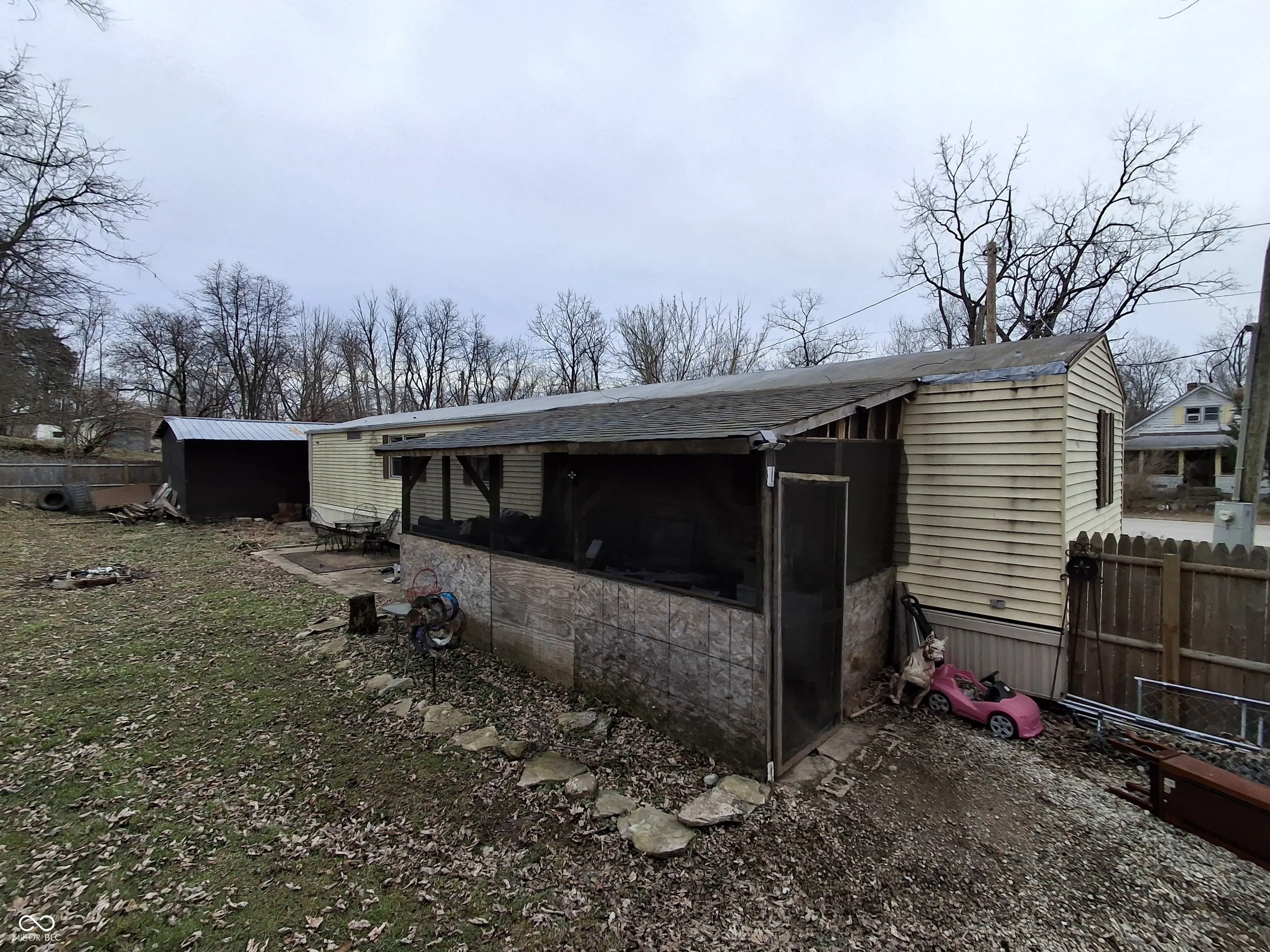 Cozy and spacious 2 bedroom, 2 bath manufactured home with many improvements both interior and exterior sits on a corner lot consisting of 2 total lots. Partially fenced back yard with a screened back porch for outside enjoyment. The property sits very close to White Lick Creek and is a short distance to Brooklyn Playground. Garage has work room in the interior back for extra storage.