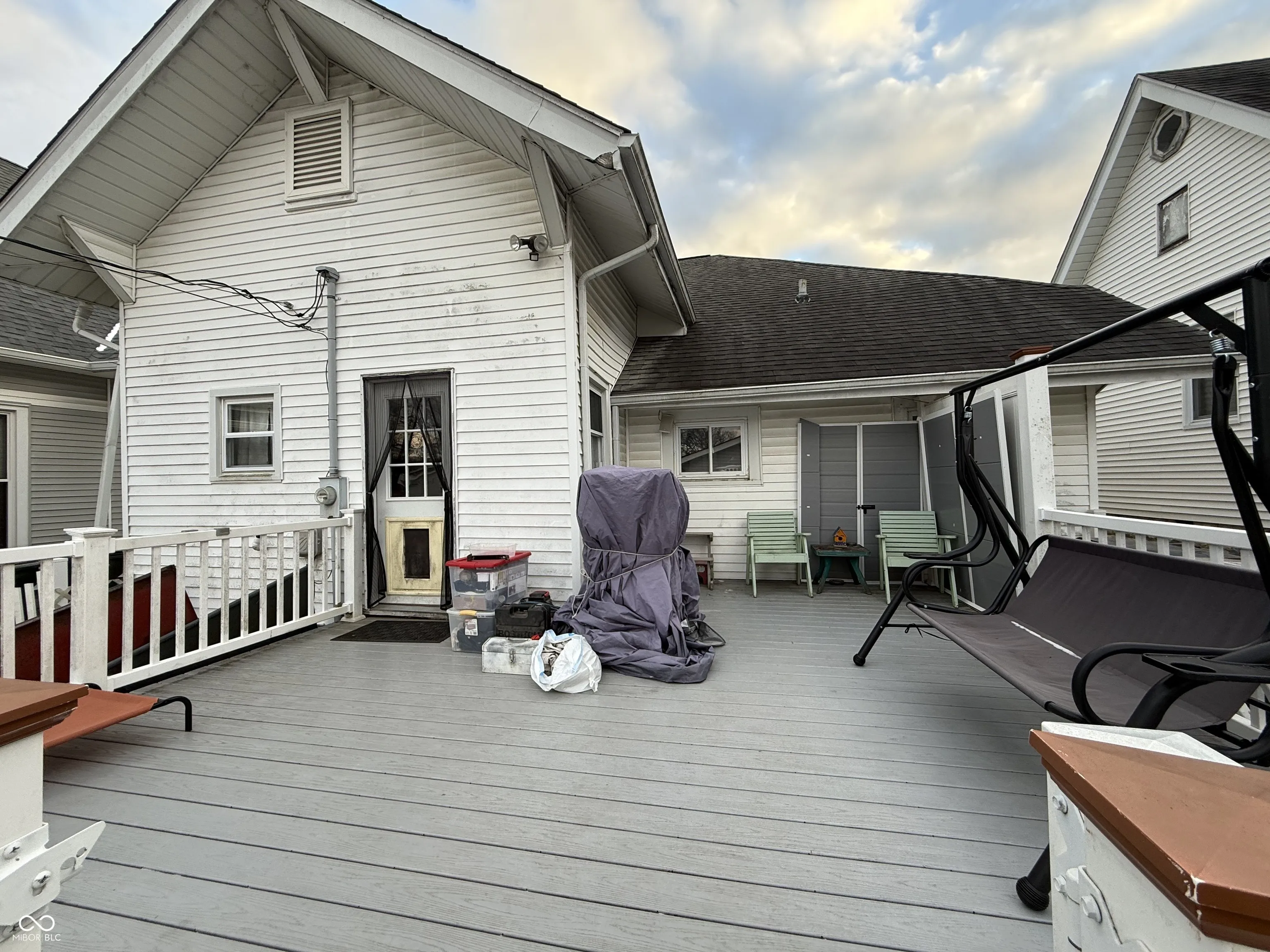 Come see this character-rich home with some modern updates and a large covered front porch that sets the tone the moment you arrive. Large living room has floor to ceiling windows for natural light. Formal dining room and a large updated kitchen with granite counter tops & copper sink, SS appliances including double oven,4 door/french door refrigerator, dishwasher, ample cabinet space & room for island if desired. These generously sized rooms provide space & a comfortable flow throughout the main level. Two bedrooms & a full bath on the main, one bedroom considered a master w/ bathroom attached. Upper level provides a master suite; bathroom with a tiled W/I shower, and newer vanity, sink, toilet & flooring – 2 closets, laminate H/W flooring & it’s own LG Smart Inverter for heat/air. Laundry room on main level just off of the kitchen. Access to basement through door from the back yard. Basement houses furnace, water heater and a no salt water conditioning system, also has plenty of room for storage. Vinyl insulated windows, central heat & air. Fully fenced back yard with vinyl deck and separate play area. 2 car detached garage has access from alley.