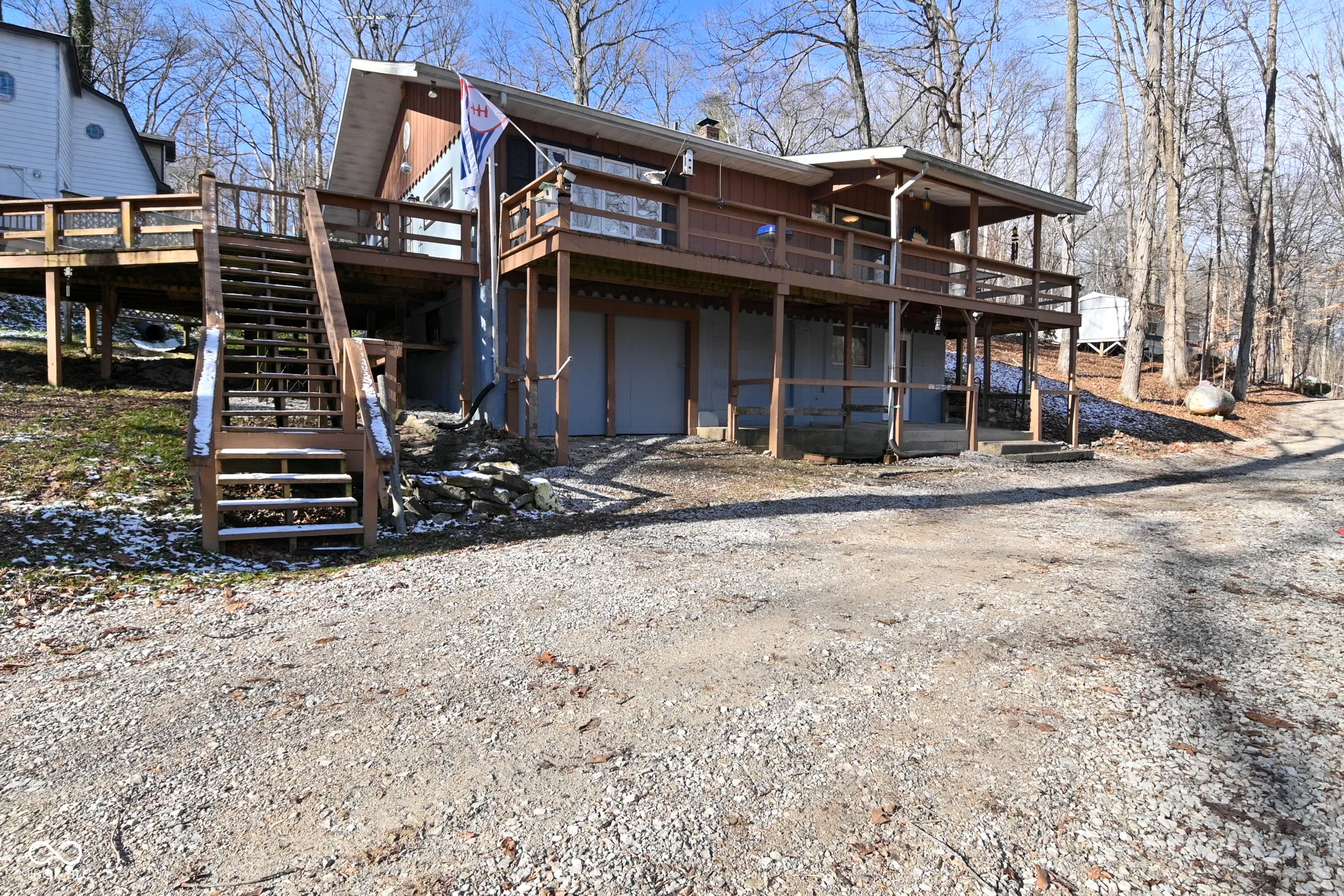 Tucked away on 1.48 acres of secluded, wooded beauty, this 2-bedroom, 2.5-bath home offers the perfect blend of privacy and lake living. Surrounded by nature, the property provides a peaceful retreat while still offering lake access and a private boat slip, ideal for boating, fishing, or simply enjoying the water. The home features a walkout basement, adding flexibility for storage, recreation, or future living space. Inside, you’ll find comfortable living areas designed for both everyday living and entertaining. Step outside to a large outdoor deck, perfect for gatherings, grilling, or enjoying the peaceful surroundings. The upper-level primary suite includes a private covered deck, creating a serene space to relax and take in the wooded views. With ample parking and open space for trailers, campers, boats, ATVs, and other recreational vehicles, this property is ideal for outdoor enthusiasts who want room to bring all their toys. Whether you’re searching for a full-time residence, weekend escape, or lake retreat, this home offers privacy, versatility, and the ultimate outdoor lifestyle.