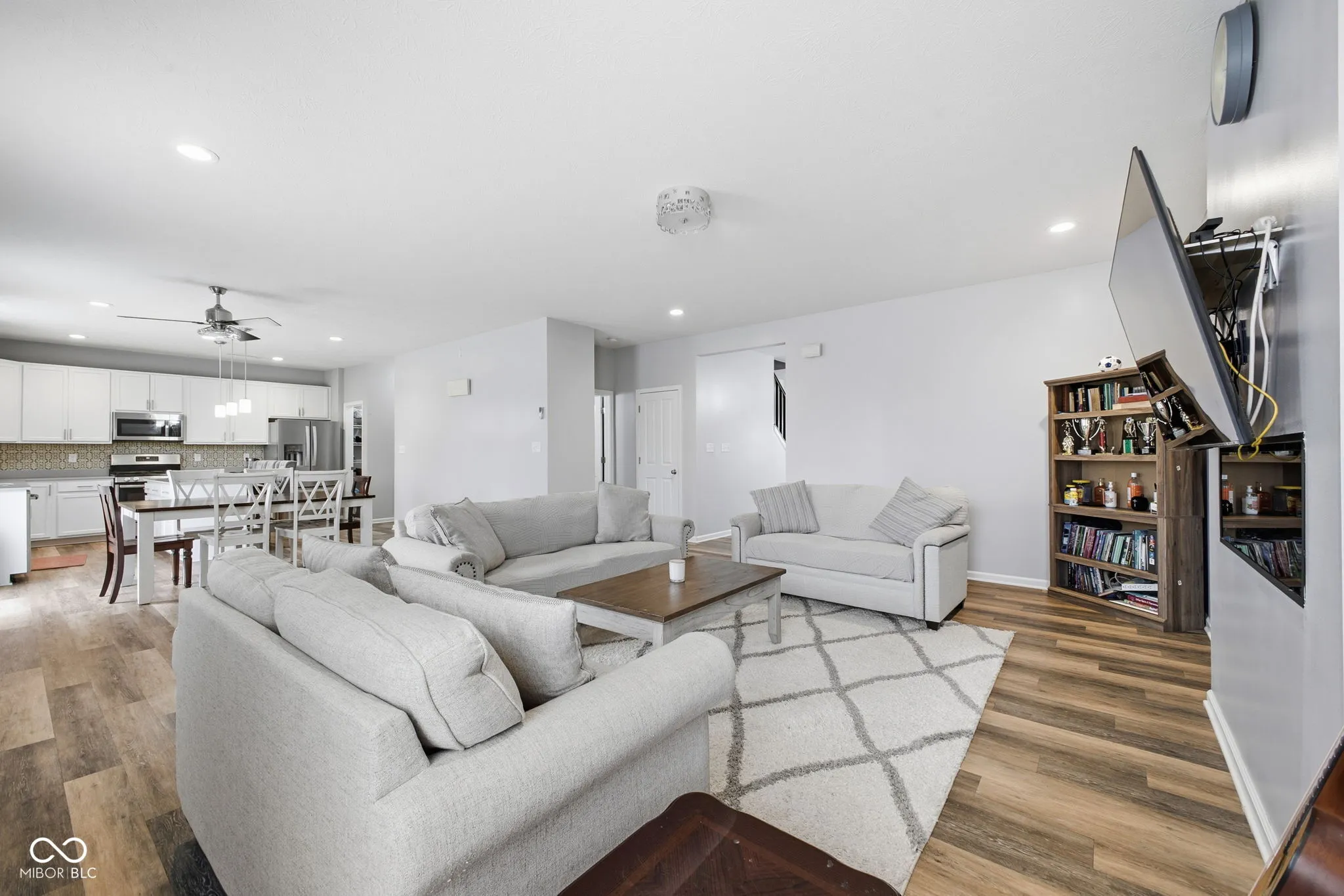 Spacious and beautifully designed, this over 3,000 sq. ft., two-level home offers 4 bedrooms and 2.5 baths with an open, versatile floor plan. The main level features high ceilings throughout and a large eat-in kitchen complete with a center island and stainless steel appliances, all included. A bright breakfast room flows seamlessly into the family room, highlighted by a cozy, modern electric fireplace. An additional living room provides flexibility for formal dining or a multi-purpose flex space. Upstairs, you’ll find four generously sized bedrooms, each with ample closet space, including walk-in closets. The upper-level laundry room is conveniently located and includes a washer, dryer, and water softener. A spacious loft adds extra room for entertaining, a private retreat, or a play area. This home is filled with natural light and offers abundant space for comfortable living. Located on Caldisak Street, it’s close to shopping and dining and is clean, well-maintained, and move-in ready. Enjoy the welcoming front porch, a rear patio perfect for relaxing or entertaining, and a good-sized backyard ideal for outdoor enjoyment.