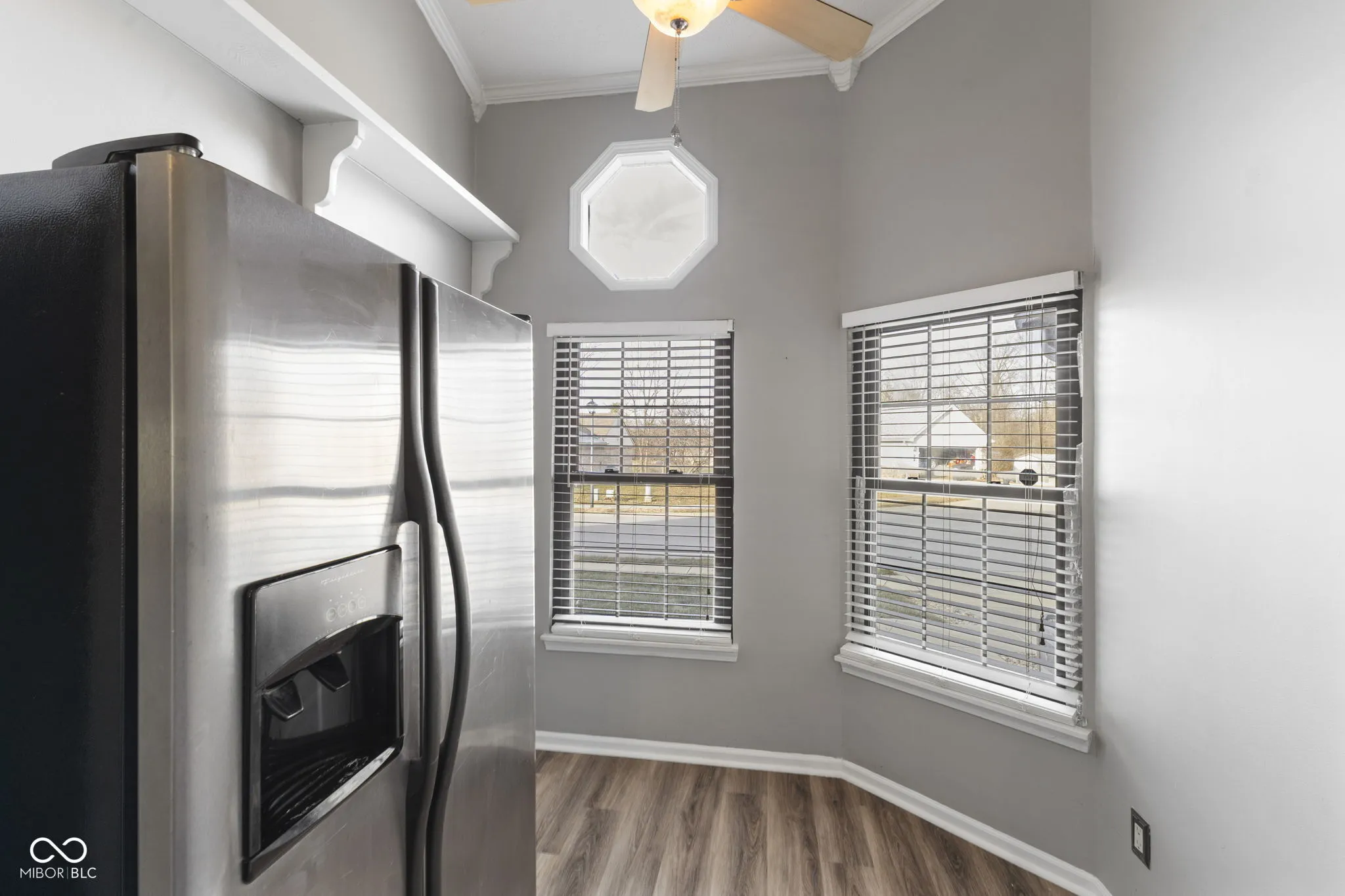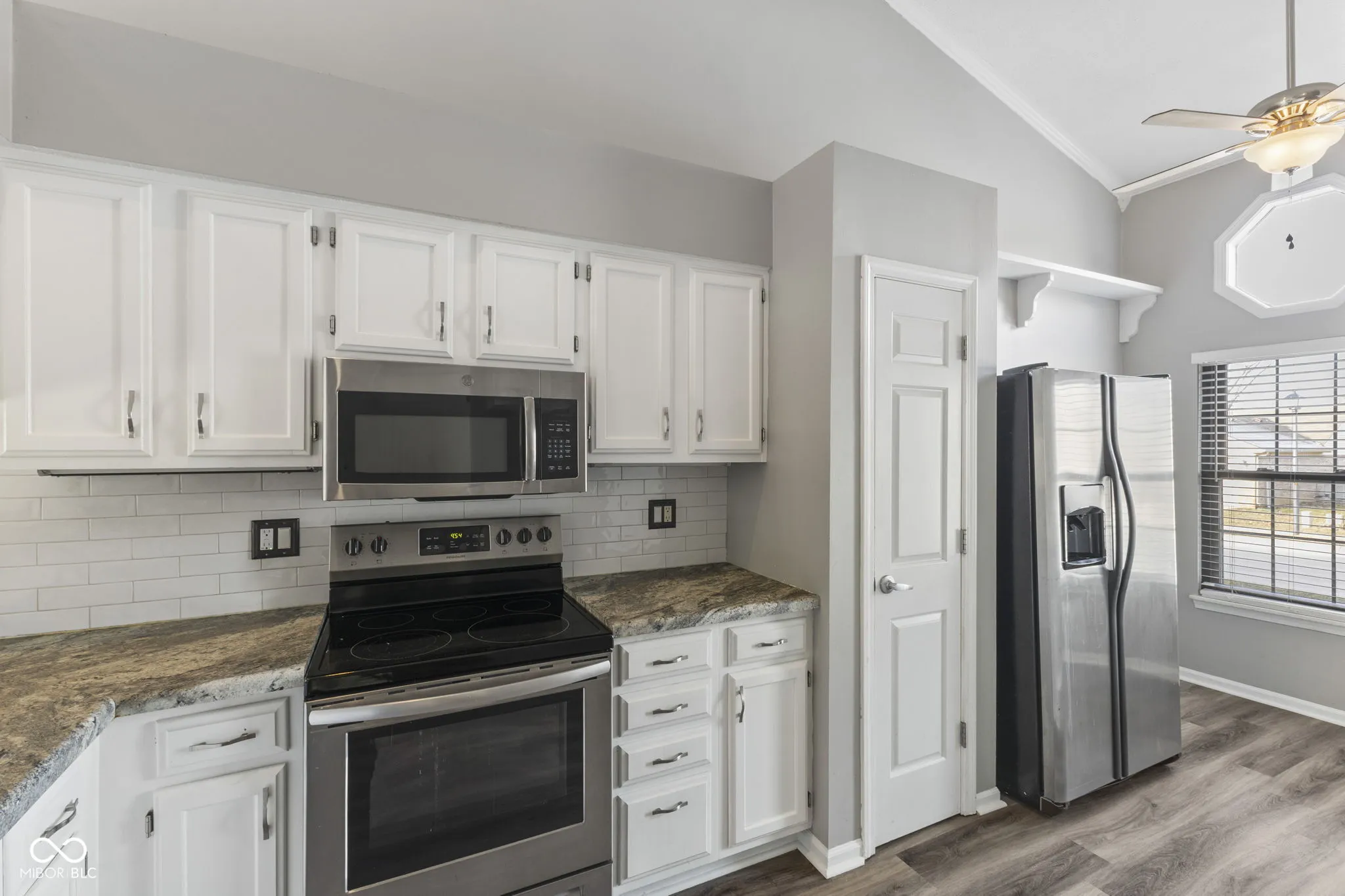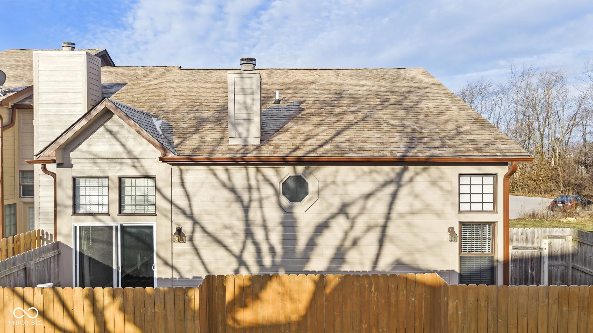 Welcome home to this beautifully updated 2-bedroom, 2 full bathroom residence situated on a private corner lot in a quiet cul-de-sac in desirable Old Town Greenwood. This end-unit property offers added privacy with no shared driveway and a two-car garage. The living room features cathedral ceilings and a cozy fireplace, perfect for relaxing or entertaining. An upper loft space provides flexibility for a home office, guest area, or additional living space. The open layout flows seamlessly to a large private back deck, fully enclosed by a privacy fence, ideal for outdoor dining or quiet evenings at home. Enjoy low-maintenance living with snow removal, lawn care, and additional services covered by the HOA. Major updates provide peace of mind, including a new roof (2021), new flooring and interior paint (June 2021), deck exterior stained (May 2022), HVAC replaced (July 2022), new microwave and oven (August 2022), and exterior building freshly painted in 2024. Additional feature: Laundry is currently located in the garage but can easily be relocated back to the interior hall closet. Conveniently located just minutes from the interstate, grocery stores, police and fire stations, this home combines comfort with accessibility. As a unique bonus, enjoy Greenwood Amphitheater summer concerts and Freedom Festival fireworks right from your driveway. Make this move-in ready home yours today!