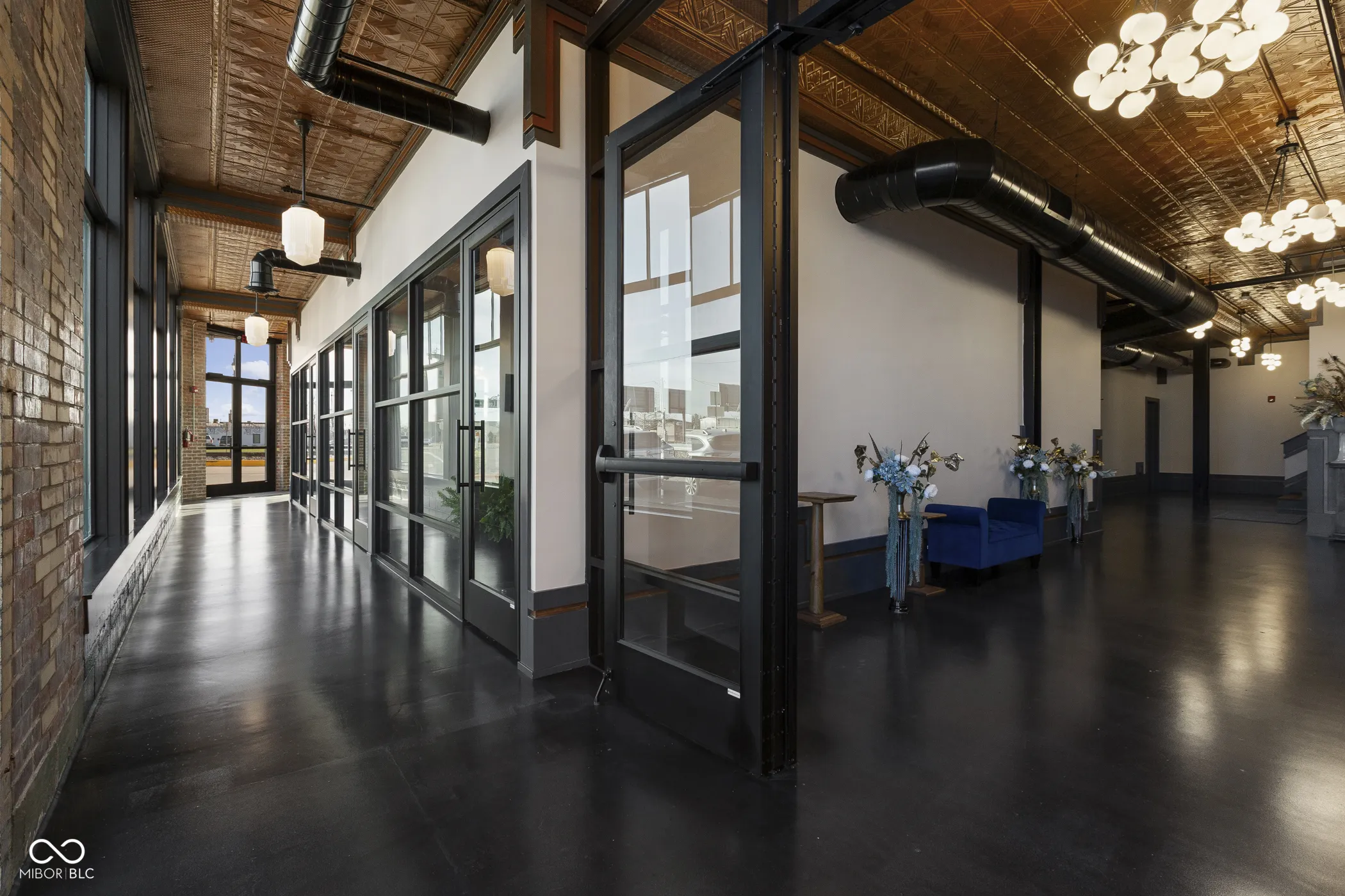 Seated in the heart of historic downtown Seymour, The Copper Top is a nearly 19,000 SF fully renovated event and mixed-use venue offering exceptional versatility and income potential. This landmark masonry building blends timeless character with modern systems, making it ideal for weddings, corporate events, conferences, private functions, and interim office or studio rentals. The exterior features a new Durolast membrane roof with 2″ insulation and 20-year warranty, Pella Architectural Reserve windows, Old Castle storefront systems, extensive tuckpointing with new limestone sills, new exterior paint, upgraded box gutters, dusk-to-dawn lighting, and a reinforced concrete service pad. Inside, the building was taken down to masonry and rebuilt with new wood and steel framing, sound and thermal insulation, fire-rated drywall, a renovated elevator shaft, and a new hydraulic elevator. All mechanicals are new, including seven gas rooftop HVAC units, new plumbing with PEX manifold and tankless water heater, new electrical fed by 3-phase power, updated fire suppression and alarm systems, data/WiFi infrastructure, 20-camera security system, and full access-control FOB entry. Upscale finishes include solid-core doors, Schlage hardware, natural stone countertops, custom millwork, epoxy and hardwood flooring, porcelain tile, six fully renovated restrooms, dimmable LED lighting, integrated sound system, and HD TVs throughout. The Copper Top offers multiple event spaces, conference rooms, bride and groom suites, kitchenette and staging kitchen, overhead loading door, rear service entrance, and secure access areas-creating a turnkey, high-end venue with outstanding flexibility and downtown presence.