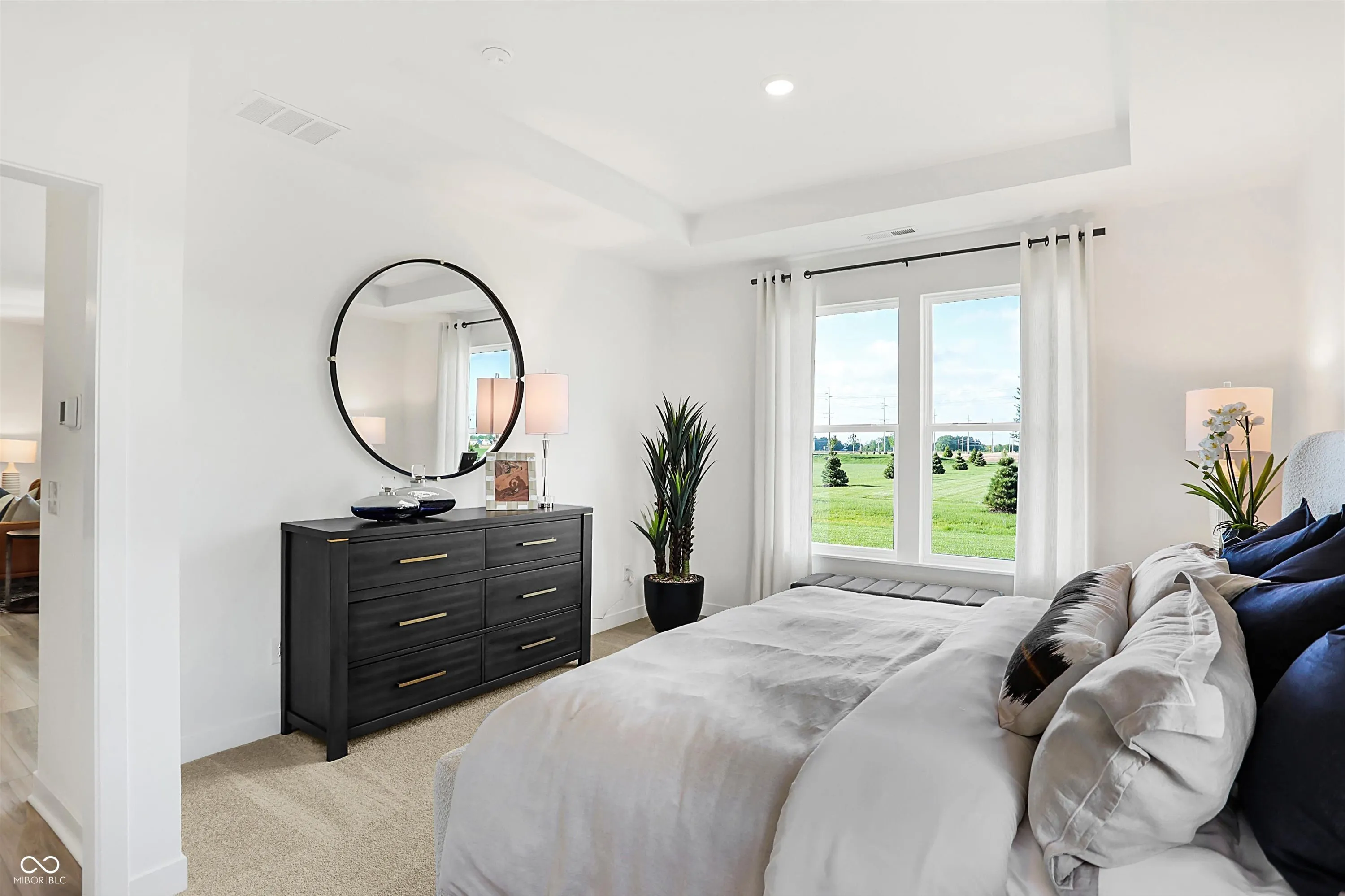 The Ranch Collection offers new and low-maintenance single-family homes coming soon to Alexander Ridge, a master-planned community in McCordsville, IN. Onsite amenities include a pickleball court, playground, a pavilion with seating and a firepit for outdoor enjoyment. A suburb of Indianapolis, McCordsville offers a laid back pace of life with close proximity to excellent recreation spots and major shopping venues. Nearby Geist Reservoir is great for boating, dining and enjoying fun in the sun. Flat Fork Creek Park is the perfect place for the outdoor enthusiast, featuring hiking and mountain biking trails, plus a sledding hill. Hamilton Town Center is just around the corner for shopping, dining and socializing. Enjoy single level living with this amazing open concept ranch home. Then enter into the large great room with abundant windows which opens to the central kitchen island with breakfast bar seating. The kitchen features 42″ high upper cabinetry and ample storage. Be greeted by the family foyer entry from garage with locker style built-ins for organizational ease. One of the highlights of this plan is the integrated covered rear porch, great for relaxing day or night. Finally, retreat away to the spacious owner’s suite with dual vanity sink, fiberglass shower with glass door, and private water closet. A 4′ extension in the garage adds extra storage! The Ashbury is a must see. *Photos/Tour of model may show features not selected in home.