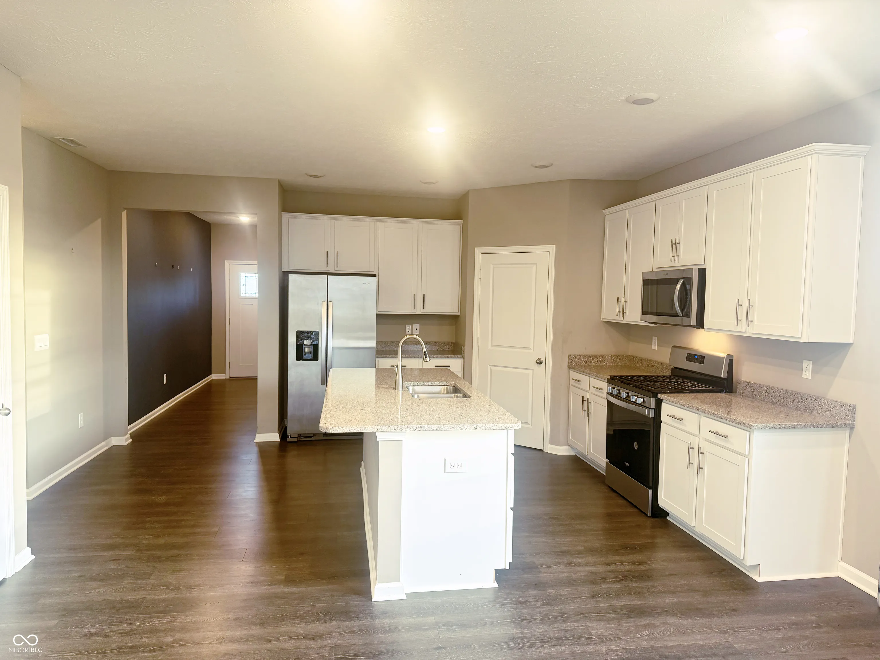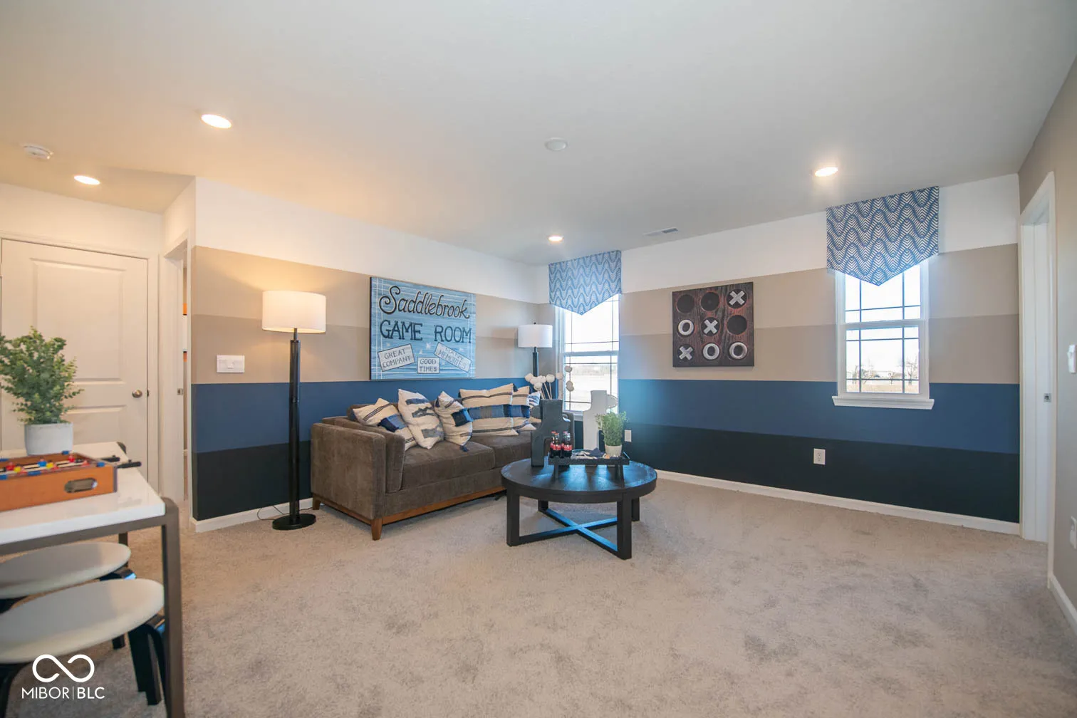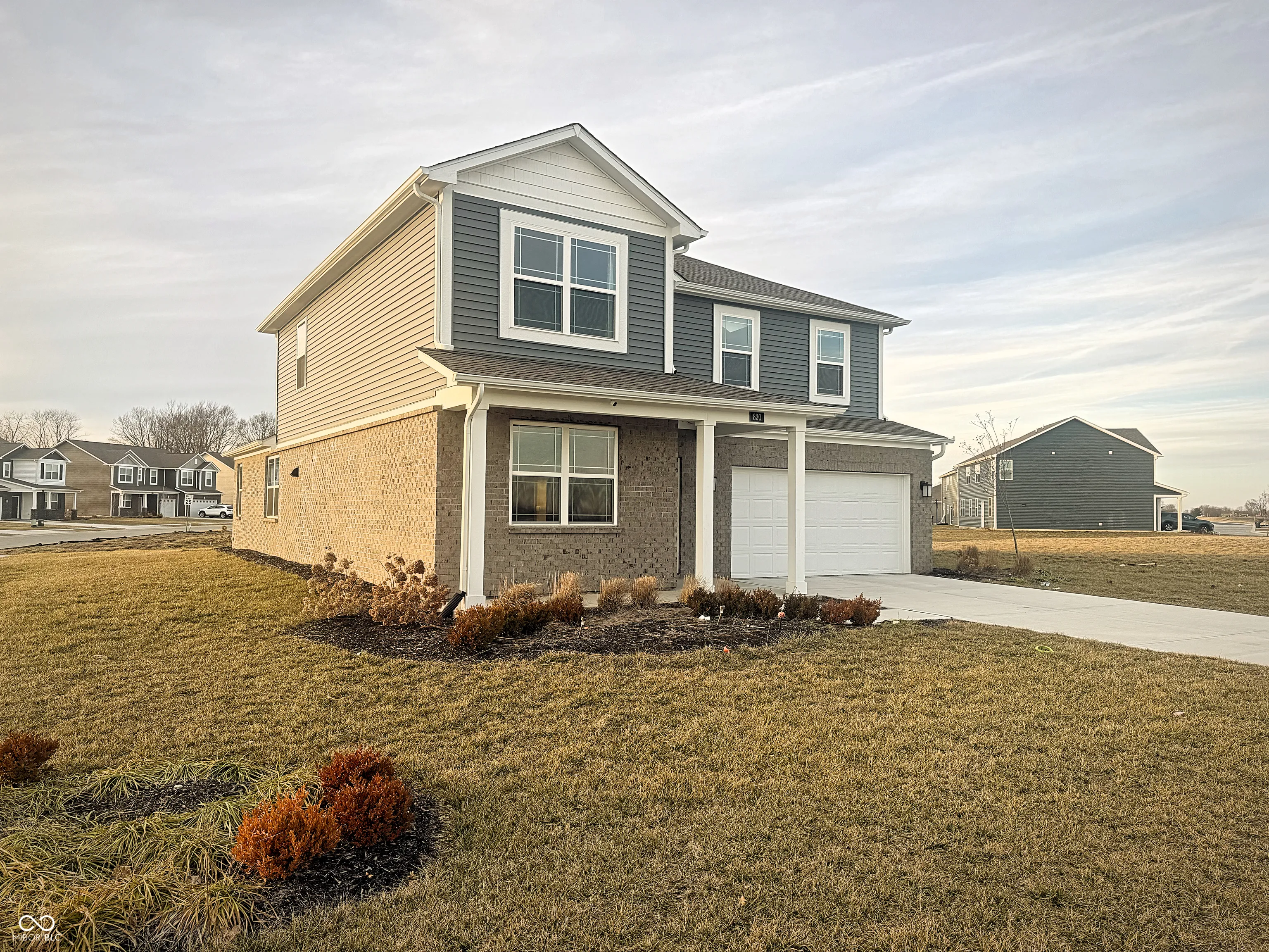 Welcome to refined living in this 2023-built Dennis model home located in the sought-after Saddlebrook Farms North community in Whiteland, Indiana. Perfectly positioned on a premium corner homesite, this elegant two-story residence showcases thoughtful design, upscale finishes, and modern convenience throughout.Offering 6 bedrooms, 4 full baths, a spacious loft, and a 2-car garage, this home is truly move-in ready and richly appointed with full irrigation, custom landscaping, designer paint, a statement fireplace, and a finished garage-details that set this model apart.The main level is designed for both comfort and entertaining, featuring a guest bedroom or private den with a full bath, seamlessly flowing into the open-concept great room and gourmet kitchen. The chef’s kitchen impresses with quartz countertops, an oversized island, 42-inch cabinetry, stainless steel appliances, and a walk-in pantry, making it as functional as it is beautiful.The primary suite is generously sized and serves as a true retreat, complete with a spa-inspired private bath, dual vanities, a private water closet, and a large walk-in closet. The laundry room is conveniently accessible from the main living areas, enhancing everyday ease. Upstairs, you’ll find four spacious bedrooms, two full baths, and a versatile loft, ideal for a media space, home office, or play area. Nine-foot ceilings throughout the home elevate the sense of space and luxury.This home also features America’s Smart Home Technology, including a smart video doorbell, Honeywell smart thermostat, Deako lighting, and more-bringing comfort, security, and efficiency together seamlessly.Step outside and enjoy community walking trails in this beautifully planned Johnson County neighborhood, conveniently located near shopping, dining, and major commuter routes. This exceptional model home offers luxury, space, and smart living-an opportunity not to be missed.