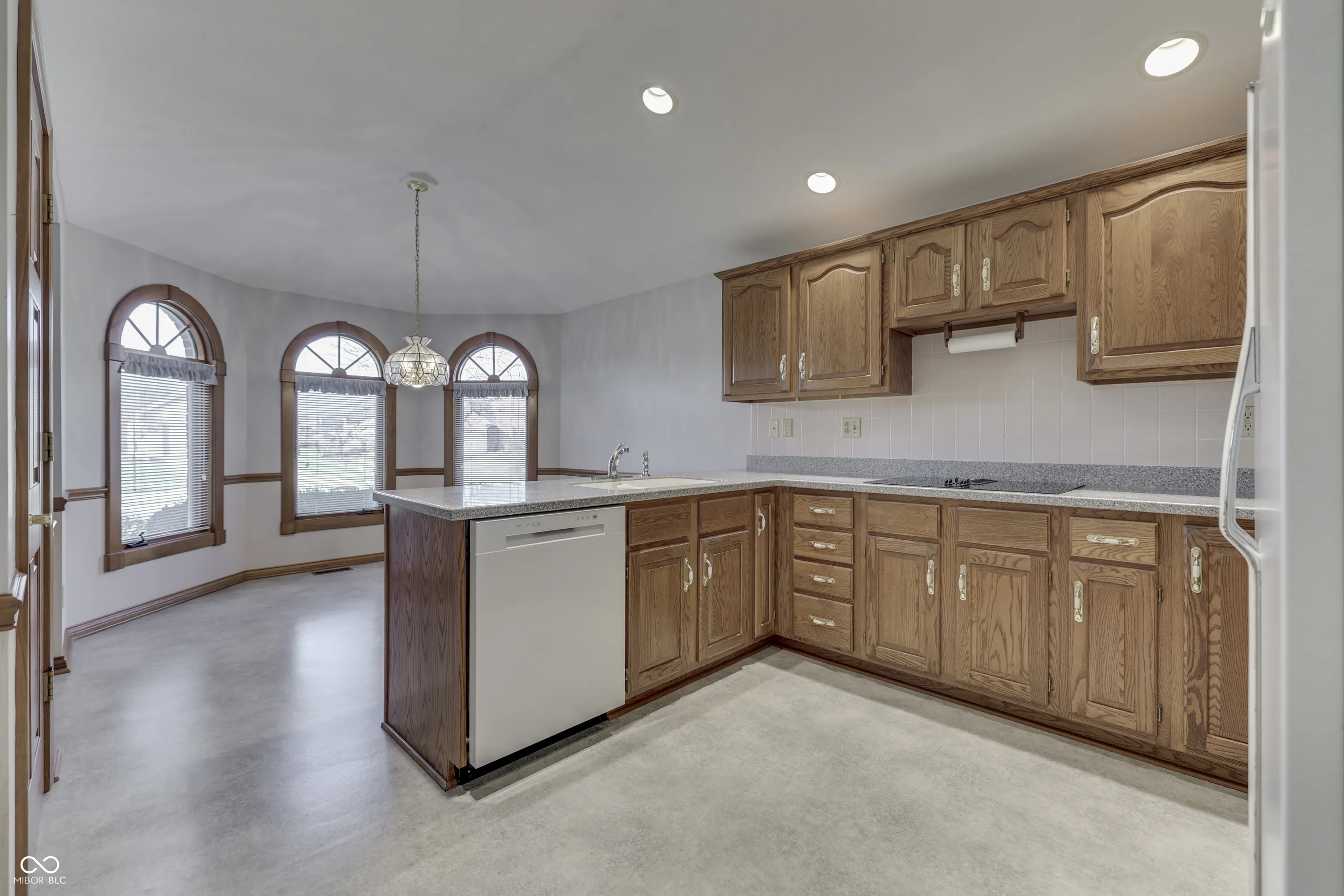 Greenwood Commons classic custom built home has a main floor primary bedroom. With the cathedral ceiling over the living room and dining area, this feels spacious but warm. Check out the den shares the 2-way fireplace with the living room and has direct access to the primary bedroom. Bedrooms two and three are spacious with ample closet space. Use the floored, drywalled and heated attic space for storage or finish it as a bedroom or a bonus room. This house is a classic and has been well cared for.