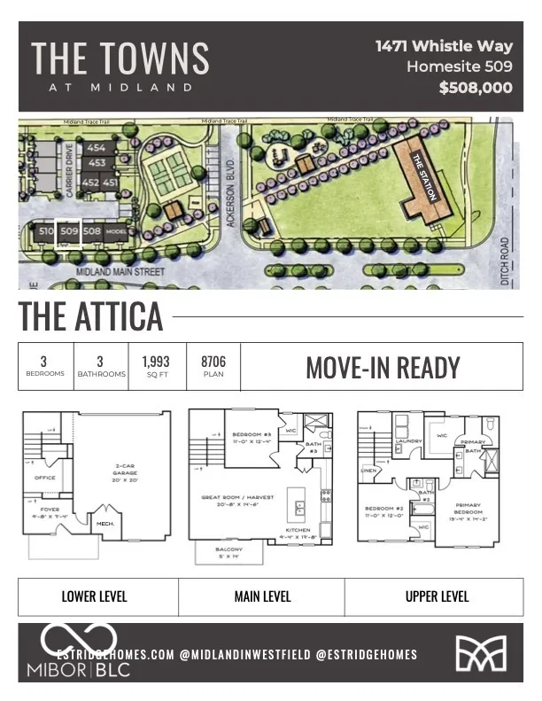 Welcome to The Towns at Midland! Designed for those who want more out of life, these homes blend thoughtful design with effortless style. Think open-concept spaces and sleek finishes, all set in a vibrant community just steps from pickleball courts, the Midland Trace Trail, and The Station – Midland’s go-to spot for events, music, and gathering. Lawn maintenance & snow removal included | Front entries with lush, low-maintenance turf | Designer lighting collection | Quartz backsplash in kitchen | Quartz countertops throughout | Luxury Vinyl Plank flooring in main living spaces | 2 in-ceiling audio speakers | Ring Doorbell. Experience life at The Towns at Midland – situated near the main entrance of Westfield’s best lifestyle neighborhood!