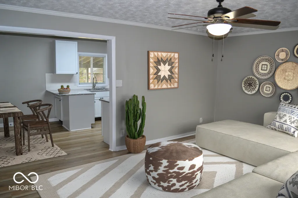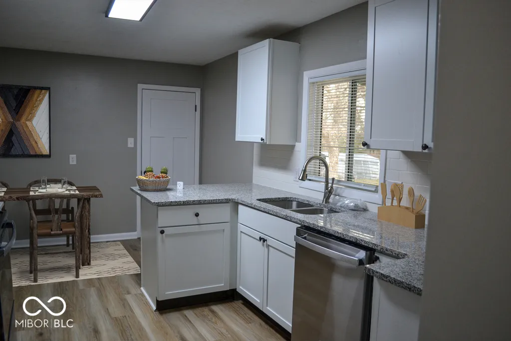 This charming single-family residence with two car garage and a full basement beckons with an inviting atmosphere, ready to embrace its new owners. Totally rehabbed home–including electrical panel. Step into the living room, where crown molding adds a touch of regal elegance, creating a space perfect for both grand entertaining and cozy evenings spent in blissful relaxation. The kitchen stands ready to inspire culinary masterpieces, showcasing shaker cabinets that whisper of timeless style, granite countertops that offer a durable and beautiful workspace, and a kitchen peninsula that is ideal for casual dining or gathering with friends. Imagine preparing delicious meals in this delightful setting, with laughter and conversation filling the air. Split bedroom layout for extra privacy. Primary bath featuring a walk-in shower that promises invigorating mornings and a barn door for extra appeal. Laundry area is just off the primary bedroom. Other 3 bedrooms are close to the main bath with double sinks. The basement is an amazing open area to make your own. A utility area is closed off. This home provides the space and features for comfortable living. Resting upon a generous 27181 square foot lot, this 1468 square foot dwelling, constructed in 1957, offers a delightful canvas for creating the life you have always dreamed about. This fully fenced back yard is spacious for outdoor fun.
