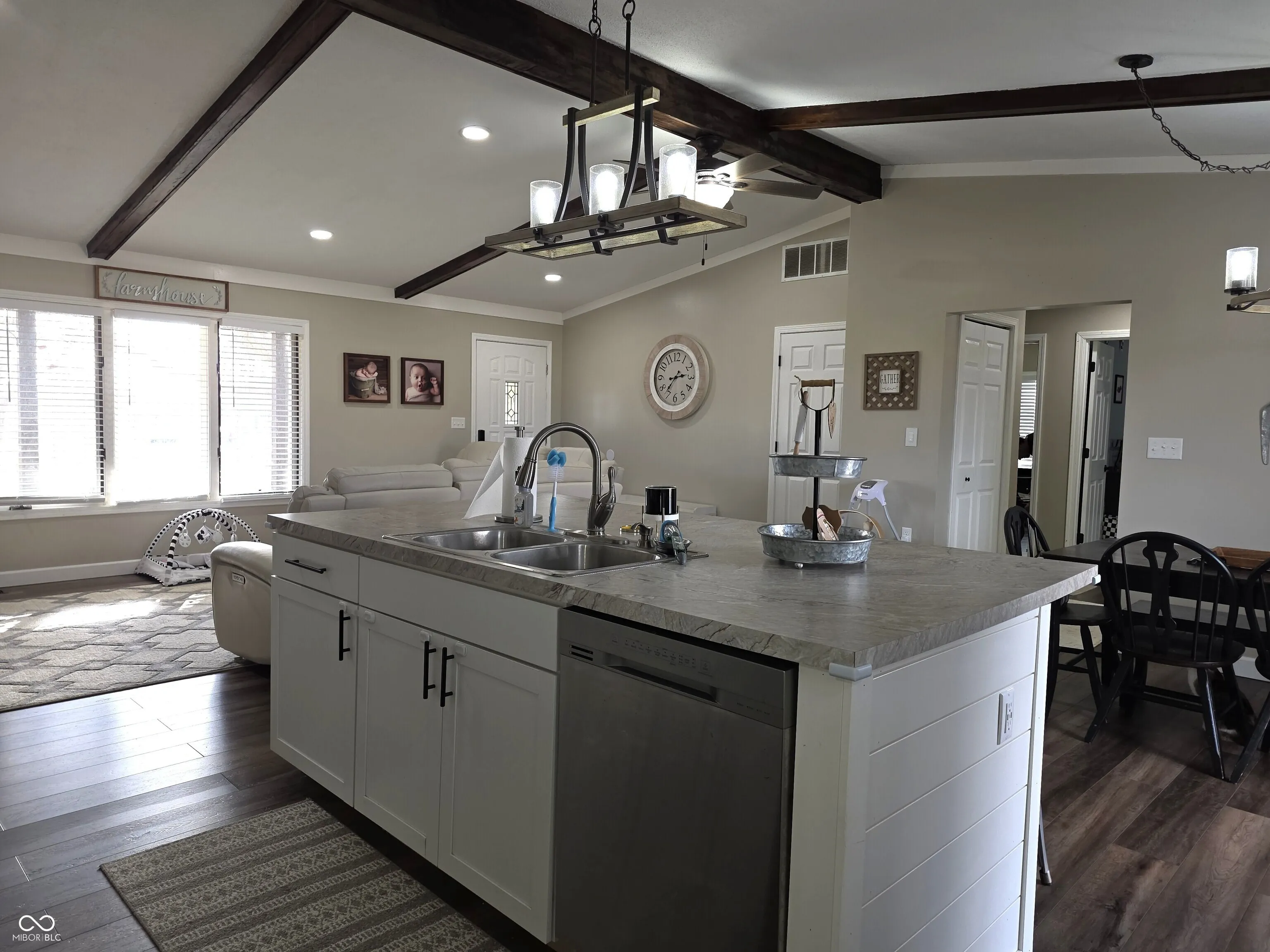 Enjoy country living in this 3 bedroom, 2 full bath home at the edge of Flat Rock! This home has had many updates in the past couple of years, including a high end Bryant heat pump, luxury plank laminate flooring throughout the home, an entirely new kitchen with an enormous island, a new wood deck, well pump and tank and the septic recently cleaned. This home offers living on 1 level with a 2 car attached garage and 2 lots totaling 1.89 acres. Fiber optic internet was recently installed, and home is in the Southwestern School District. Easy commute to I-65, and Dollar General is close-by.