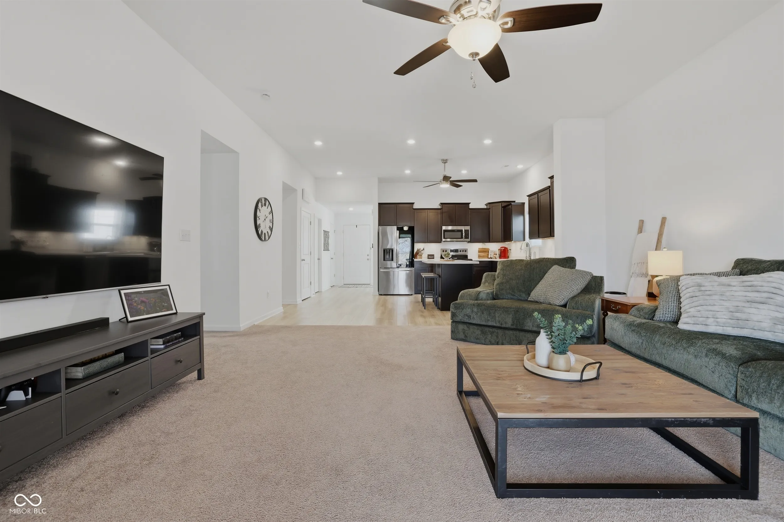 Welcome to this gorgeous, like-new, 2 year old home in the ever-growing town of Lapel…where modern design meets everyday comfort! This beautifully maintained three-bedroom, two full bath residence offers over 1,600 square feet of thoughtfully designed living space with an open, airy floor plan and soaring vaulted ceilings. The heart of the home is the spacious kitchen, featuring stainless steel appliances, loads of cabinet space, and a center island. The kitchen flows seamlessly into the main living area, creating an ideal setting for entertaining or relaxing at home. A formal dining room adds versatility and can easily be used as a home office, playroom, or flex space to fit your lifestyle. The primary suite provides a peaceful retreat with ample closet space and a private bath with a double vanity and a large linen closet, while two additional bedrooms and a second full bath offer comfort for family or guests! Step outside to enjoy the large, extended, covered patio overlooking a private backyard that’s perfect for outdoor dining or quiet evenings. The finished garage features a convenient six-foot bump-out, providing valuable extra storage space. Recent updates include a water softener, reverse osmosis system, and multiple plumbing and electrical improvements including updated faucet and glass rinser, new faucet supply lines and stops, a whole home surge protector and electronic air cleaner giving you peace of mind and modern efficiency. Located in a growing community with small-town charm and easy access to nearby amenities, this home is truly move-in ready and waiting for its next owner! Don’t miss the opportunity to make this Lapel gem yours.