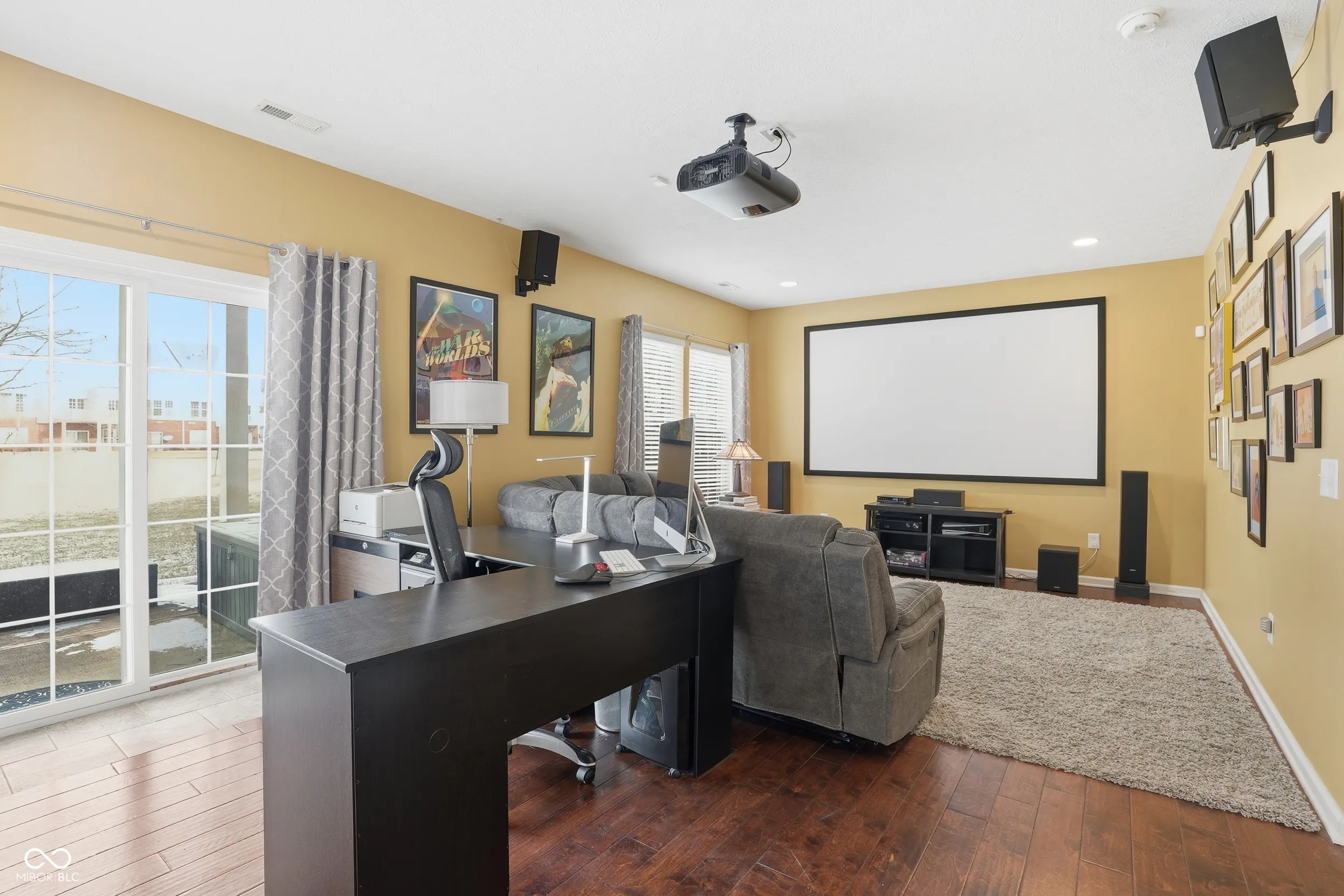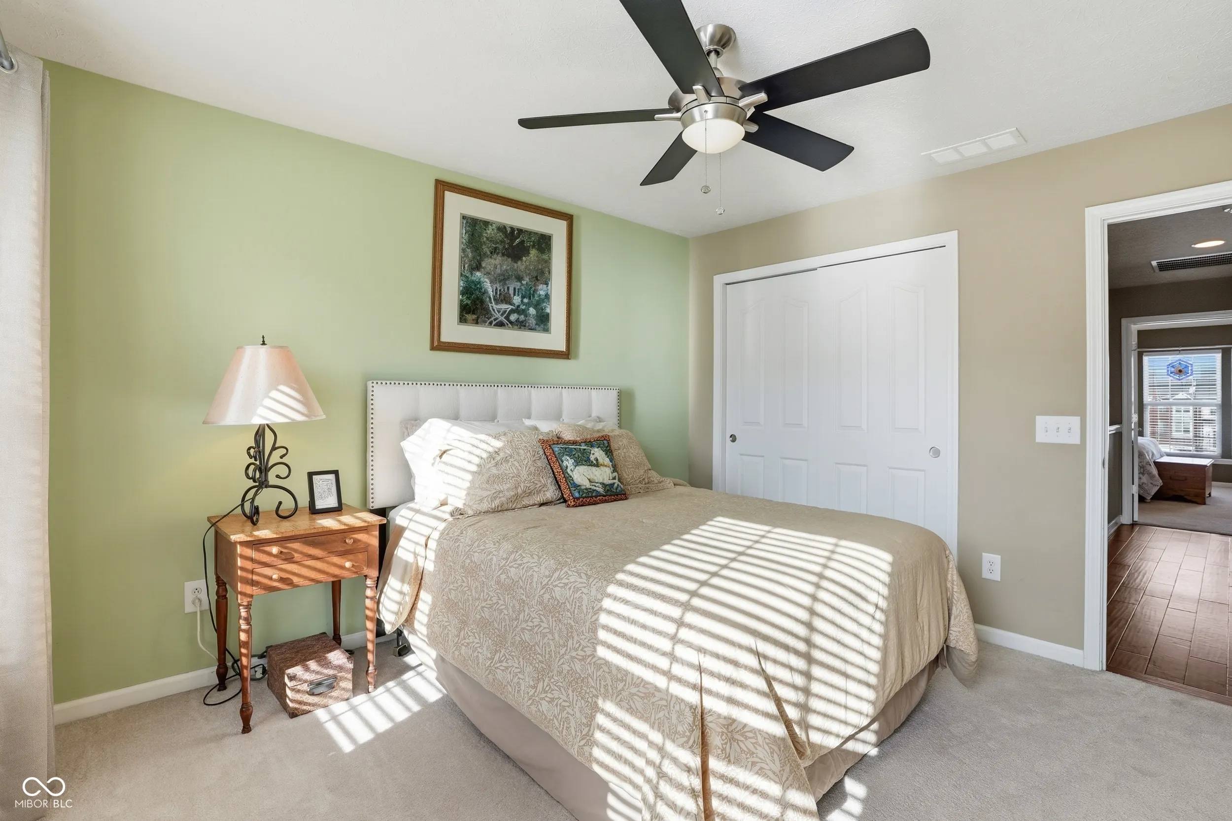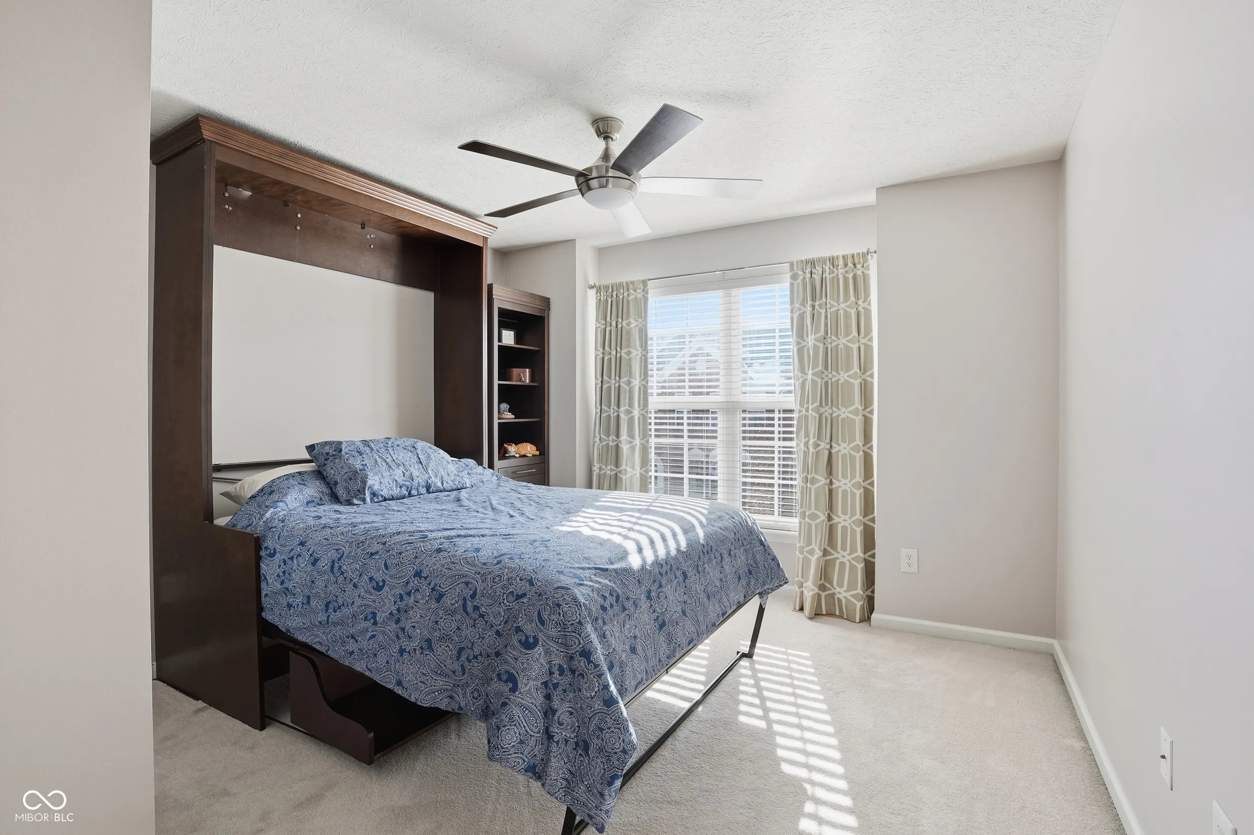Rarely available end-unit townhome in the highly sought-after Townhomes at Guilford in Carmel, offering serene pond views with a peaceful fountain enjoyed from your private balcony. This light-filled home features 9-foot ceilings, beautiful hardwood floors, and a cozy gas fireplace in the living room. The spacious kitchen is a dream for any cook, equipped with updated KitchenAid appliances, an induction stove and oven with air-fryer functionality, abundant counter space, and a large island that comfortably seats four. Recessed lighting is featured throughout the home. The primary suite offers a walk-in California Closet, a spa-like bath with a separate garden tub and shower, and a Corian double-sink vanity. Two additional bedrooms are located on the second floor, each with ample closet space. One bedroom includes a thoughtfully designed Murphy bed that easily converts to a desk and features built-in shelving-perfect for a home office or guest room. The finished basement boasts a large recreation room complete with a home theater system, 120″ screen, projector, and surround sound. Hardwood floors continue throughout the basement, which also includes a full bath, walk-out access to a concrete patio, and direct garage entry. A full two-car garage offers built-in storage shelving and access to two additional storage closets. This well-maintained home is filled with natural light and provides convenient access to everything Carmel has to offer.