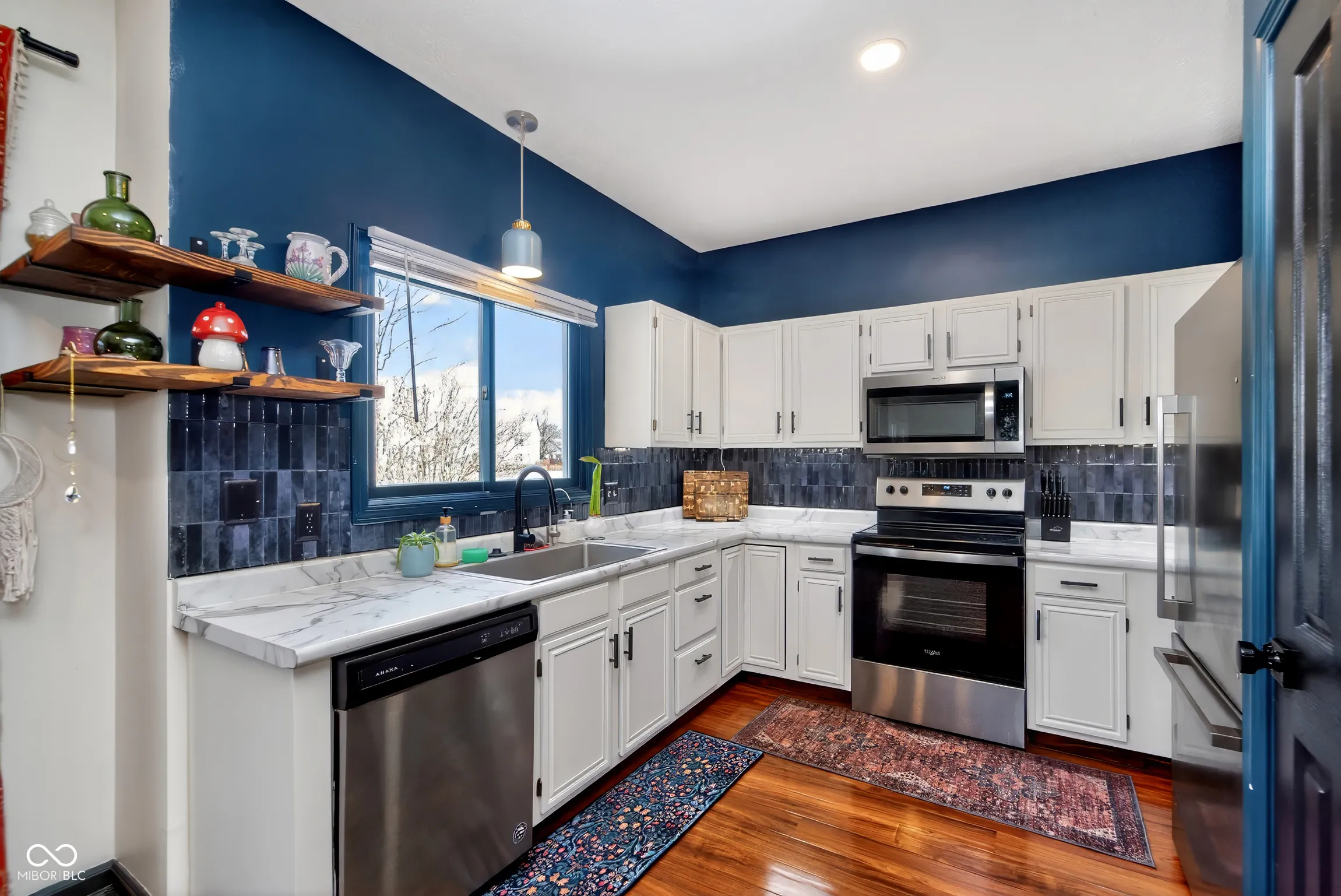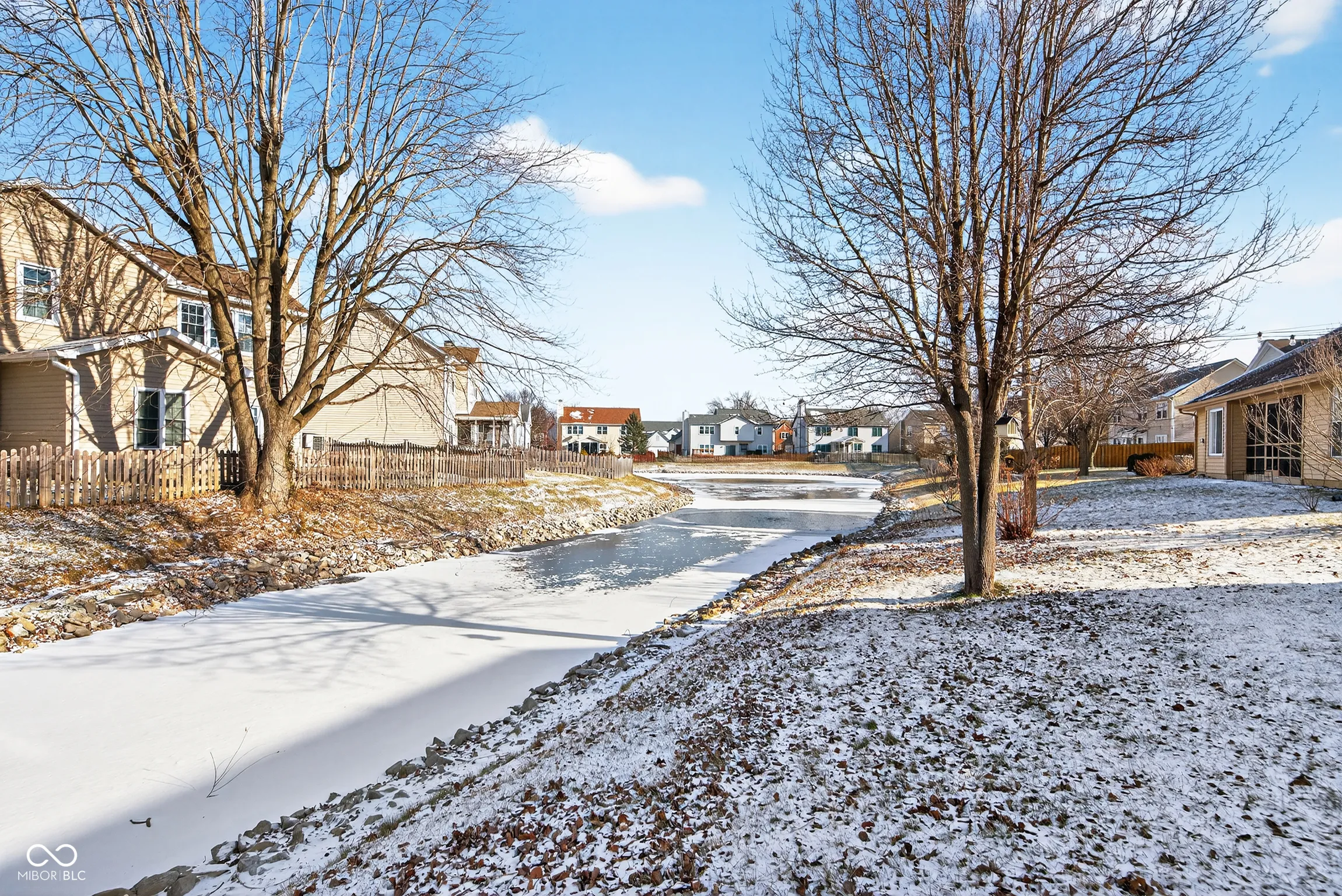 Welcome to this move-in ready 3-bedroom, 2.5-bath home located on the neighborhood pond. The main level features two distinct living areas, including a living room with vaulted ceilings and a family room with a fireplace. The primary suite offers a walk-in closet and an ensuite bath with double sinks, a separate shower, and a soaking tub. Additional features include a spacious laundry room and a screened-in porch overlooking the pond. The neighborhood playground is conveniently located directly across the street. The home has received several updates, including kitchen appliances, flooring, interior and exterior paint, and updated fixtures and hardware. In 2022, a 12′ x 11′ concrete patio, outdoor firepit, attic flooring, and a smart ceiling fan in the primary bedroom were added. Major improvements in 2024 include a new HVAC system ($10,000) and a large front window ($3,600). Conveniently located near shopping and dining along 96th Street, Fishers District, and Castleton, with easy access to I-69 and I-465.