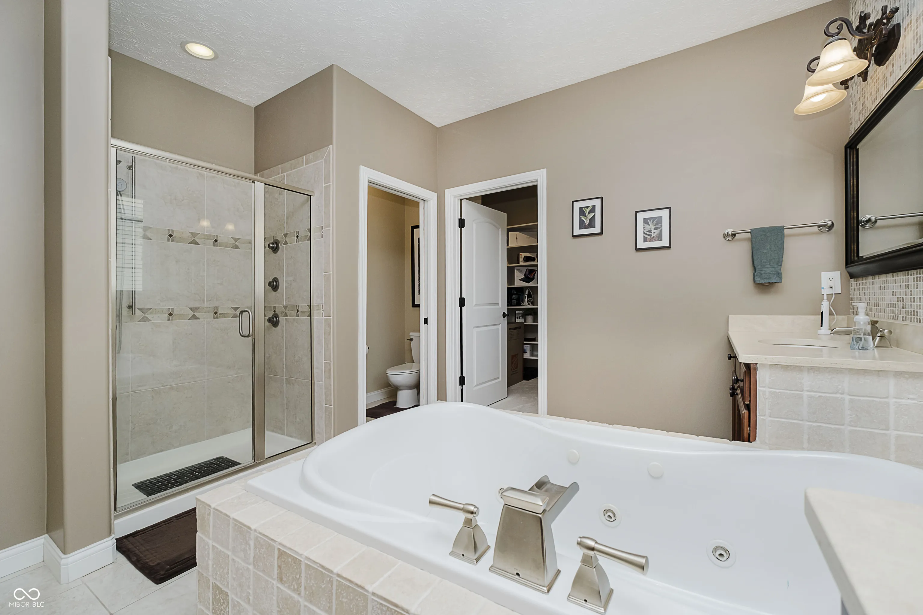 Welcome to your dream home in coveted Fox Hollow community! This beautiful 4-bedroom, 3 full bath, 2 half bath residence offers a perfect blend of elegance, comfort, and space for everyday living & entertaining. Be greeted by travertine and hardwood floors on the main level. The entry flows into a formal living room and dining rooms, perfect for gatherings. The heart of the home is the open-concept kitchen and family room-complete with granite countertops, stained cabinetry, counter space galore, pot filler at the gas range and stainless steel appliances. The main-level primary suite is a retreat, featuring a walk-in closet and a spa-inspired bath with double sinks, a jetted soaking tub, and a separate shower. Upstairs, a versatile loft area provides extra room for hobbies or play. Also upstairs are 3 more large bedrooms & 2 full baths, attic storage. The finished basement is designed for fun and entertainment. Host unforgettable movie nights in the theater room with included 3-tier seating, a 135″ screen & surround sound. Serve up drinks at the custom wet bar with sink & beverage cooler, or get some work done in the dedicated office space or host game night in the bonus area by the bar. Outside, the backyard and patio offer the ideal setting for summer barbecues with space to play. Finished sideload 3-car garage fits all the toys & more. New: roof 7/2025, water heaters 2026, carpet 2022, Culligan water softener.