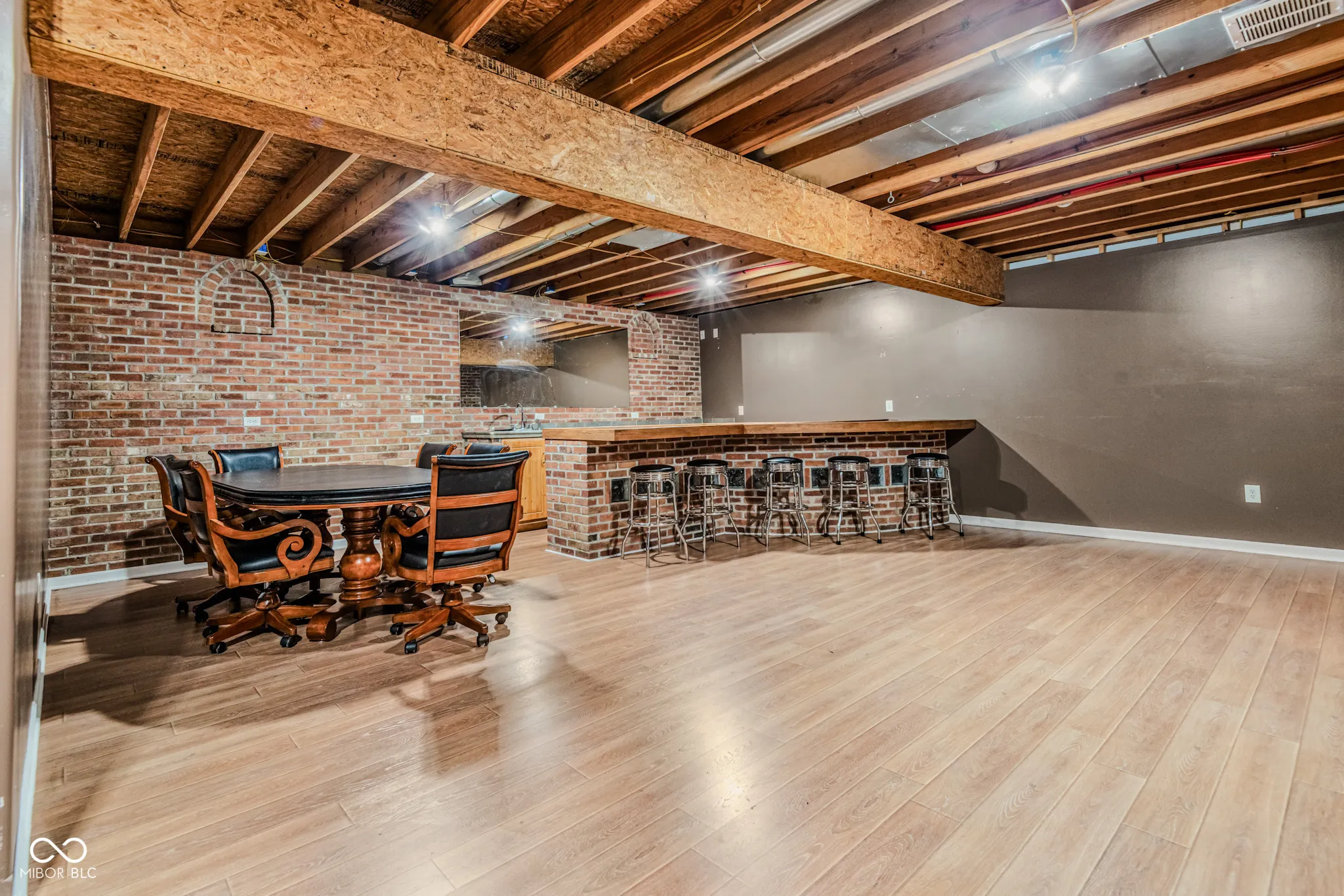 Beautiful all-brick ranch on 6.26 acres with a stocked pond and trails through roughly 3 acres of woods. Full, finished walkout lower level facing the water. This home went pending right away and is now back on the market not due to any fault of the home (the buyers were unable to close the sale). Take a close look, this well-maintained home built in 2009 has everything you need including an oversized 2-car attached garage (24×25) PLUS a 25×30 outbuilding with a concrete floor, electric, heat, plumbing, + overhead garage door. Looking for options for a mother-in-law residence, a home for a family member, or an investment property? The owners also own the house next door (6330 W SR 46) and would be willing to negotiate the sale of that home, which has been beautifully updated and is the only other property with water access (listing agent can provide photos). Many unique features make this custom-built, all-brick home special. The 14×35 mainfloor deck overlooks the 3/4 acre pond, large yard with a fire pit, and woods. The finished lower level has interior brick walls with brick archways separating the huge rec room with a wet bar and the family room, which opens out to a private 16×22 covered concrete patio facing the pond. Upstairs, a modern kitchen with granite counters, tile backsplash, bar seating, ss appliances, walk-in pantry, and a center island faces the living room and the floor-to-ceiling stone fireplace with a gas log insert. The home has 4 bedrooms, 2 full bathrooms, and a laundry room on the main floor plus a third full bathroom and potential 5th bedroom downstairs. This 3,830 sqft home is well-planned and energy efficient with spray foam insulation throughout. Considering options for the 3+ acres of woods behind the pond? The owners use a flat parking area on the west edge of the property for their boat, and from this area a drive could be added creating access past the pond to the woods. Possession is available at closing.
