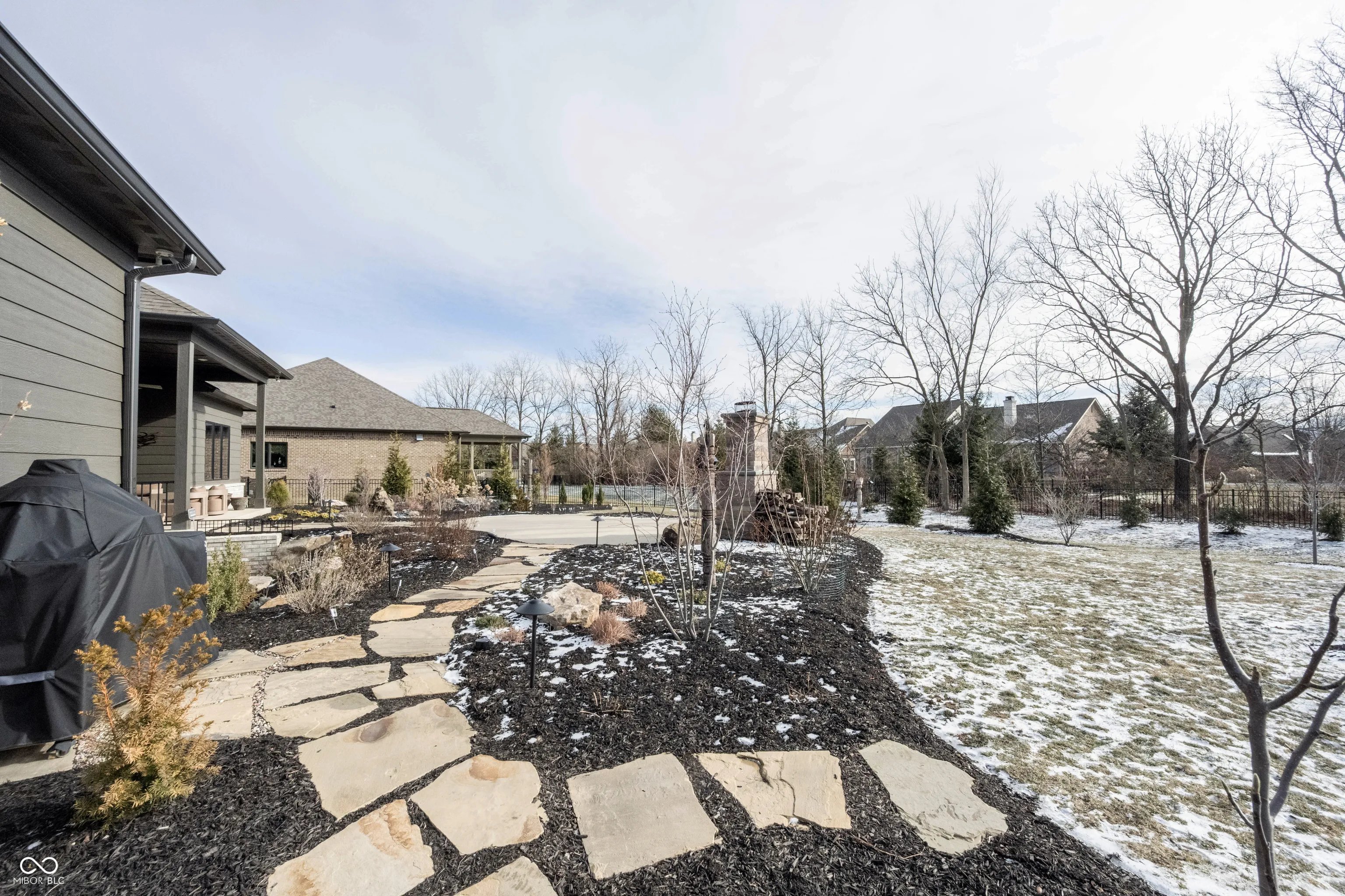 Completed in 2024, this custom-built home offers refined luxury, thoughtful design, & abundant natural light on a generous .65-acre lot. High-end finishes are featured throughout, including custom cabinetry, Thermador appliances, and a striking floor-to-ceiling stone fireplace with limestone surround, in an open floor plan designed for easy living & entertaining. Expansive south-facing windows fill the home with light year-round, creating a warm, inviting atmosphere & seamless indoor-outdoor connection. Automated custom shades provide comfort & privacy throughout. The well-designed main level includes an open floor plan with a chef’s kitchen, three bedrooms, including a beautifully appointed primary suite, and two-and-a-half baths. The lower level lives like a second home with an oversized living space, a kitchenette, a fourth bedroom, a bathroom plus two large semi-finished areas ideal for hobbies and storage. The custom 3 car garage features built-in cabinetry, finished floor & electric car plug in. Outdoor living shines with extensive landscaping, stone pathways, boulders, front & rear accent lighting, a water feature, massive planting beds for privacy, a covered porch, & a separate patio with fireplace. The yard is fenced for pets and security. A rare opportunity to own a newer custom home blending luxury, comfort, & year-round livability. Camden Walk provides gracious, low-maintenance living in a spacious setting. Large, open green spaces, lakes & private walking paths create a park like environment with a strong sense of community. Lawn care, landscape maintenance & snow removal services are provided for residences & common areas by the Camden Walk HOA! Convenient to shopping, dining, business & health care facilities on Indy’s Northside, Camden Walk also has easy access to major highways (I-465 and US 31).
