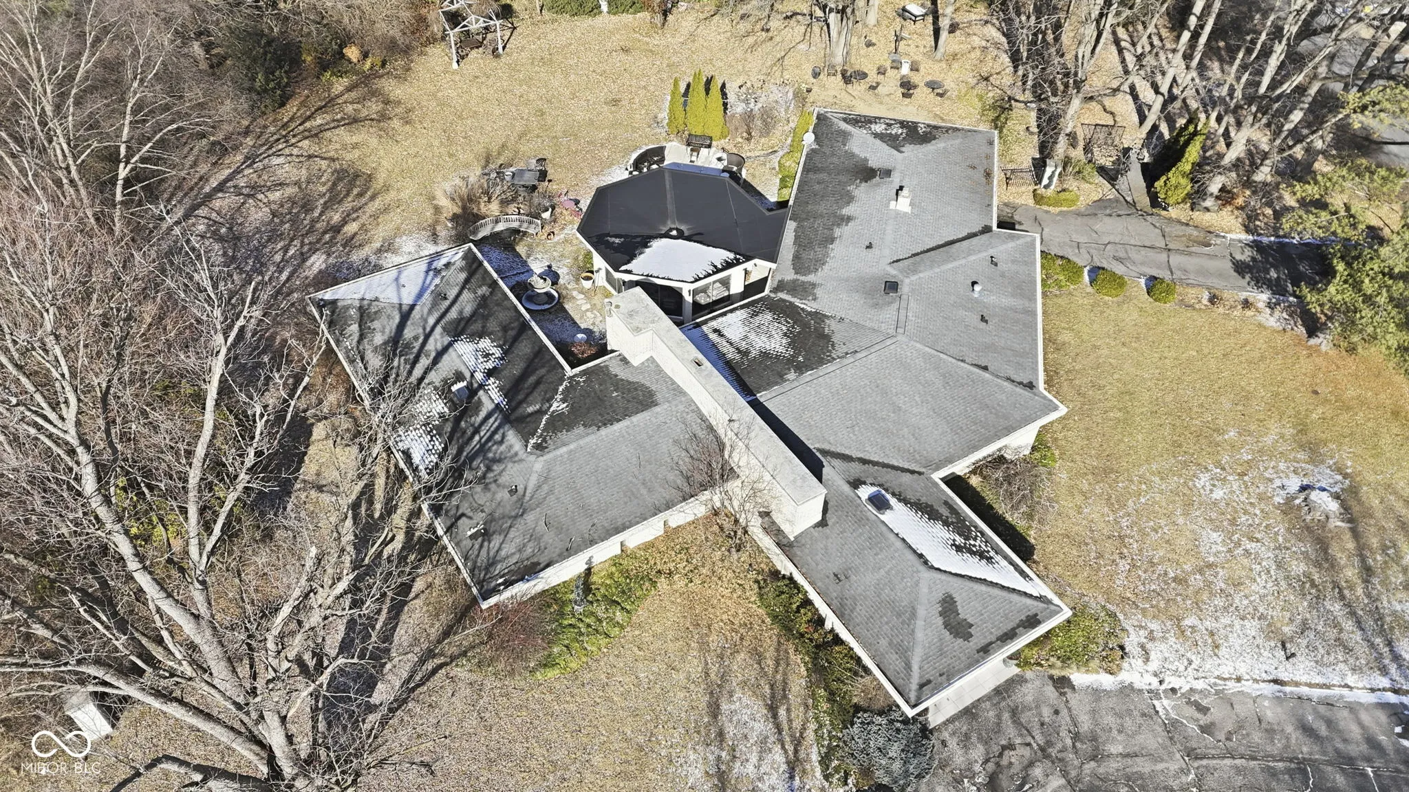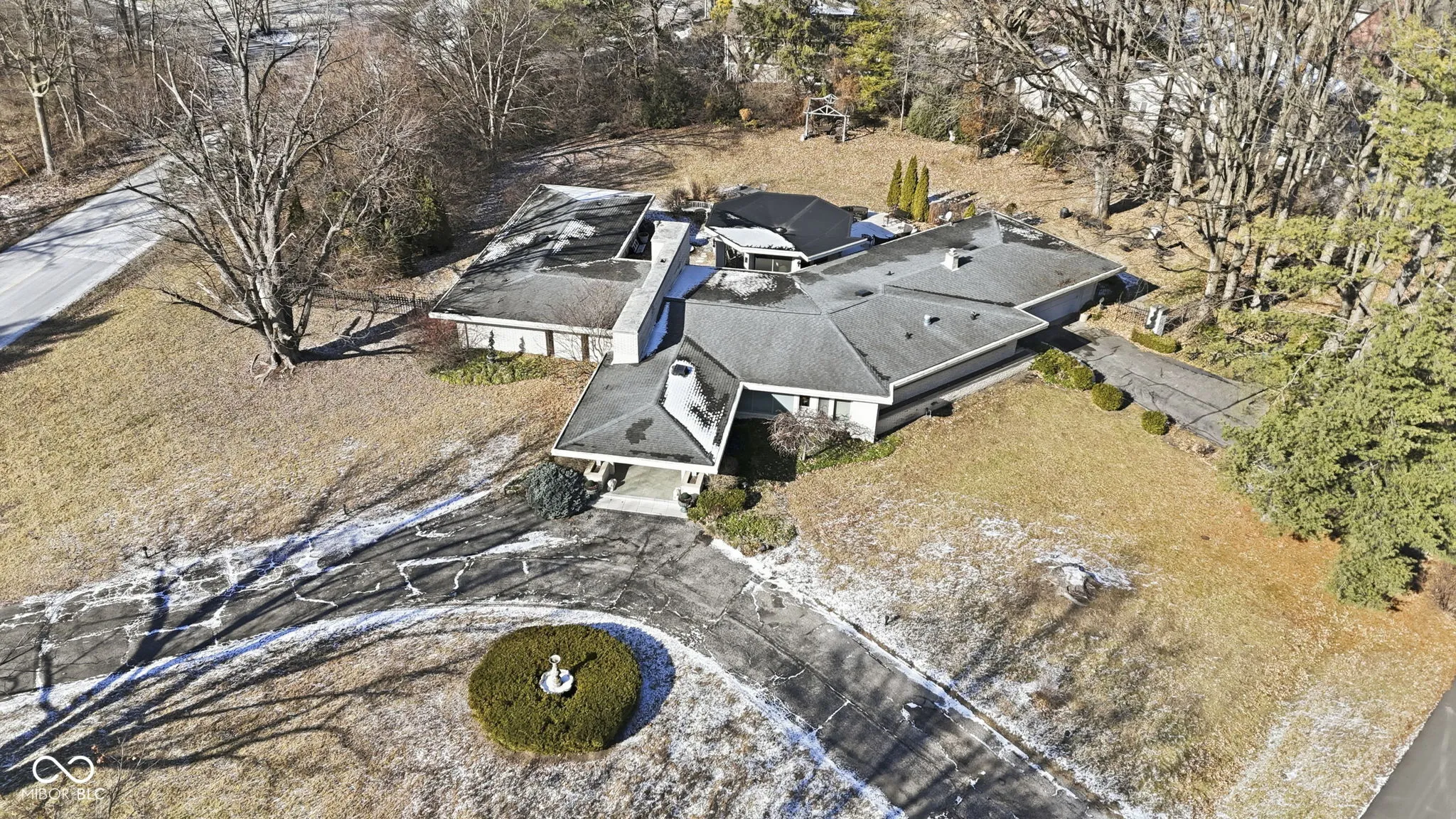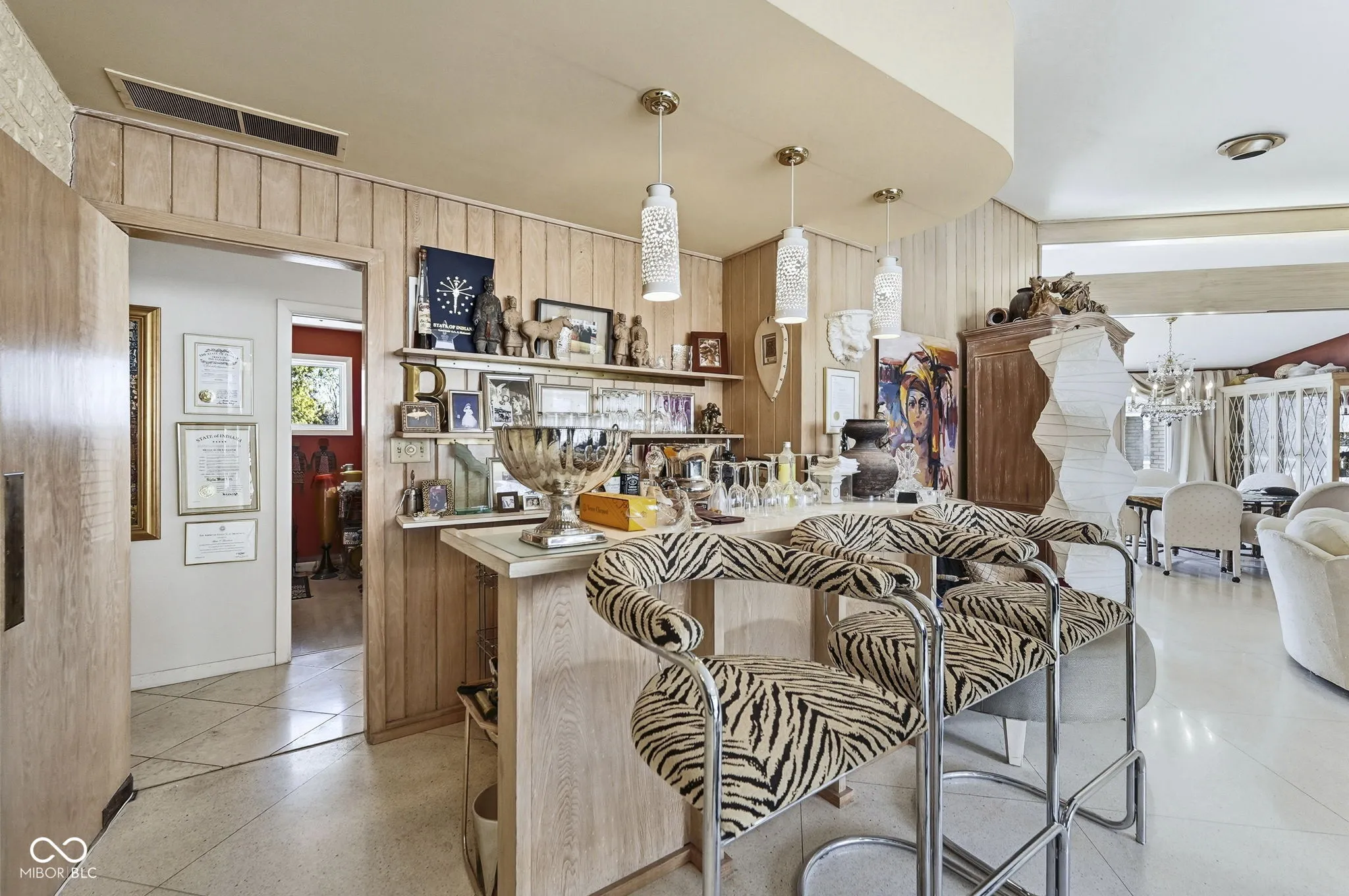 An exceptionally rare and architecturally significant mid-century modern residence, gracefully positioned on a premier 0.66-acre corner homesite in the heart of Meridian Hills along iconic North Illinois Street. Designed and built in 1966, this 3,111-square-foot, four-bedroom, three-bath home represents one of the few authentic courtyard-style mid-century estates in the Indianapolis market, where dramatic roof planes, clean horizontal lines, and expansive walls of glass frame a secluded interior courtyard and define a lifestyle of refined indoor-outdoor living seldom found in this setting. The interiors preserve the sophistication and integrity of the original design with warm wood cabinetry, curated architectural details, and a private bonus room ideal for an office or study featuring built-in bookcases and a tranquil retreat for work or reading. Multiple entertaining spaces and a distinctive bar create an elegant setting for gatherings, while mature trees and a serene setting provide exceptional privacy. Moments from Meridian Hills’ most coveted amenities, Broad Ripple, and downtown, this extraordinary offering presents a rare opportunity to acquire a truly collectible architectural residence in one of Indianapolis’ most prestigious and enduring neighborhoods.