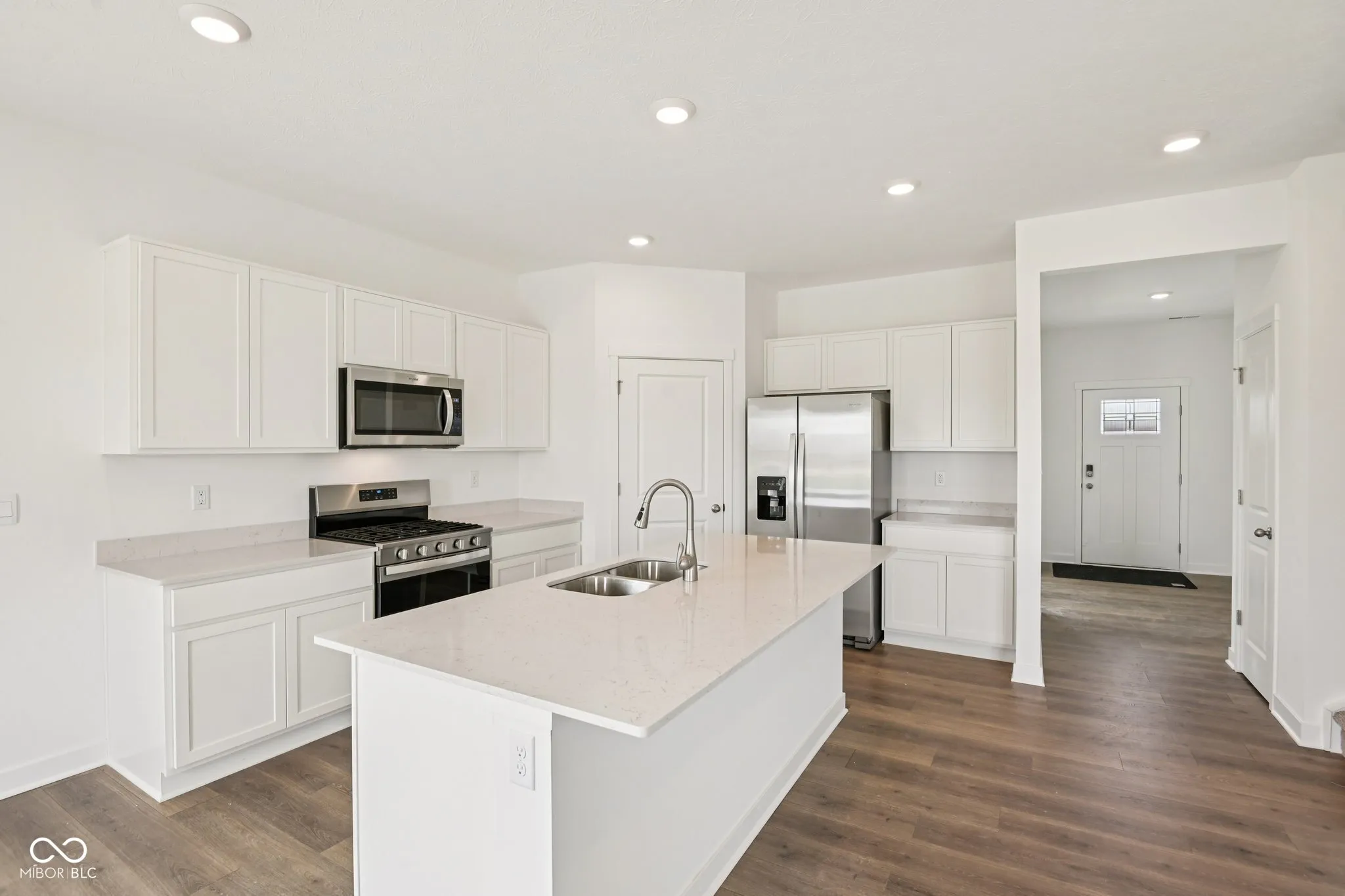 Welcome to the enchanting Henley at Baker’s Pointe, a captivating two-story sanctuary nestled in the heart of Pendleton. This magnificent home unfolds with five generously sized bedrooms and three full baths, including a convenient main-level suite perfect for guests or multigenerational living. As you step inside, you’re warmly welcomed by the family room, where a discreet staircase artfully blends convenience with privacy. The kitchen is a culinary artist’s dream, featuring exquisite white cabinetry, gleaming quartz countertops, and a spacious pantry. A built-in island serves not only as a functional workspace but also as a hub for lively gatherings. The main level is enriched by a versatile study, ideal for crafting your perfect home office or creative haven. Ascend to the upper level, where four additional bedrooms provide restful retreats, including one with a luxurious walk-in closet. A second living area awaits, ready to transform into an entertainment paradise or a serene escape. True to D.R. Horton’s reputation, the Henley embraces cutting-edge innovation with America’s Smart Home Technology. Experience modern convenience with a smart video doorbell, an advanced Honeywell thermostat, a secure smart door lock, and the ambient Deako light package, all meticulously designed to enhance your living experience. Photos are representative of plan and may vary as built.