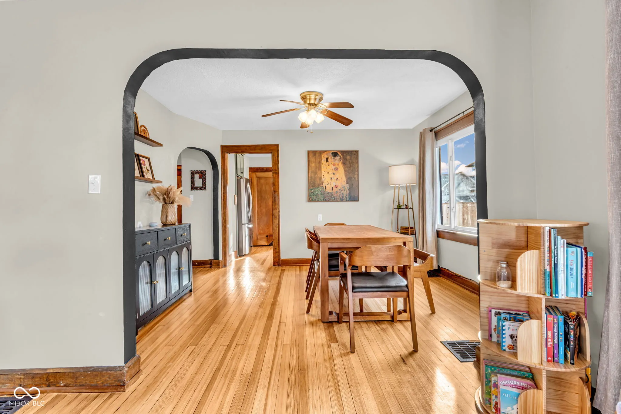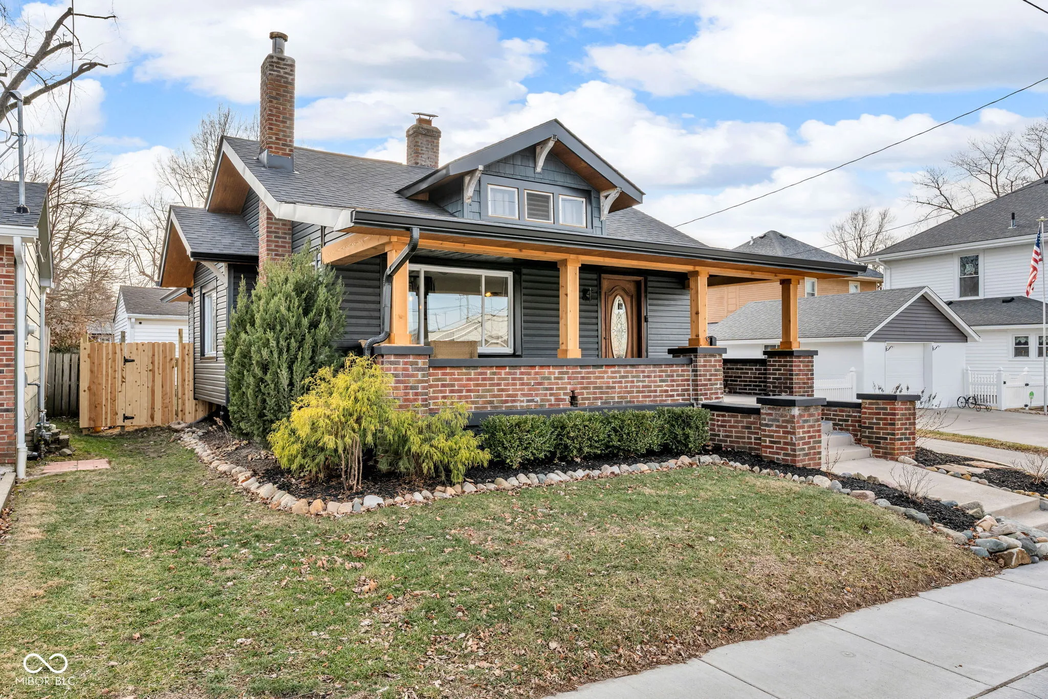 Charming Craftsman home filled with character, natural light, and modern updates. Enjoy relaxing on the giant covered front porch before stepping inside to find hardwood floors throughout the entire main level and a warm, inviting layout with nice-sized rooms. The family room features a cozy fireplace with built-ins, adding timeless Craftsman charm. The home offers 2 bedrooms and 1 full bath, plus a basement for additional storage or future potential. The kitchen has been completely updated with a NEW KITCHEN (all kitchen appliances staying with the home) with added butlers pantry and convenience bar. PLUS ALL NEW siding, NEW roof, NEW gutters, and a NEW fence for peace of mind. Outside, the nice-sized lot, extra-long driveway with tons of parking, sidewalks, and a 2-car detached garage provide both convenience and function. Located in sought-after Brownsburg Schools, this sun-filled home blends classic charm with extensive updates and is ready for its next owner.