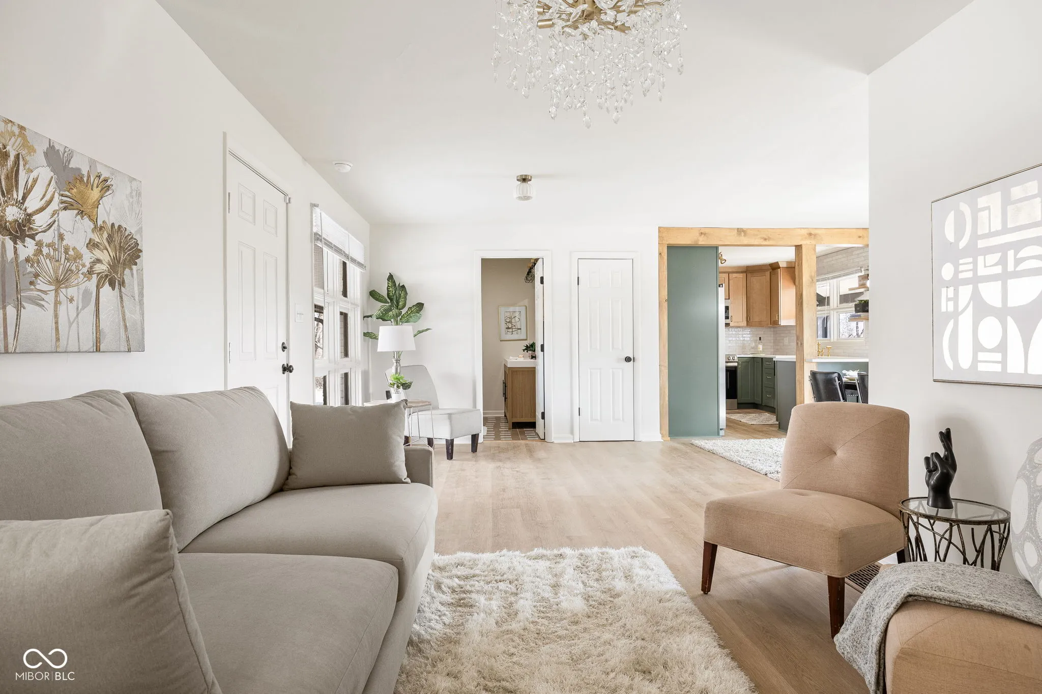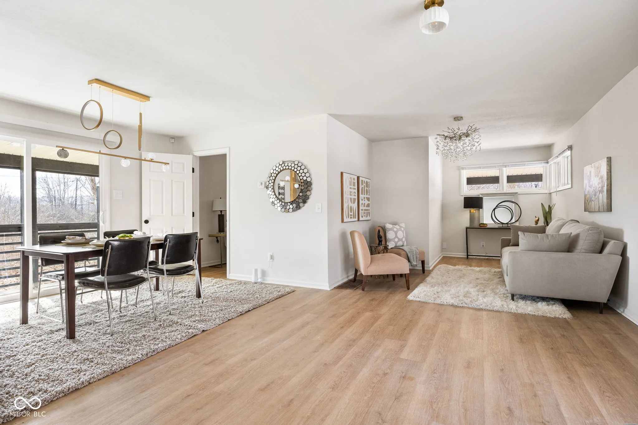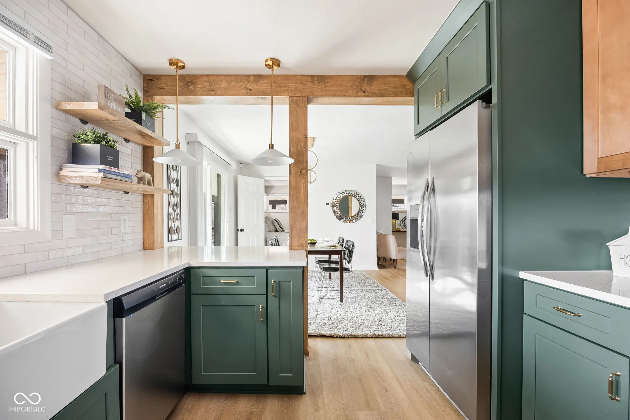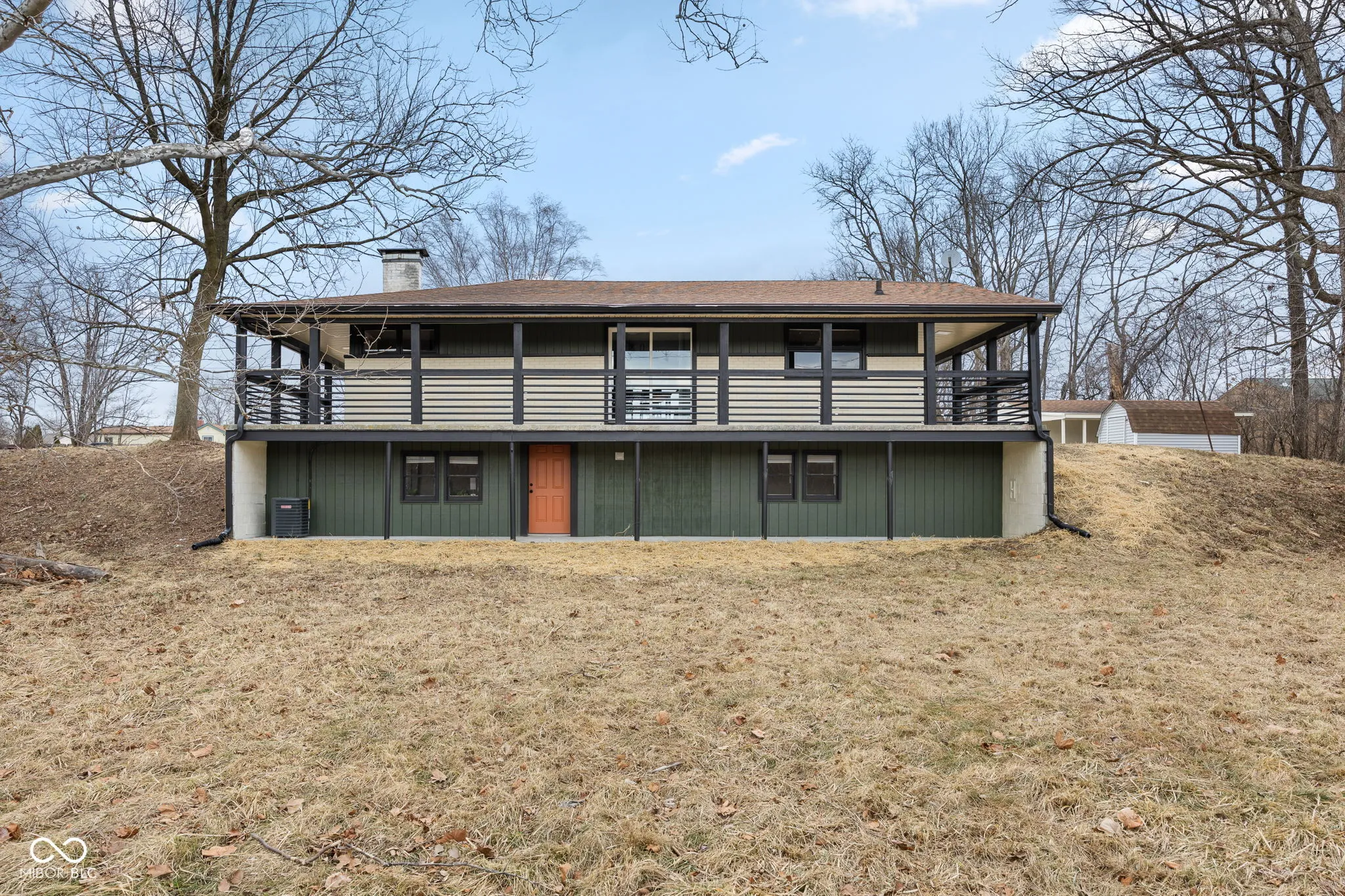 Tucked away at the end of a quiet gravel road, 5709 Churchman Avenue sits on a rare .6-acre lot and offers a unique blend of privacy, space, and mid-century modern character. Large windows, clean architectural lines, and warm finishes fill the home with natural light, while the thoughtfully updated kitchen features custom cabinetry, deep farm sink with custom fixtures, detailed tile work, and a sizable kitchen bar designed for serving and entertaining. Just off the dining room you can step outside to a fully wrapped around balcony and enjoy peaceful backyard views with frequent wildlife, creating a private, retreat-like setting in the city. The functional layout provides comfortable living spaces plus a fully finished lower level with a walkout basement for additional living space. The expansive yard offers plenty of room for gardening, pets, or future outdoor additions. Homes with this much land and character inside city limits rarely come available. Lovingly maintained with only two owners and a new HVAC system (2025). Convenient to Beech Grove schools, shopping, and quick access to downtown and major highways.