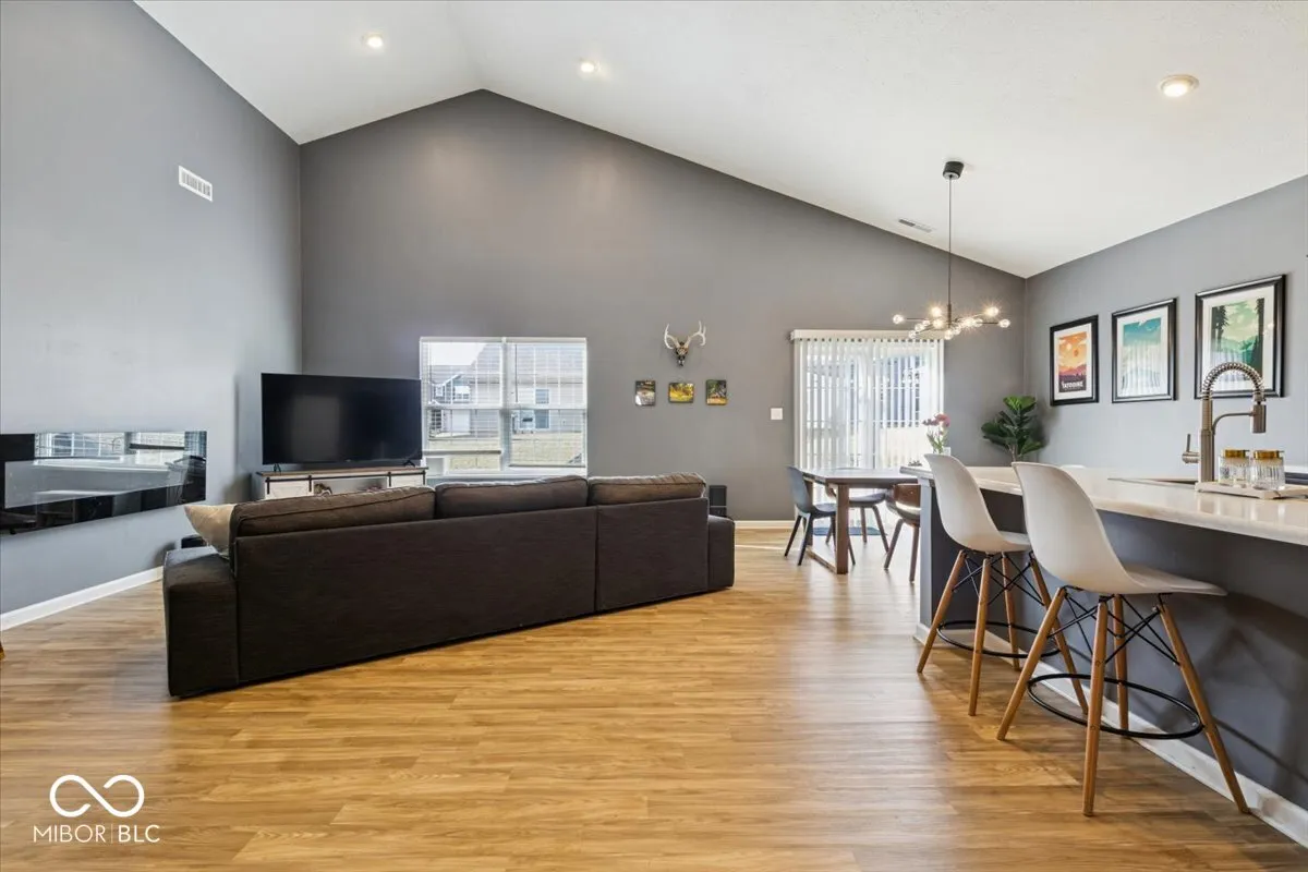 Welcome home to this beautifully maintained 3 bedroom, 2 bath ranch in Greenfield, built in 2019 and thoughtfully upgraded throughout. This newer construction home offers an inviting open concept layout where the living room, kitchen, and dining area flow seamlessly, highlighted by vaulted ceilings and a cozy electric fireplace. The kitchen features an upgraded sink, new dishwasher, and ample workspace, ideal for everyday living and entertaining. Stylish LVP flooring, installed in 2024, adds durability and modern appeal throughout the main living areas. Blinds and curtains on all windows enhance the move-in-ready feel. The spacious primary suite includes a private bath and large walk-in closet. Two additional bedrooms offer flexibility, with one currently used as a home office featuring a built-in Murphy bed that will remain with the home, providing the perfect guest space or work-from-home solution. A custom finished closet in the baby room adds smart storage. Step outside to enjoy the deck with new mounted pergola, perfect for outdoor dining, relaxing, or hosting friends. With thoughtful updates, modern finishes, and a desirable ranch floor plan, this home offers comfort, style, and functionality. Conveniently located near shopping, dining, and commuter routes, this Greenfield home is ready for you to take a look!