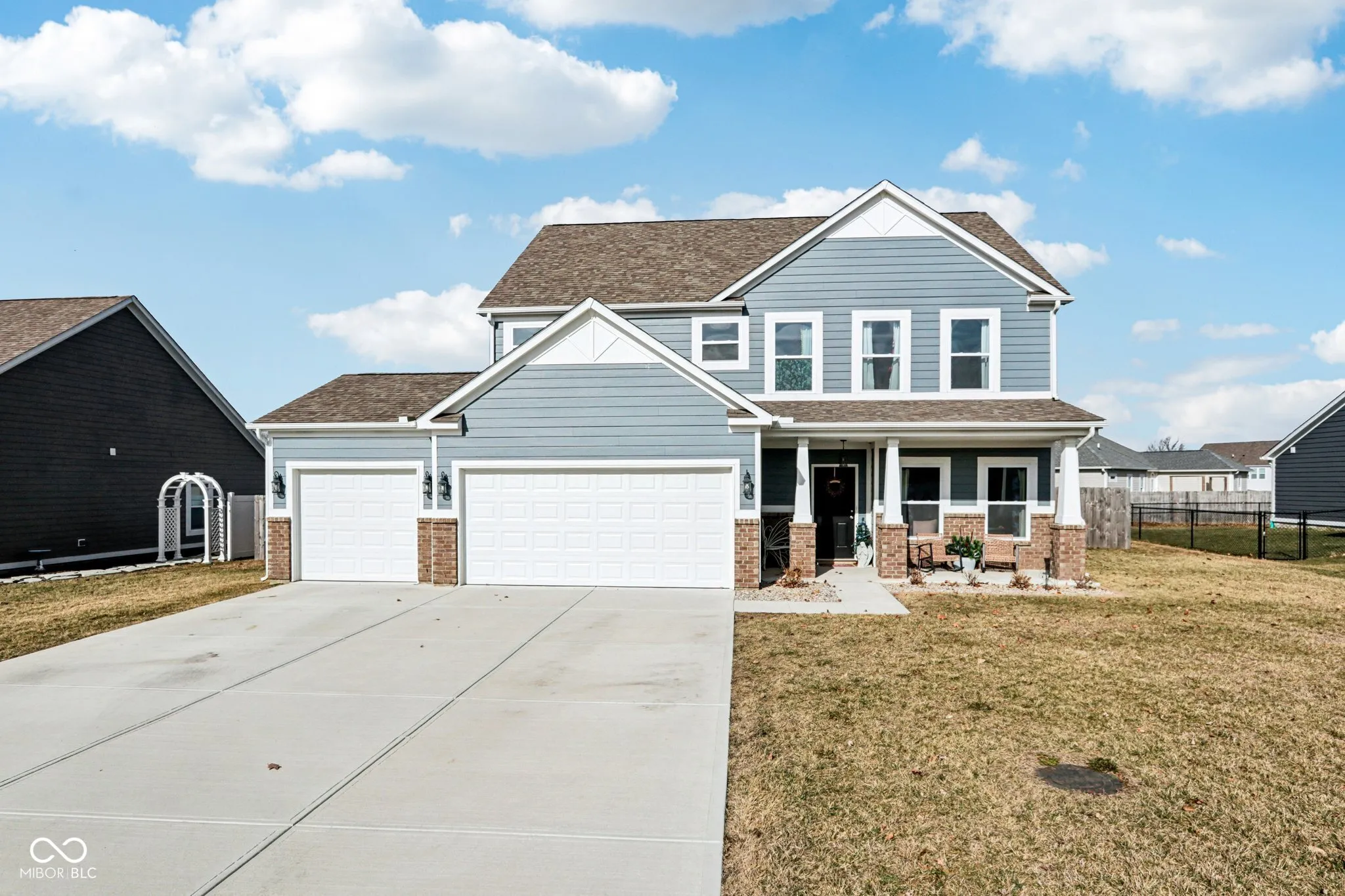 Discover the exceptional charm of 35 Manchester DR, TRAFALGAR, IN, a single-family residence nestled in the heart of Johnson County, presented in great condition. Imagine mornings spent on the porch, enjoying the peace of the neighborhood before starting your day. The open floor plan encourages a natural gathering space, perfect for entertaining or simply enjoying time together. The kitchen stands as a testament to both style and functionality, anchored by a large kitchen island that invites culinary exploration, complemented by the elegance of stone countertops and the timeless appeal of shaker cabinets, as well as a convenient kitchen bar for casual dining or conversation. Retreat to the sanctuary of the bedroom, where an ensuite bathroom offers a private oasis with a double vanity and a walk-in shower, promising a spa-like experience every day. The presence of a walk-in closet ensures ample storage space, contributing to an organized and clutter-free living environment. Step outside to discover a private outdoor haven, with a deck perfect for al fresco dining or simply relaxing under the stars, all within the secure embrace of a fenced backyard, creating a safe and enjoyable space. The inclusion of a laundry room elevates the convenience of daily chores. This 2-story residence, built in 2023, a generous 10197 square foot lot, featuring 4 bedrooms and 3 full bathrooms. This attractive property is more than just a house; it’s an invitation to embrace a lifestyle of comfort and effortless enjoyment.