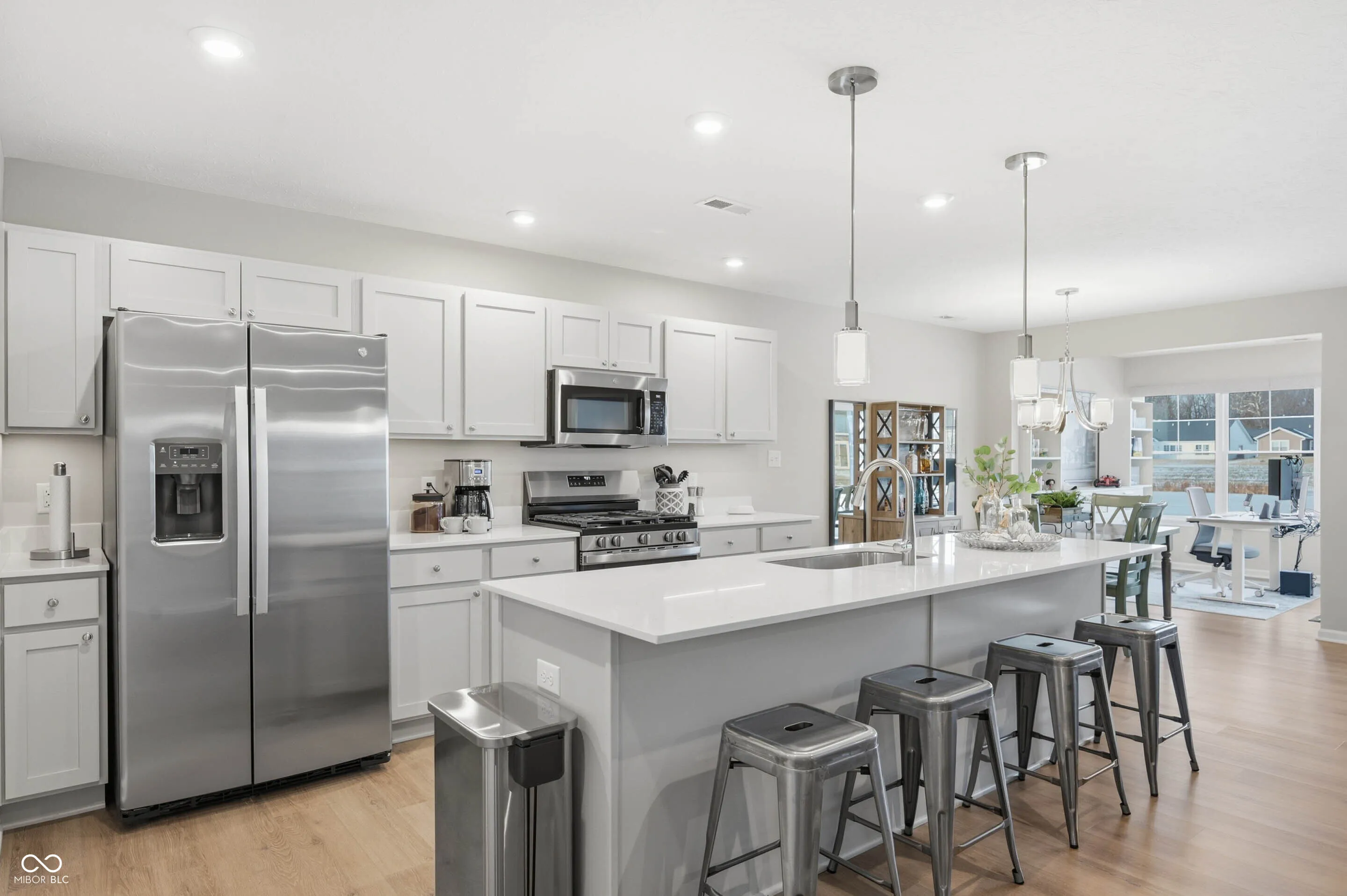Get ready for Effortless Living at this Paired Villa with Pond Views! Offering the perfect blend of style and convenience, this open-concept, single-level villa, built in 2024 with 3 Bedrooms and 2 Fullbaths is ready for a quick close! It gets better, all of the post-close projects, totaling $12,000 are done: Blinds installed (motorized in main living area), installed a water softener, cabinets in the laundry room, soft close cabinet doors, under cabinet lighting, and washer & dryer stay. Added bonus: most of the furnishings are available! This ranch home, boasts a bright, versatile sunroom (currently used as a home office) with serene pond views and dedicated greenspace. Embrace true low-maintenance living: the HOA handles lawncare, fertilization, yearly mulching, water for irrigation and snow removal over 2 inches. Step outside your door to immediate access to a 4-mile walking trail with fitness stations. The vibrant community also features a picnic shelter, playground, and an outdoor kitchen area with a firepit perfect for entertaining. Complete with transferable builder warranties (4-year roof, 10-year structural), this move-in-ready home lets you stop worrying about yard work and start enjoying life and nearby shopping and dining with easy access to Hwy 31 and all the Westfield and Carmel have to offer.