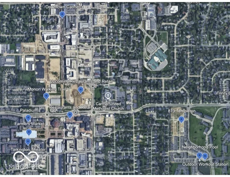 Just like new!! Beautiful David Weekly Startex Model with inviting front porch in Gramercy West. Walkable to Downtown Carmel, enjoy lots of restaurants and retail shops, Farmers Market, Paladium, The Monon Trail, Theater. Take advantage of all the upgrades seller put into this home. Chef’s Kitchen with upgraded cabinets with soft close and spacious walk in pantry. Extra Wide 32″ doors throughout, Upgraded bathrooms with 42″ cabinets, Upgraded wood staircase and banisters. Blinds throughout home. Primary suite with tray ceiling, bath with dual sinks, walk in shower with tiled flooring, California Closet symmetrical for his and hers including tie and belt rack, jewelry area, mirror. Beds 2 and 3 both also offer California Closet systems. Laundry Room up for convenience offering cabinetry, folding table and drying rack. All bedrooms with ceiling fans. Scratch Resistant Paint. Side patio fenced in, sellers added 68 sq feet to the side patio. Front yard with wrought iron fence with gate. All new landscaping. Hanging Storage racks in Garage Stay. Even though home is basically brand new sellers did a pre-inspection to ensure that home is ready to sell. No surprises during inspection period. Inspection report available upon request. Neighborhood offers a pool, lots of walking paths and large green spaces, pond, outdoor fitness area.