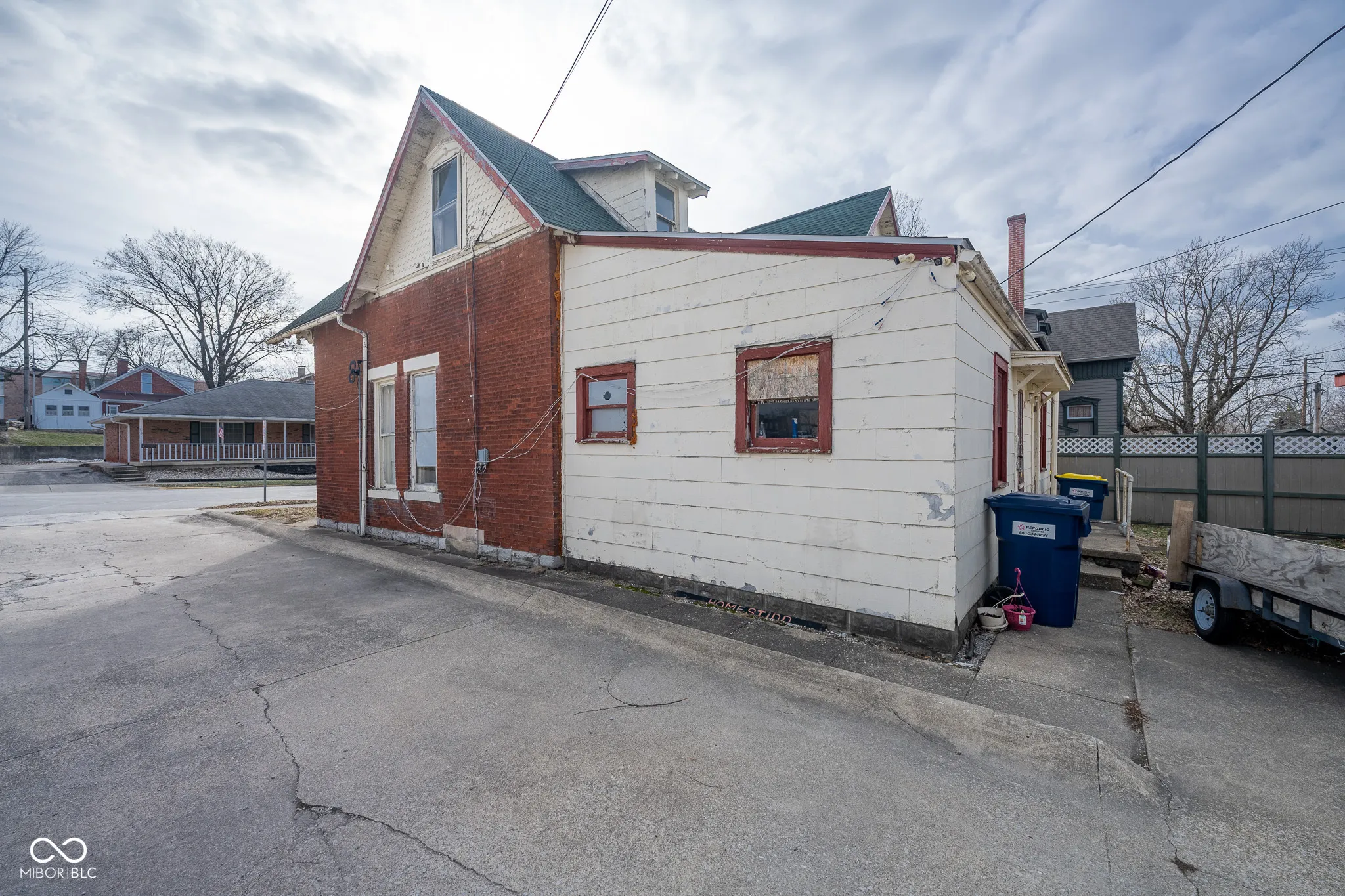 Own a piece of Greencastle history with lots of road visibility on W. Walnut St. just steps from downtown restaurants, shops and DePauw University’s campus. The brick house, which was once three apartments needs renovation, but could be retail shops or offices with an apartment upstairs. The brick blacksmith’s shop behind the house has a loading dock, large doors, a lean-to for additional storage, two-story loft, and steel reinforcements, which make this a great storage building for your hobbies or rental income. The price reflects the condition and need for significant renovations, but could be a tremendous opportunity to have an affordable commercial building in a growing college town.