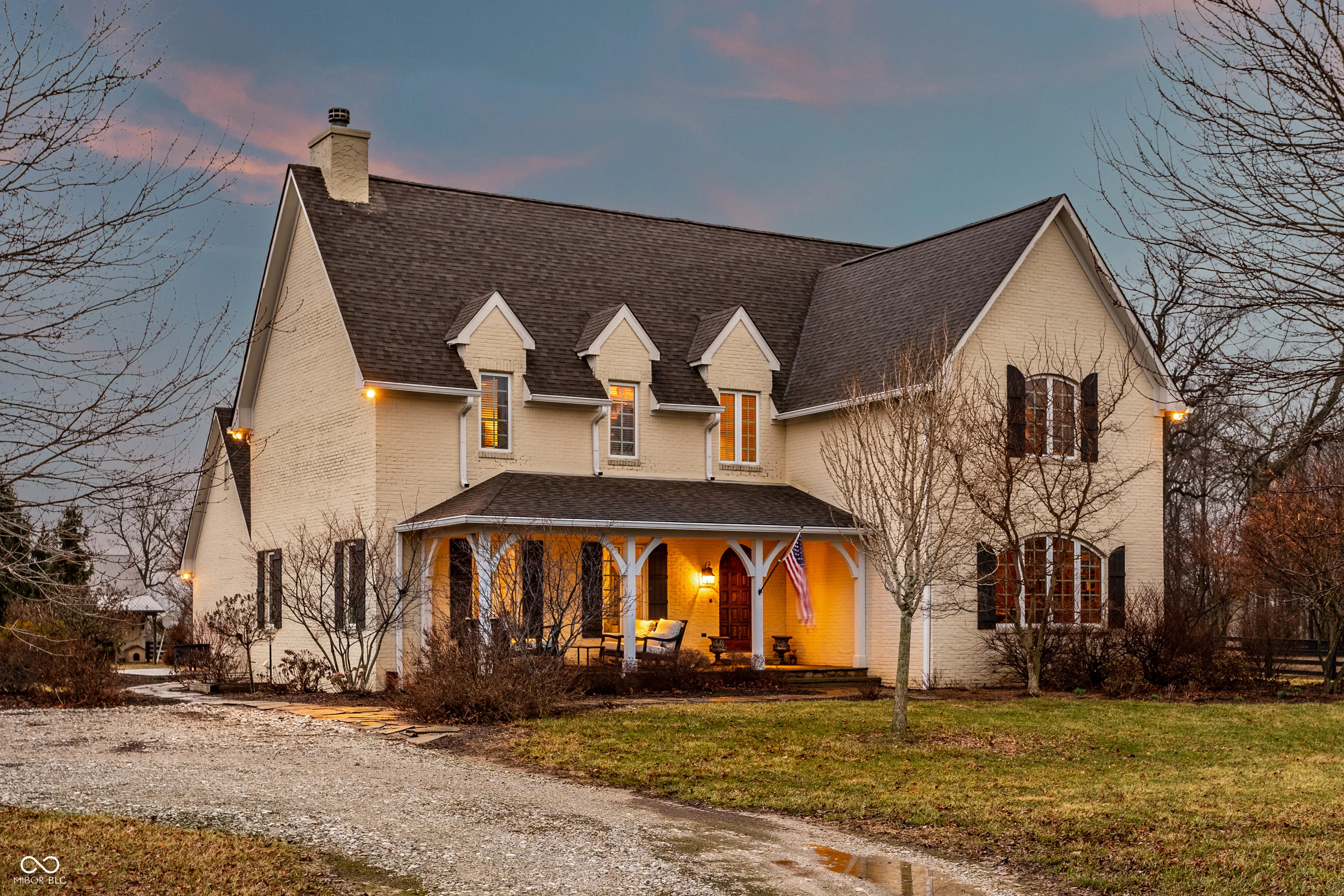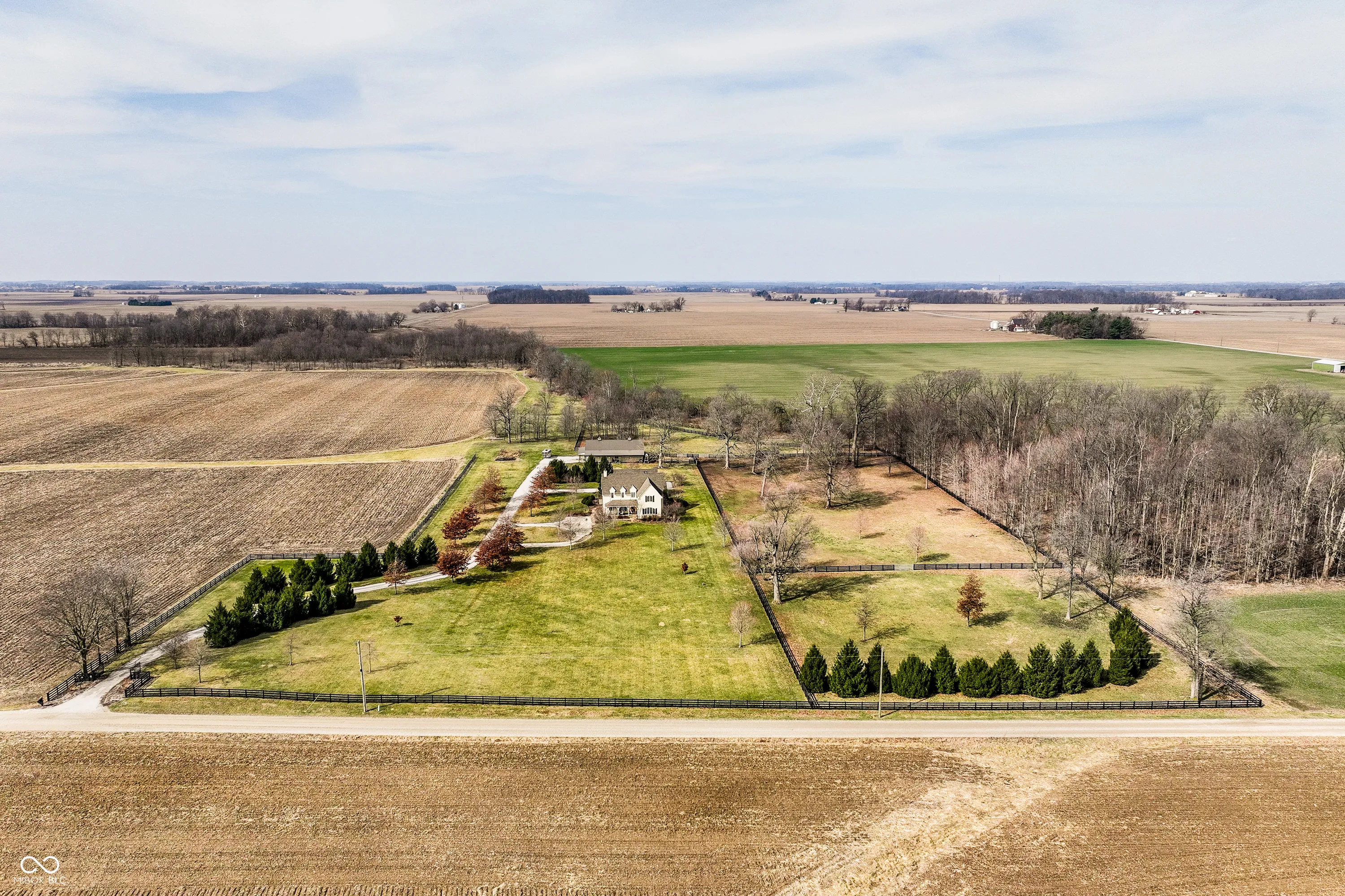 Gated, 28+ pristine acres, offers luxury living, privacy, and a true equestrian estate. Over 6,300 square feet of finished living space is perfectly designed for everyday comfort and grand-scale entertaining. This home offers 4 bedrooms, 6 baths, 3 fireplaces, a finished basement, and a flexible floor plan. Hearth Room with updated Stone fireplace w/gas starter, new wood ceiling; open to Kitchen with new island, and so many other updates. Custom home details include high ceilings, window seat nooks, a paneled den, hardwoods throughout, built-in cabinetry, custom trim, and abundant natural light. Outdoor living features a covered front porch, patio, and screened-in back porch which is perfect for relaxing or entertaining. Barn (40×64) provides wonderful equipment space, tack room, exercise room/office, half bath, two 12×12 horse stalls with an open bay for a third stall, plus a run-in shed offering additional shelter and pasture flexibility. The property provides outstanding accommodations for equestrian use, hobby farming, or the creation of a private retreat. It offers ample space for barns, arenas, paddocks, and pasture rotation, with the flexibility to design equestrian facilities separate from the home while maintaining privacy and convenience. Whether envisioned as a private horse estate, luxury country retreat, or legacy property, this offering is increasingly rare in today’s market. Peacefully located yet within convenient reach of Lebanon, Zionsville, and the I-65 corridor, the estate delivers the best of rural tranquility with access to Central Indiana amenities. An extraordinary opportunity to own a true estate setting with space, privacy, and future flexibility.