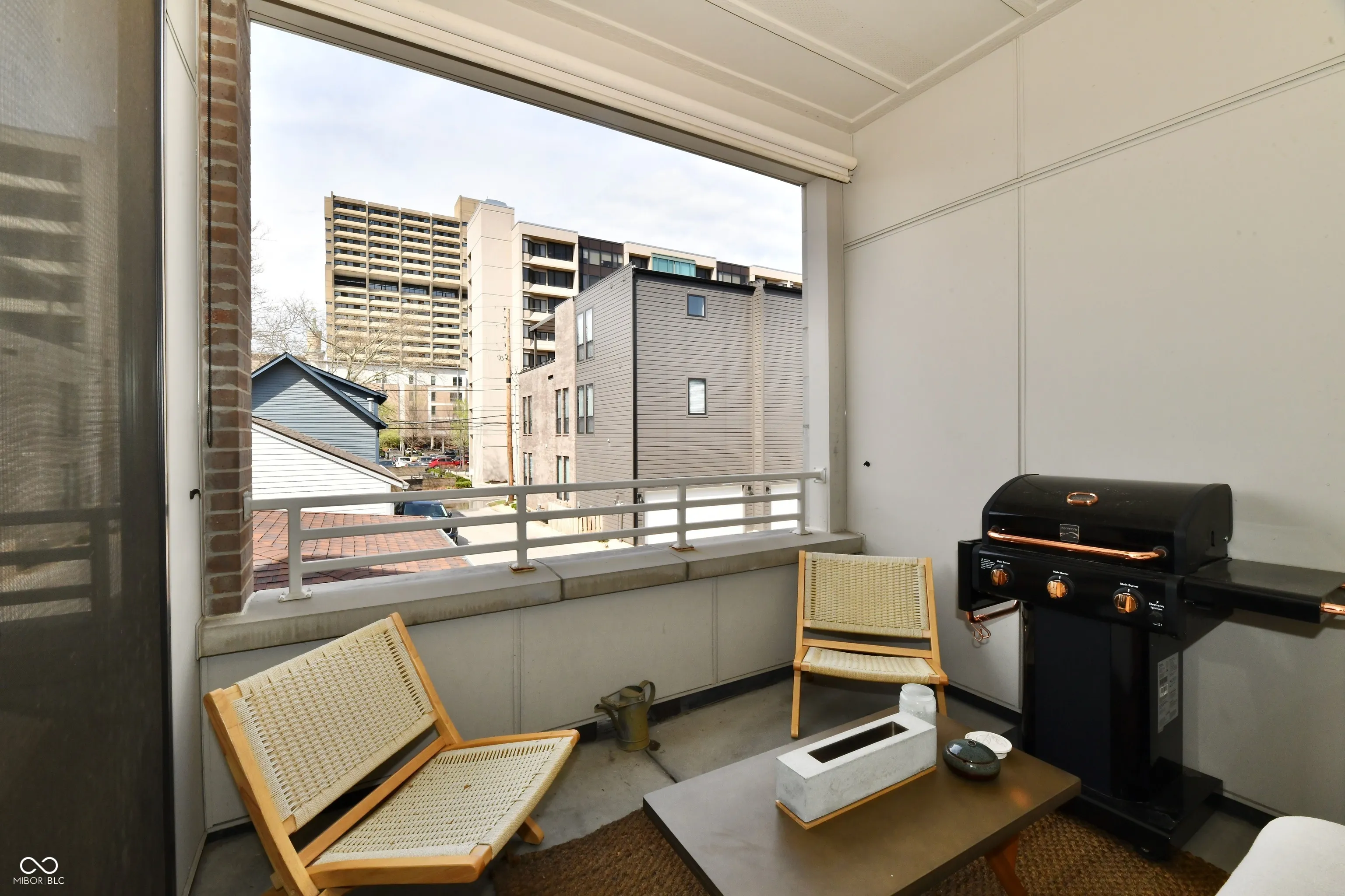 Location, Location, Location! Two parking spaces so you never have to park on the street again! Don’t miss this gorgeous, classic 2 bedroom 2 bath condo on Park Ave. Windows galore, two balconies, gas fireplace, waterfall island with seating for 6. High-end, white, Kitchen Aid appliances, new tile backsplash and counters. Custom, reclaimed-wood shutters offer privacy in living space. Primary bedroom has its own balcony, large walk-in with 3 levels of closet design to maximize storage. Primary bath offers dual sink vanity and huge tile shower. Guest bedroom with large walk-in closet. Laundry is located across from master and has sink and storage cabinet. Lower HOA fees. Walk to Mass Ave, Lockerbie and Bottleworks. Sidewalks, streetlights, secure building and parking – make this one not to miss!